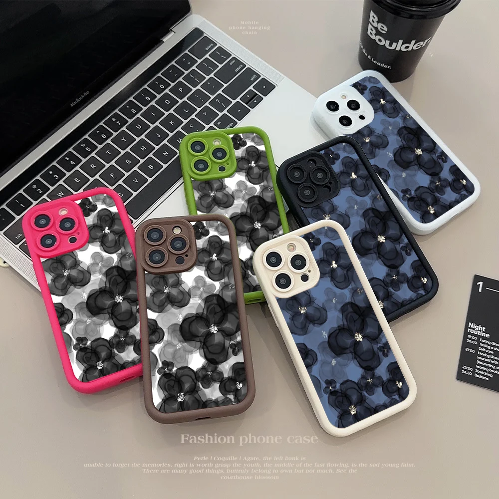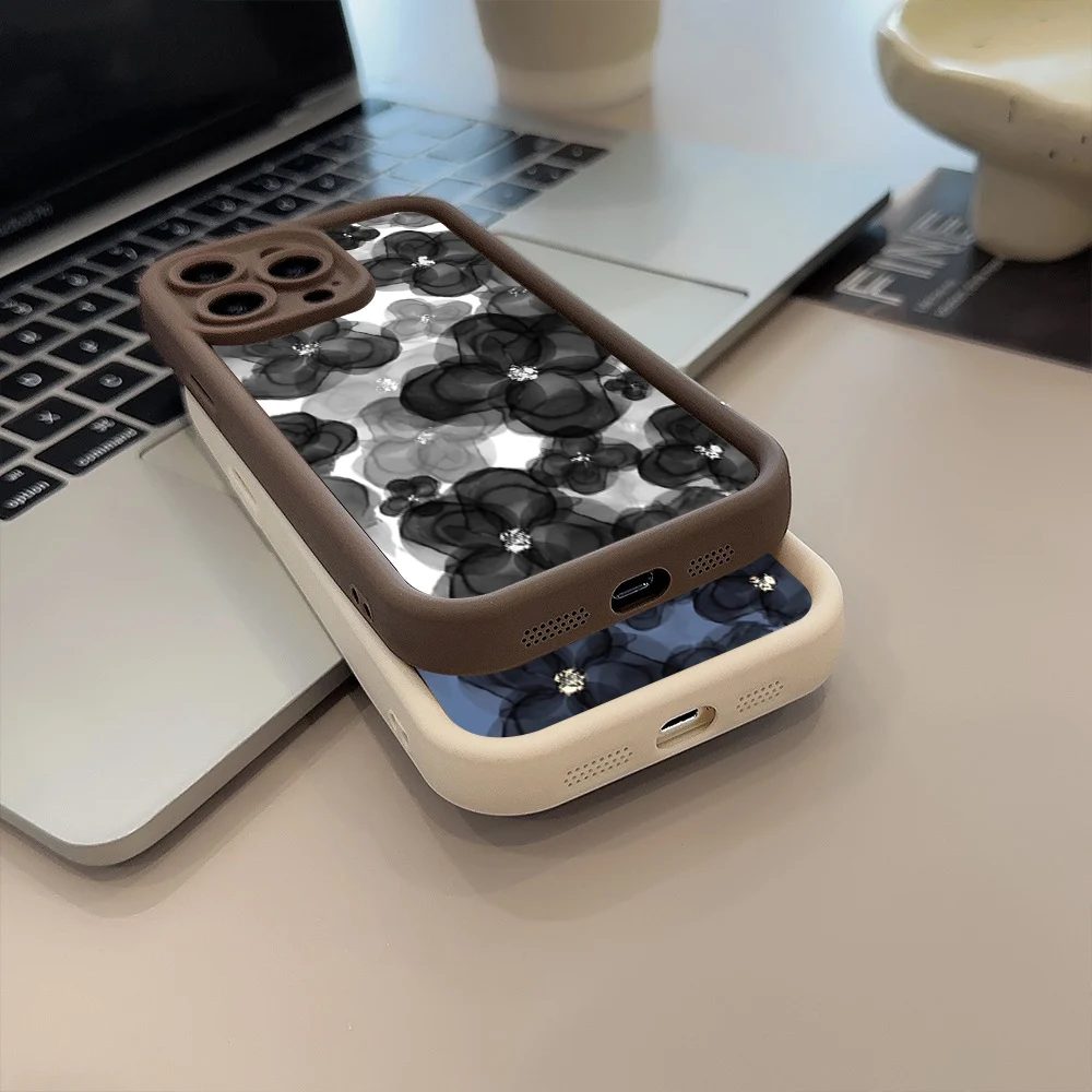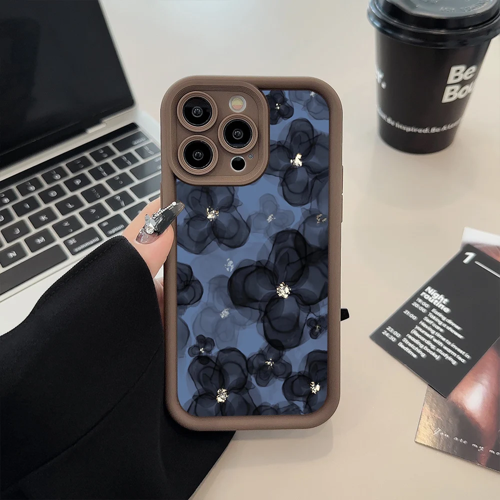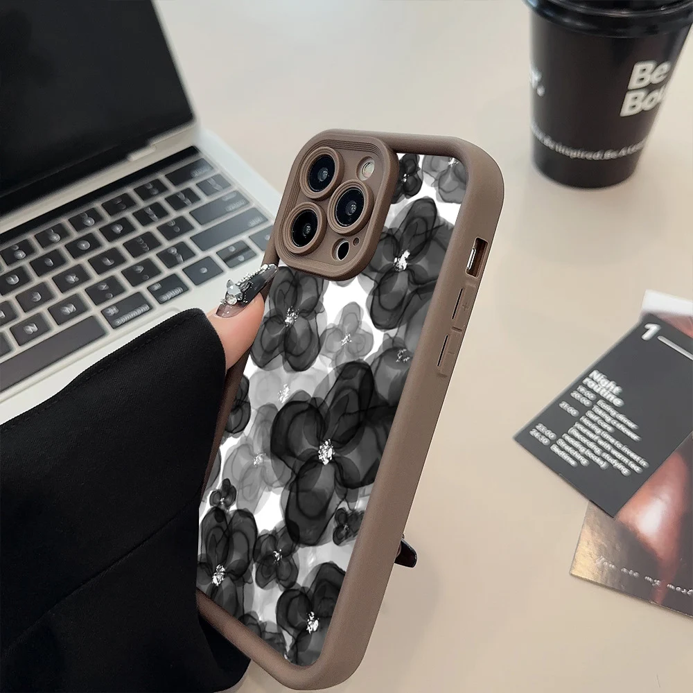 Comprar Funda para iPhone 16 15 14 13 12 11 Pro Max, funda de teléfono con diseño Floral negro para iPhone X XS XR 7 8 Plus SE 2022, fundas suaves de silicona