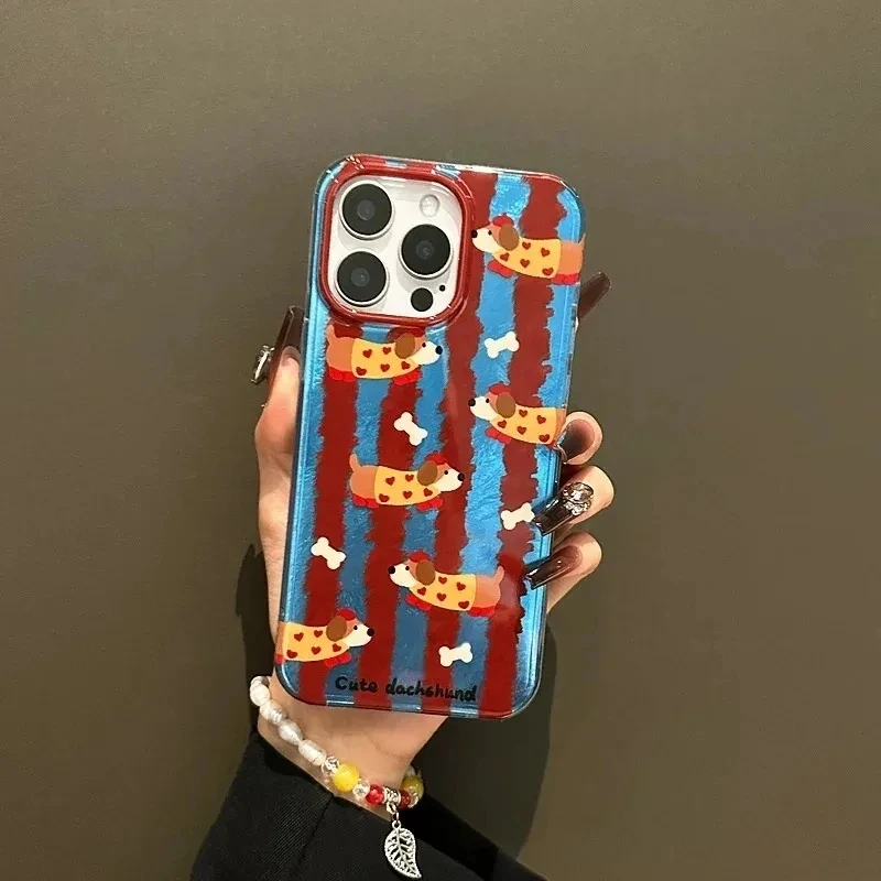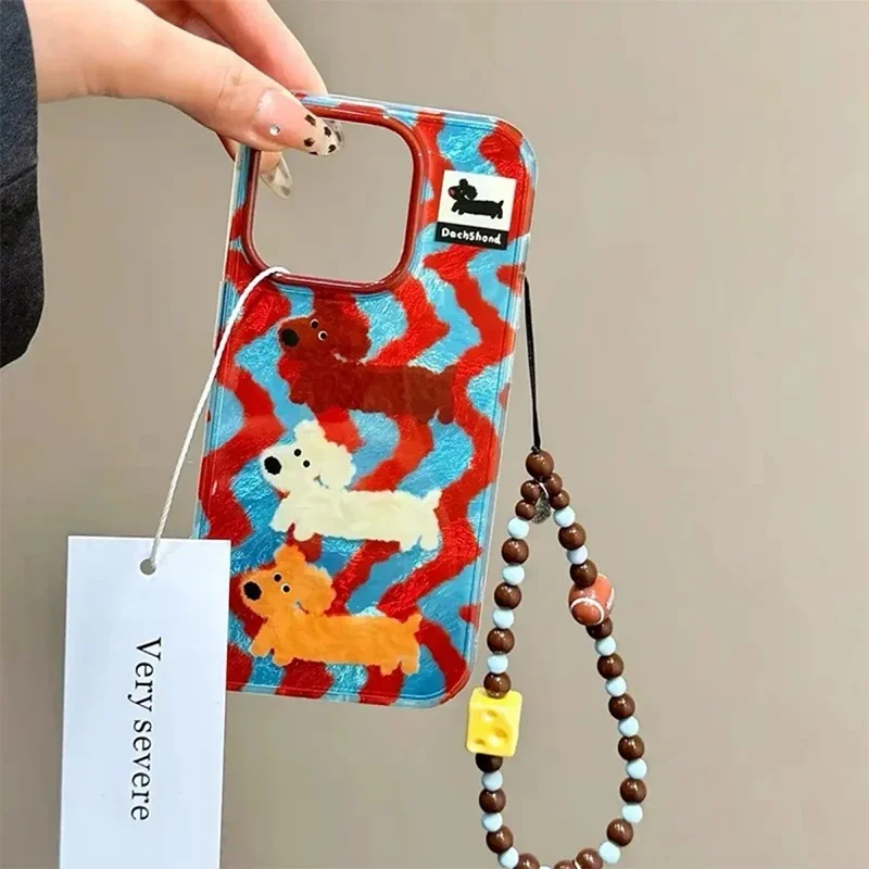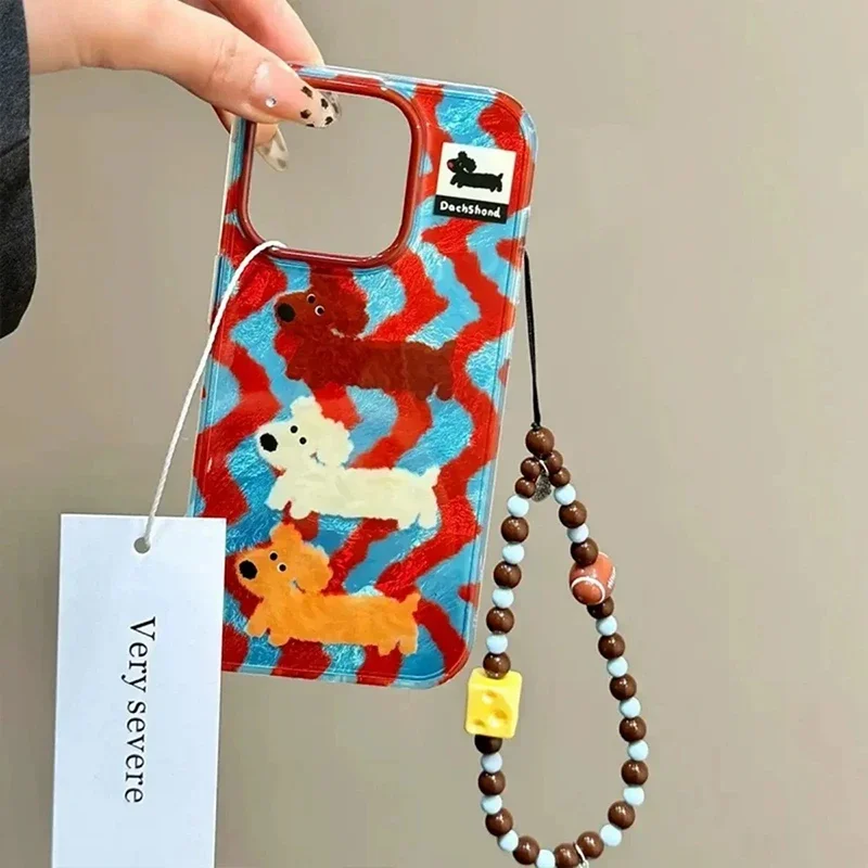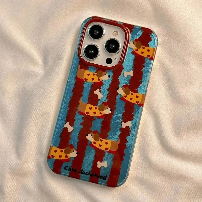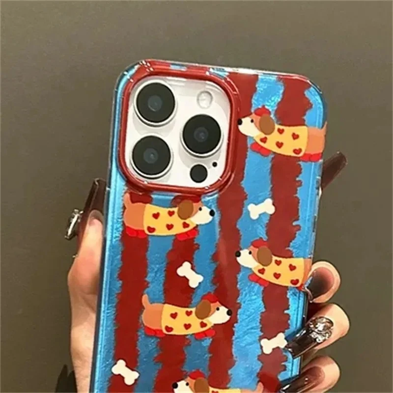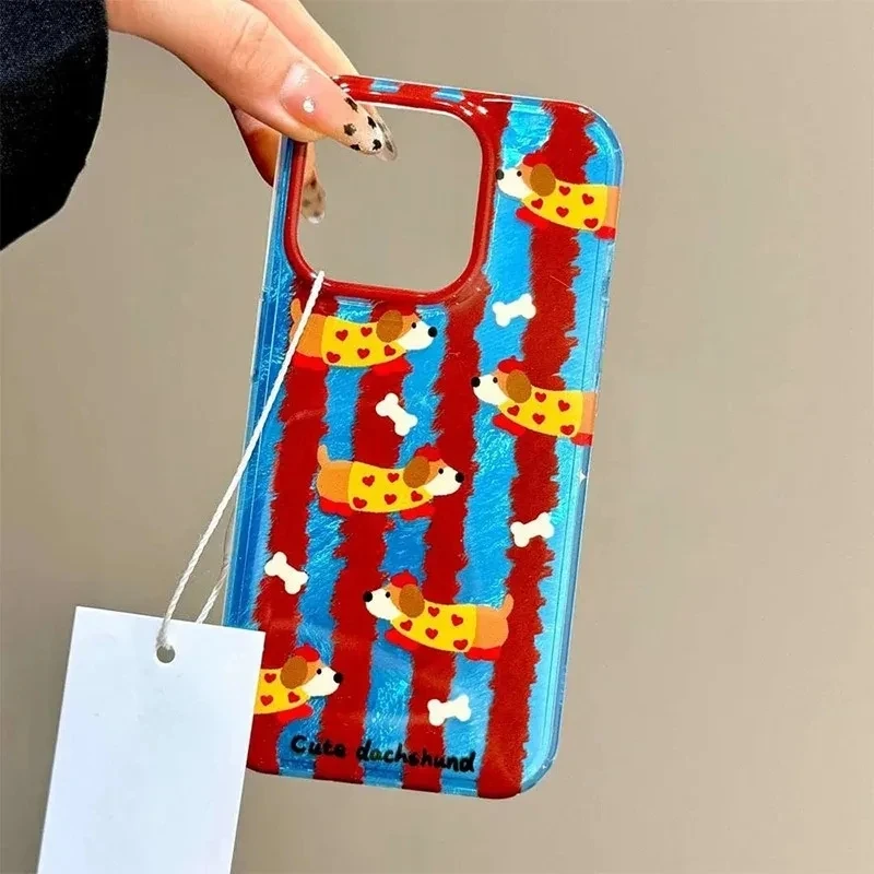 Comprar Funda para iPhone 16 15 Pro Max 14 13 12 11 Pro XS XR X SE 2022 7 8 Plus, fundas de teléfono con perro salchicha a rayas de dibujos animados, funda a prueba de golpes
