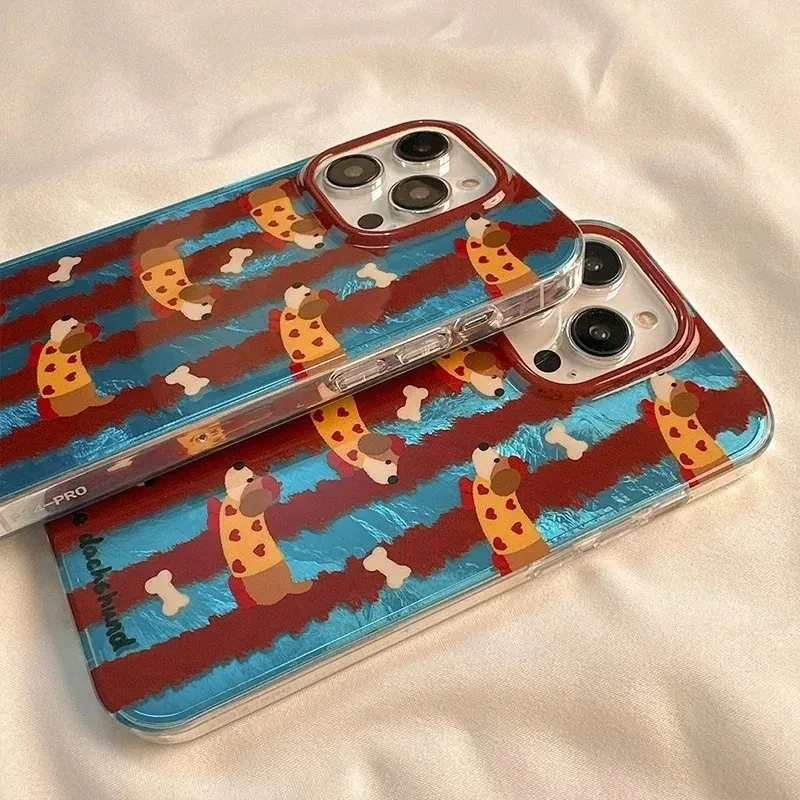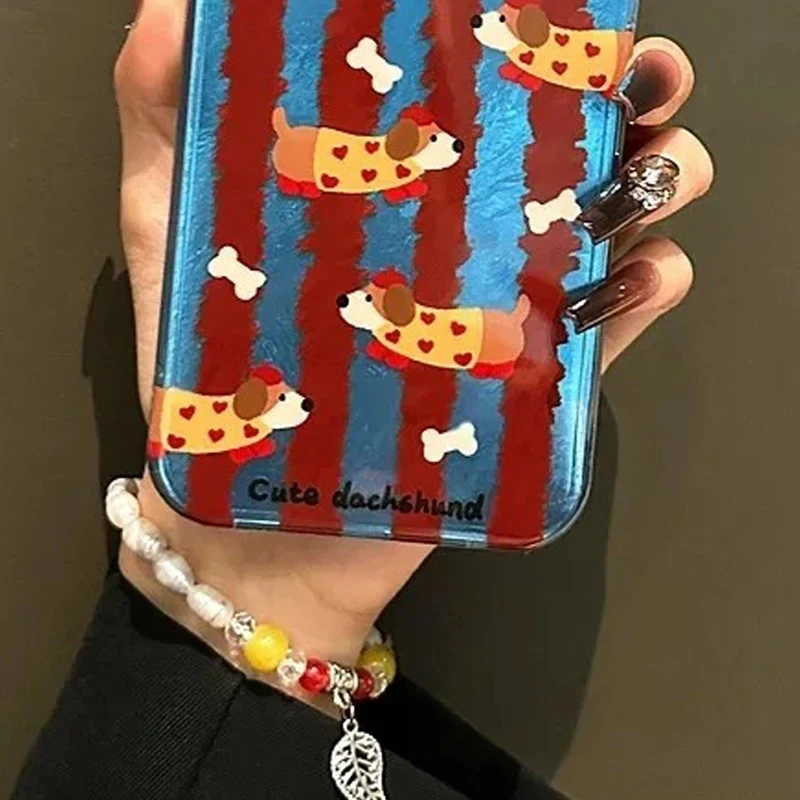 Funda para iPhone 16 15 Pro Max 14 13 12 11 Pro XS XR X SE 2022 7 8 Plus fundas de teléfono de perro salchicha a rayas de dibujos animados cubierta a prueba de golpes