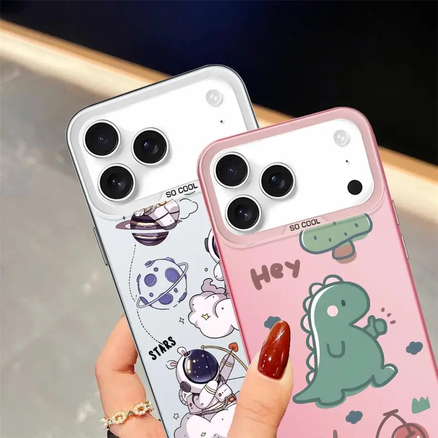 Funda para iPhone 16e 13 17Air XS 12 XR 14 15 Plus 11 16 17 Pro Max funda trasera para teléfono dibujos animados dinosaurio astronauta - imagen 3