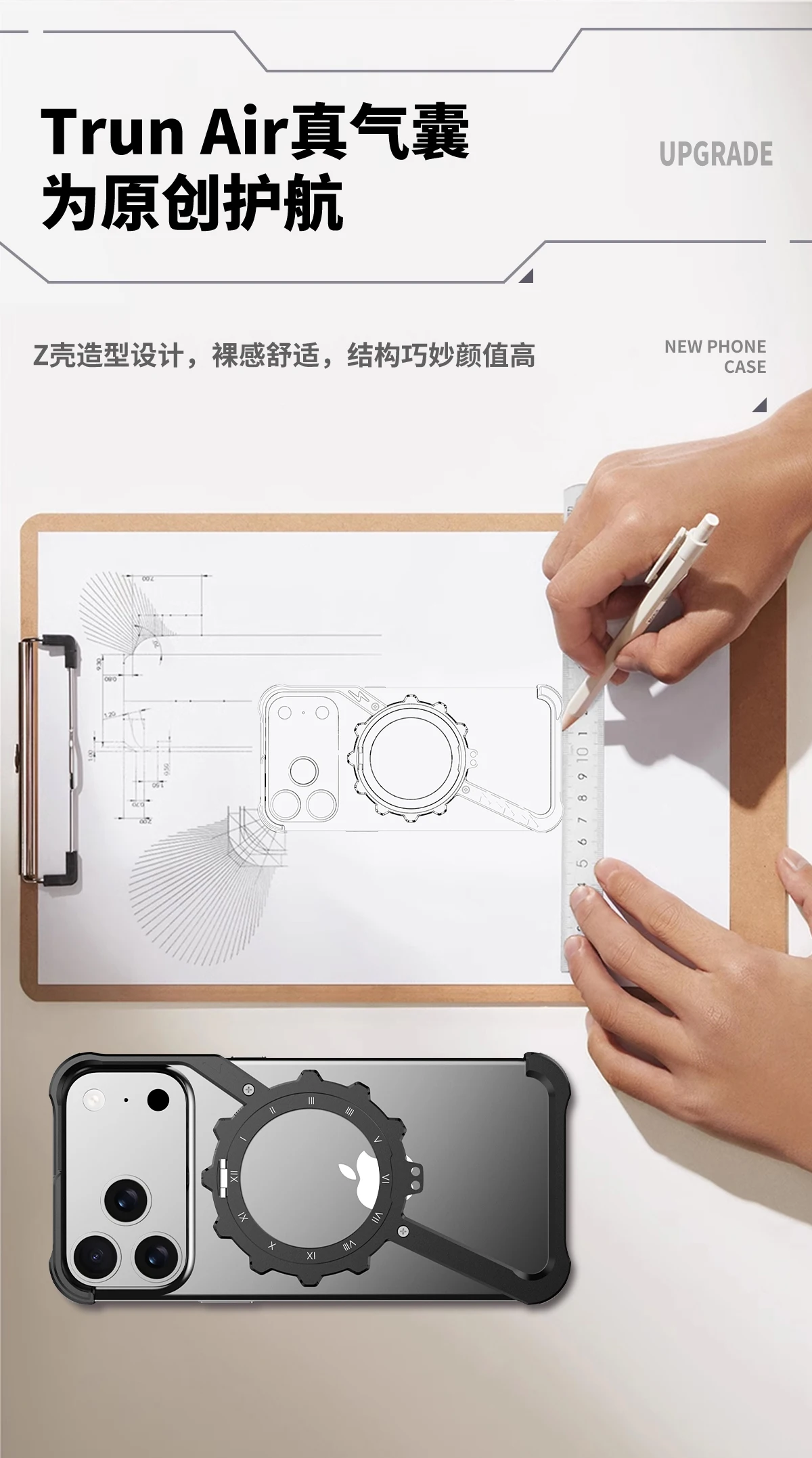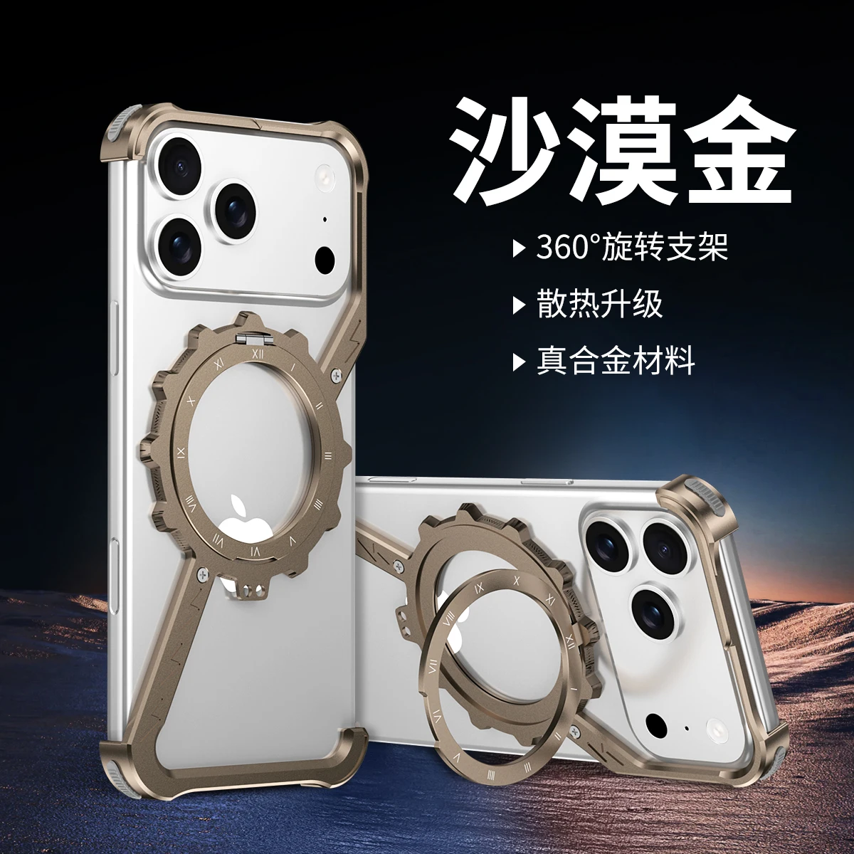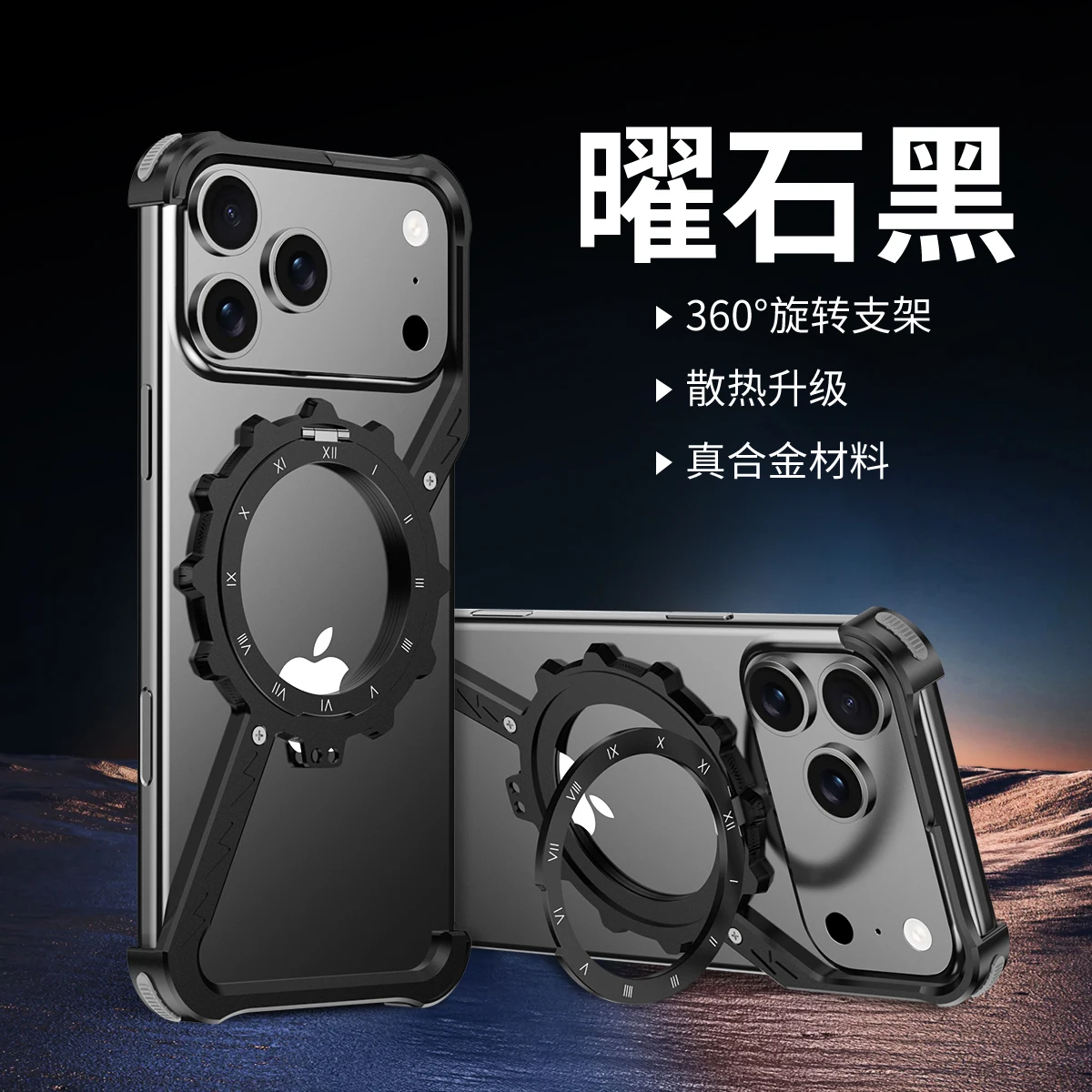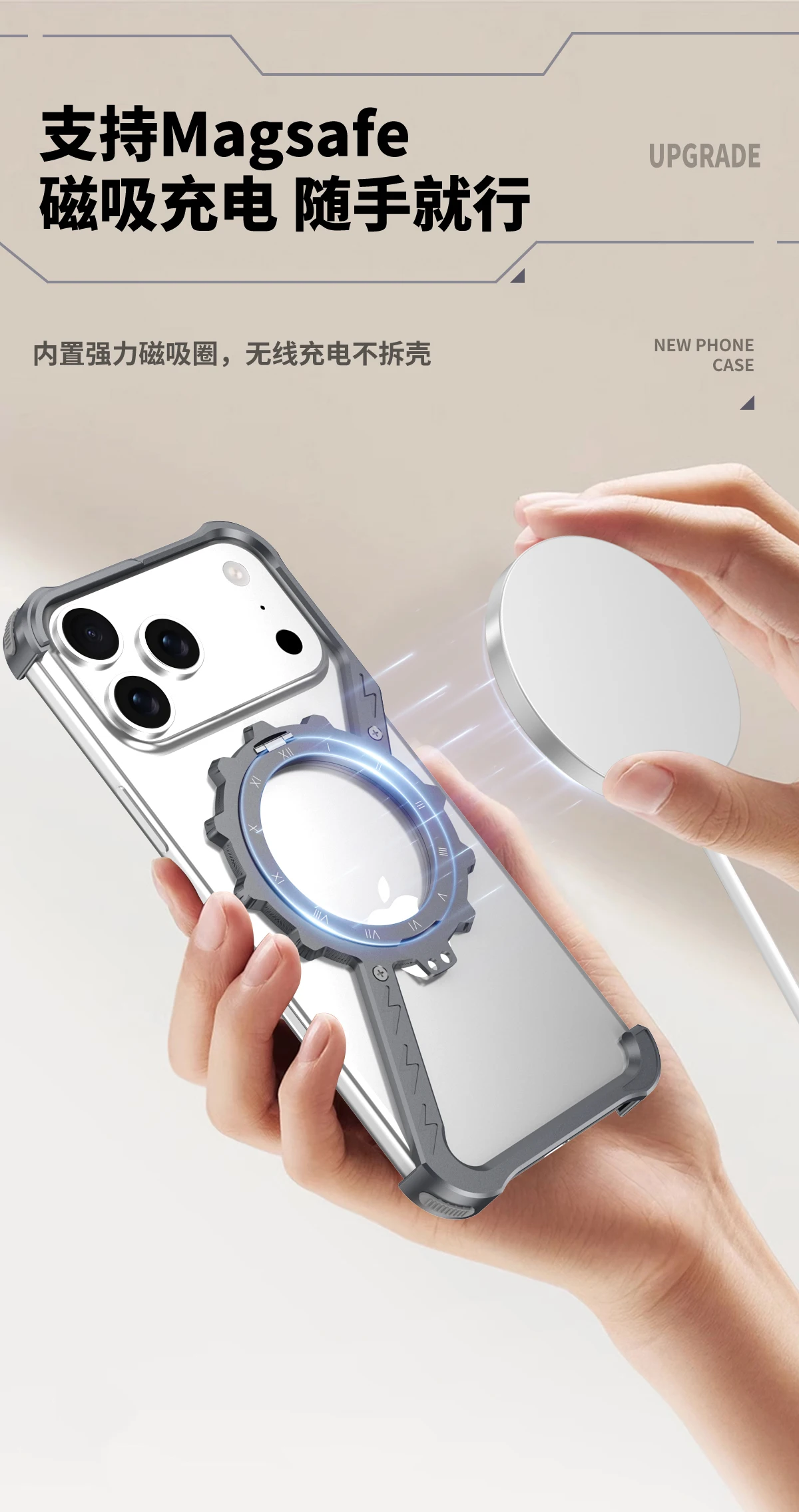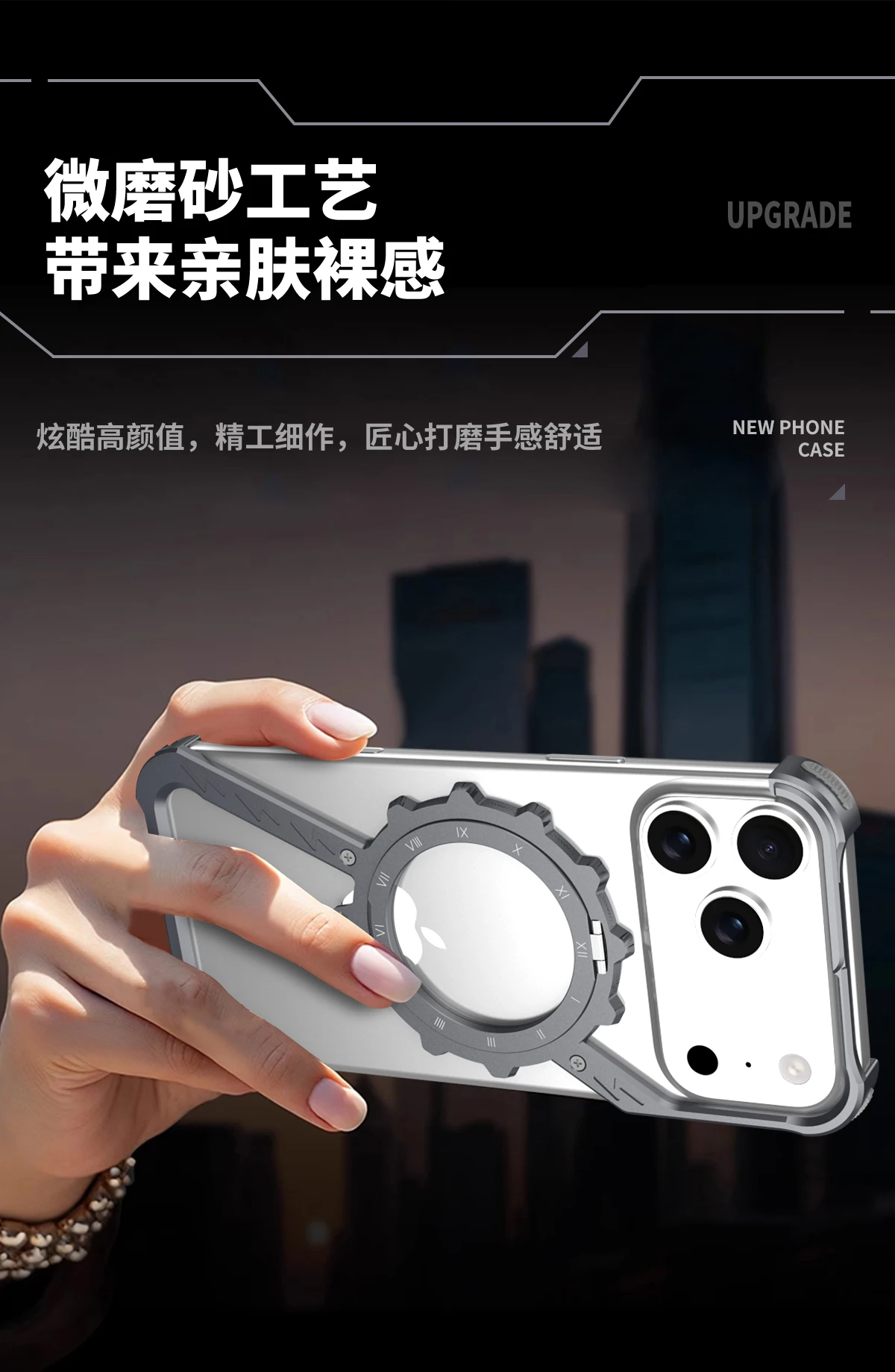 Funda para iPhone 17 16 15 Pro Max Z engranaje mecánico luz nocturna soporte magnético cubierta protectora de cuatro esquinas para iPhone 14 16 Plus