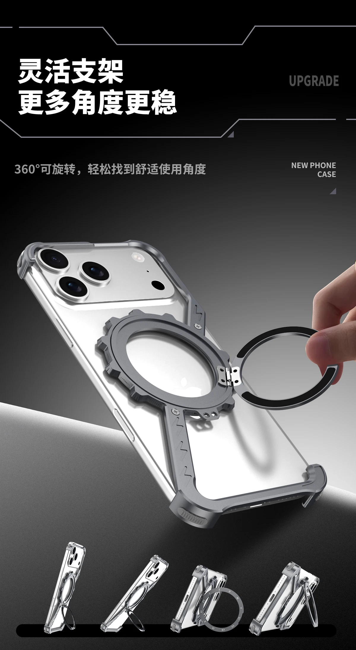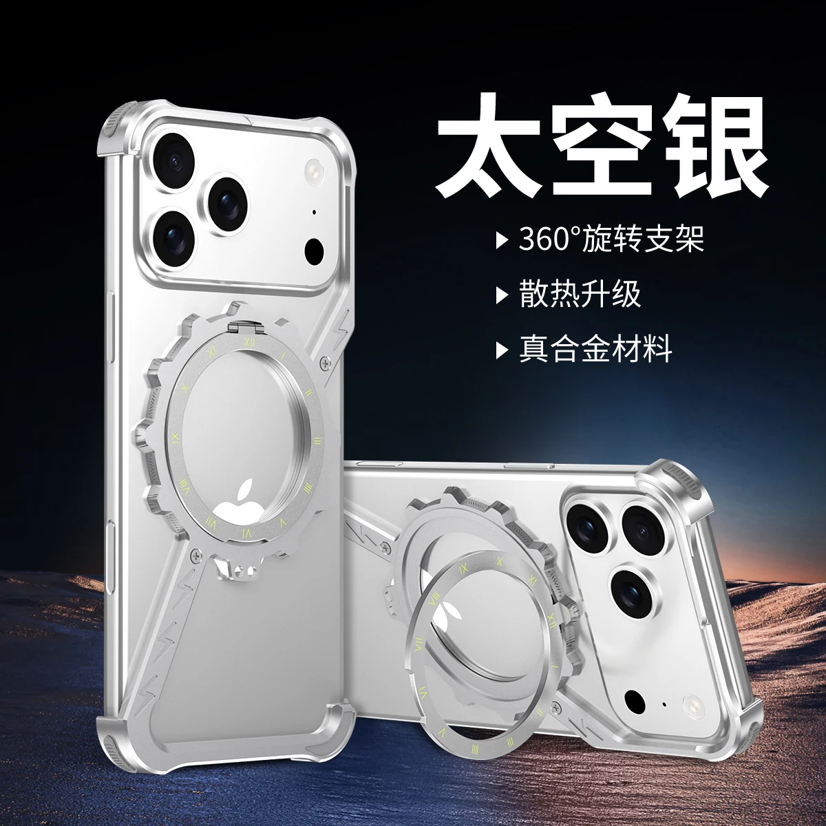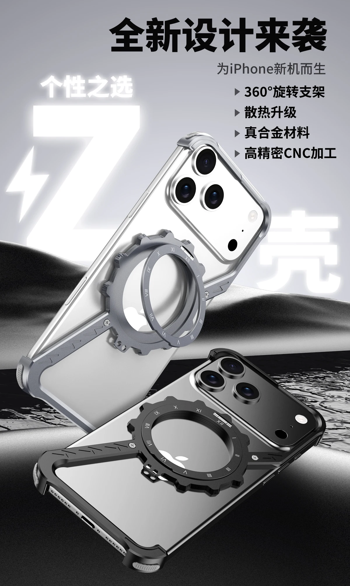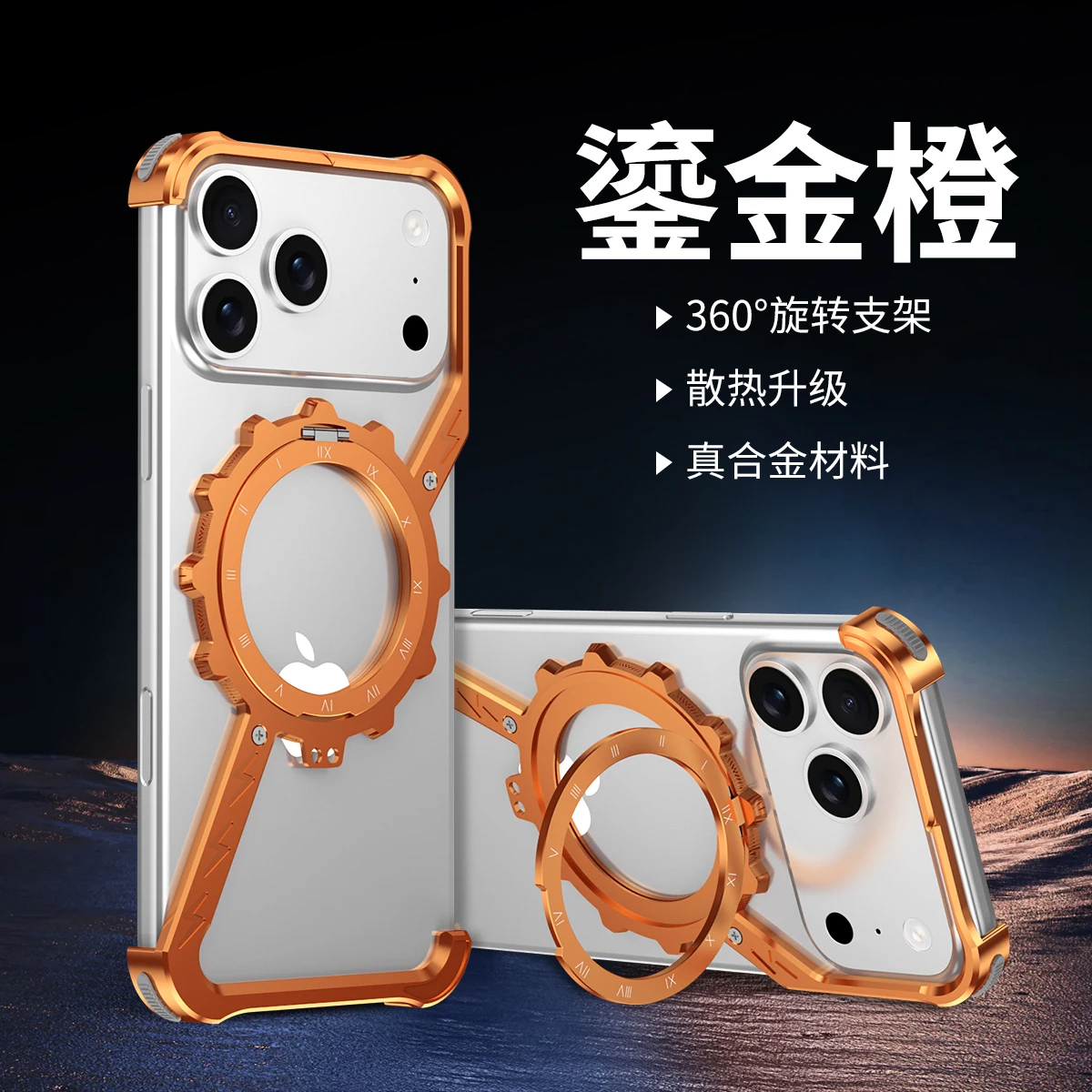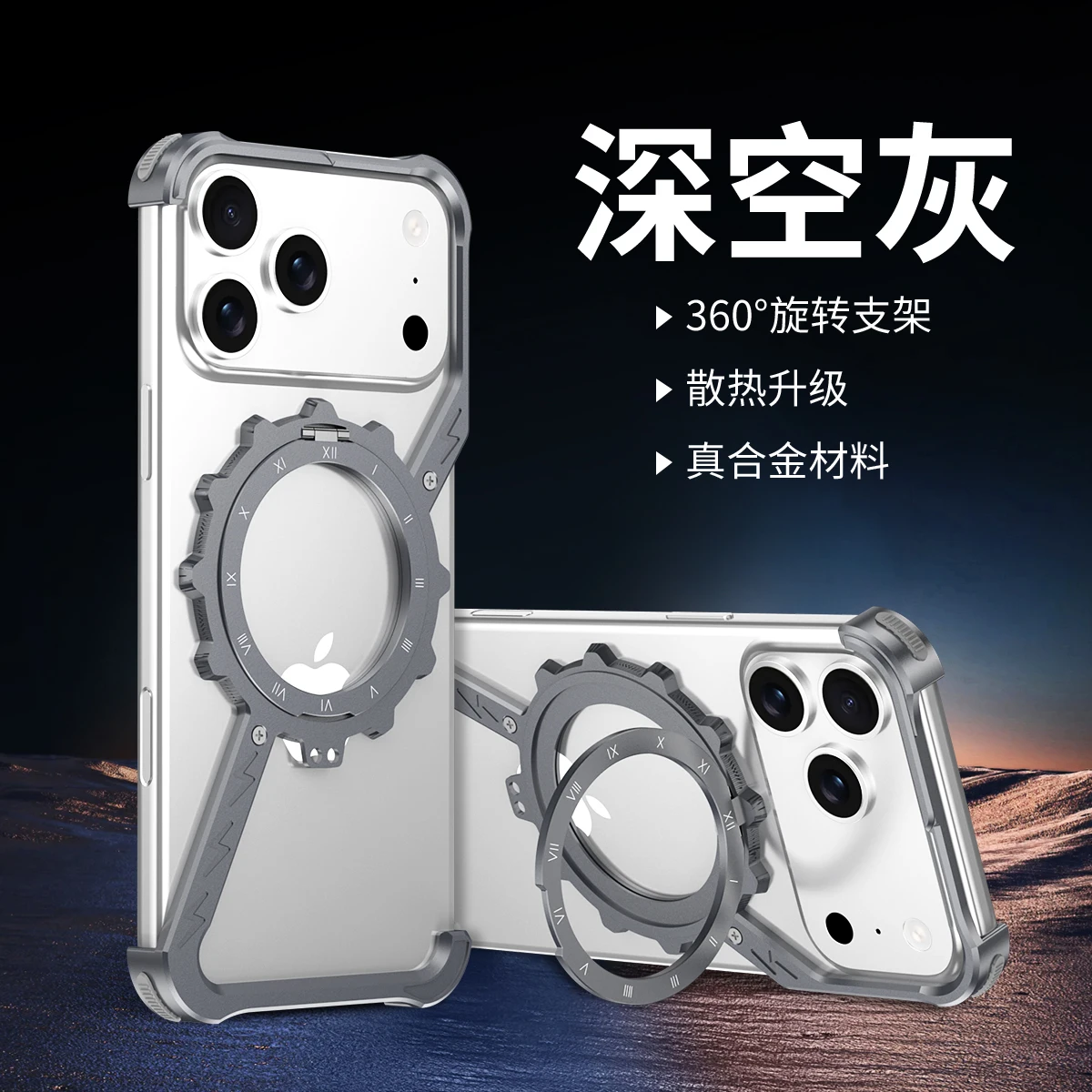 Funda para iPhone 17 16 15 Pro Max Z engranaje mecánico luz nocturna soporte magnético cubierta protectora de cuatro esquinas para iPhone 14 16 Plus
