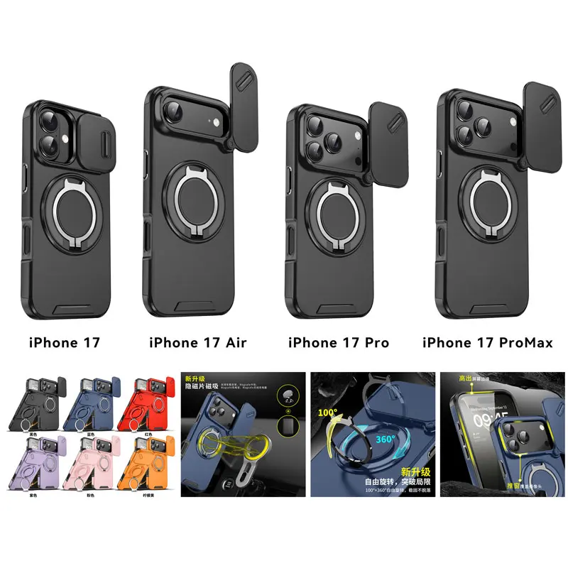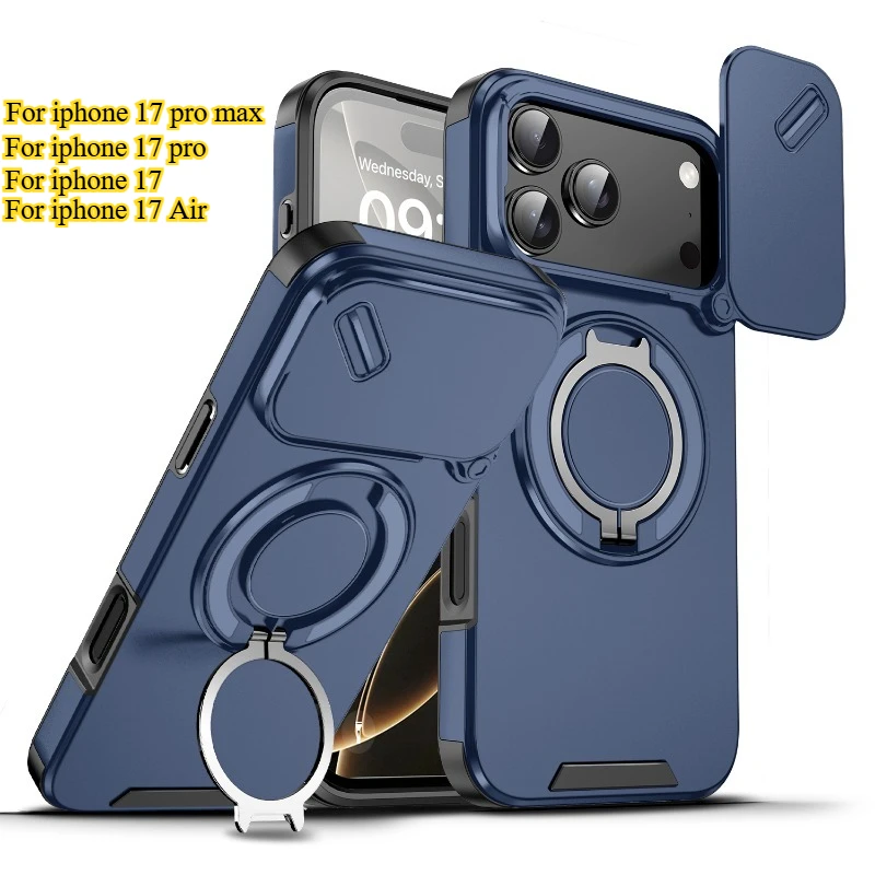 Funda para Iphone 17 Pro Max 17 Air, funda de teléfono con soporte magnético híbrido a prueba de golpes para Iphone 16E 15 14 13 Pro, funda protectora con lente deslizante