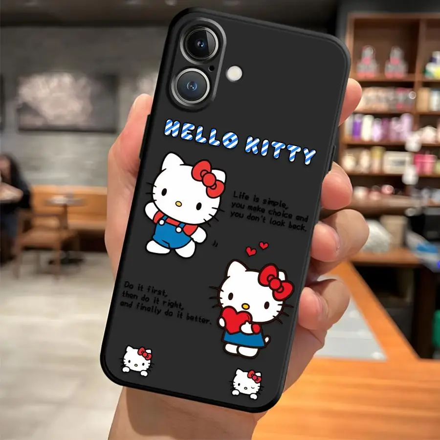 Funda para iPhone 17Air XS Max 7 8 XR 13 12 11 17 Pro Max 15 16 14 Plus cubierta de teléfono suave negra moda dibujos animados de Hello Kitty