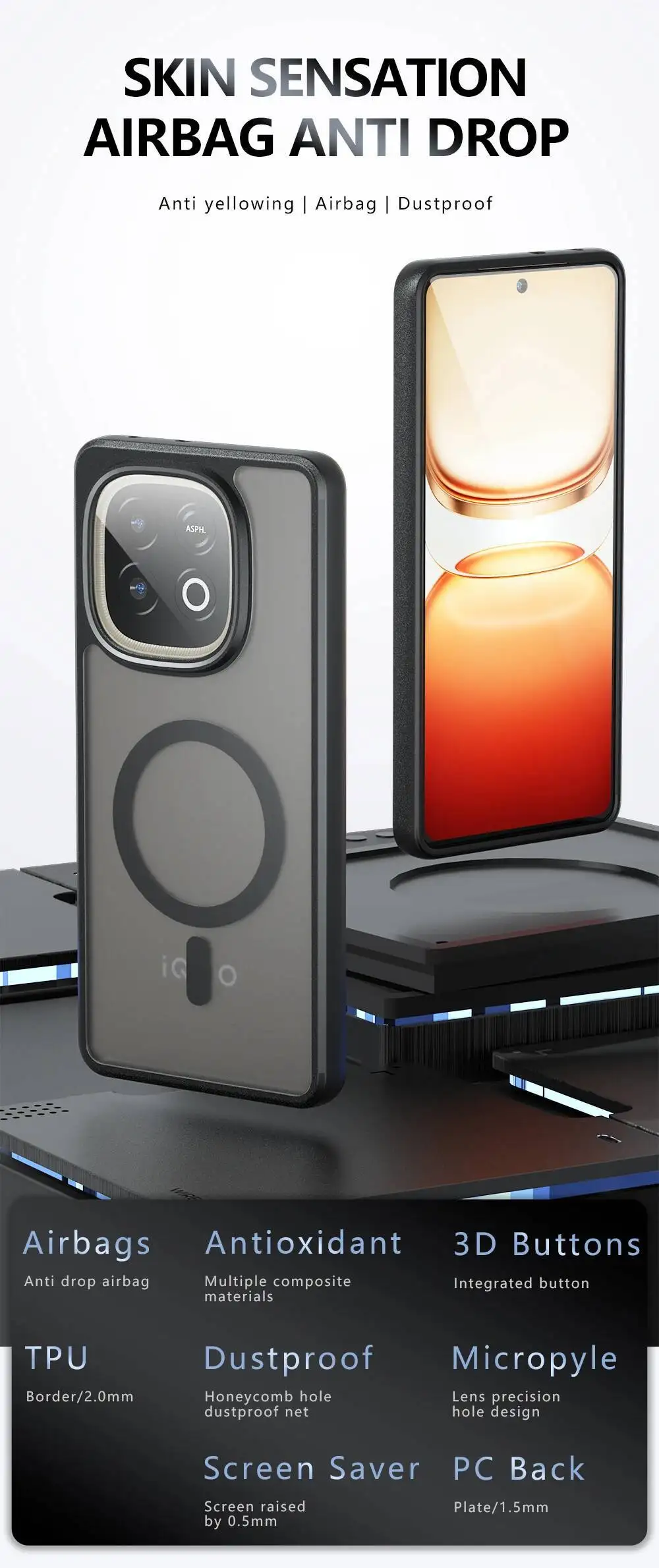 Funda para IQOO neo 10 global 15 Z10 Turbo Pro plus para carga inalámbrica Magsafe mate esmerilado PC TPU cubierta transparente parachoques
