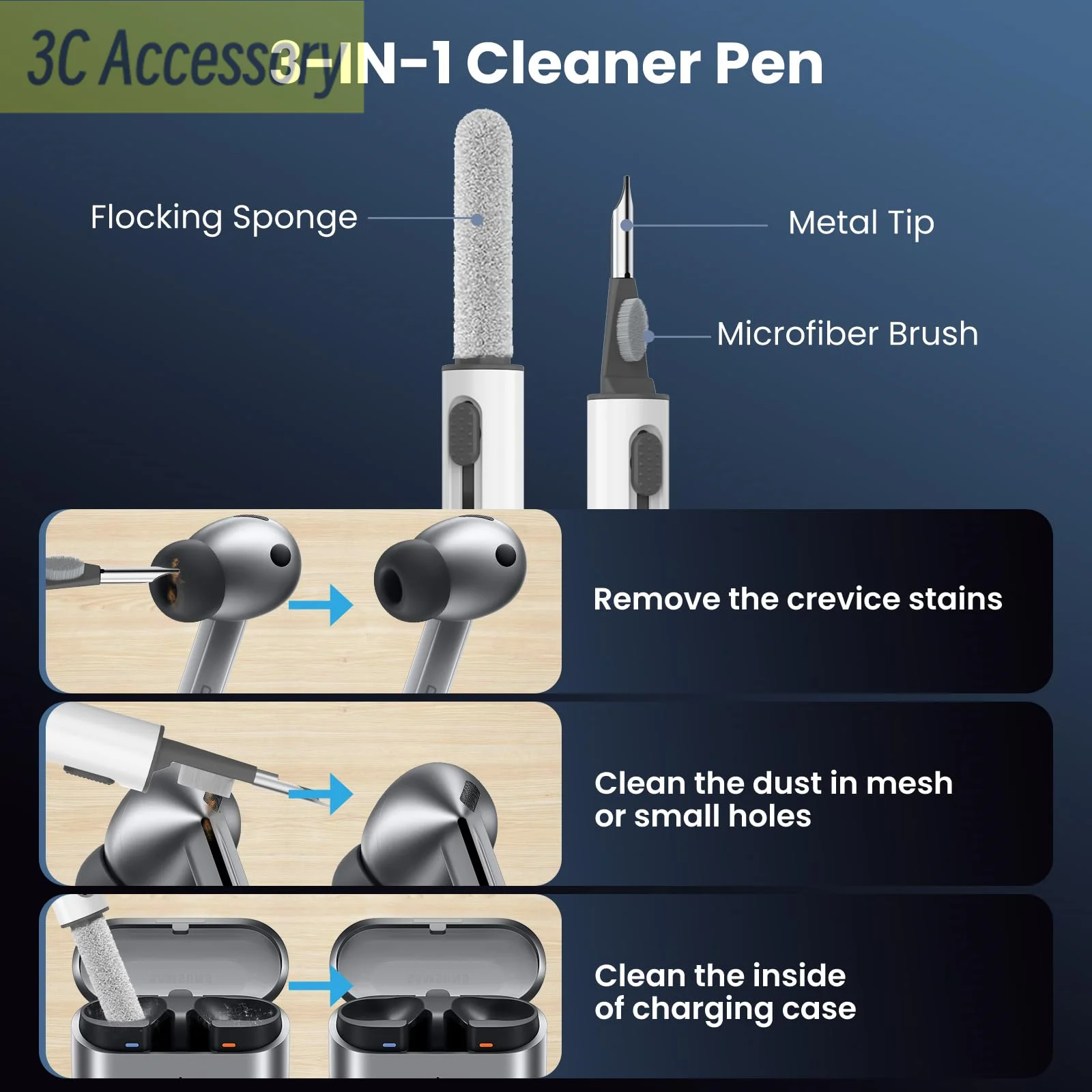 Bolígrafo de limpieza y llavero 3 en 1: viene con un mosquetón de metal, lo que hace que sea cómodo y seguro llevar sus Galaxy Buds3.Bolígrafo de limpieza premium con punta de bolígrafo de metal, cepillo suave y cepillo flocado de alta densidad, fácil de eliminar el polvo y la suciedad de los auriculares.Mantenga siempre sus Galaxy Buds3 Pro como nuevos