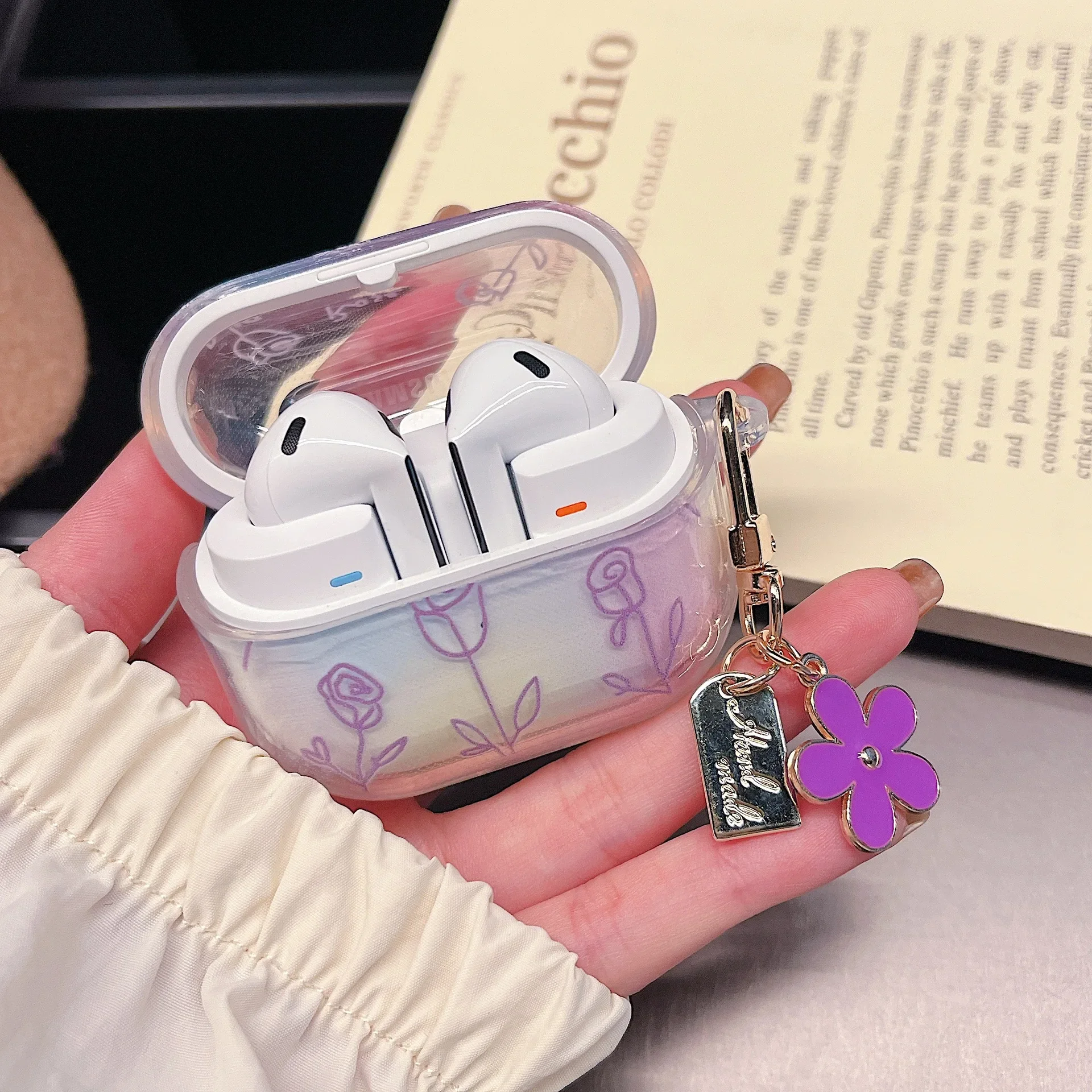 Funda KT de dibujos animados para Samsung Galaxy Buds 3 Pro, funda transparente para auriculares inalámbricos con flores para Samsung Buds3, funda protectora