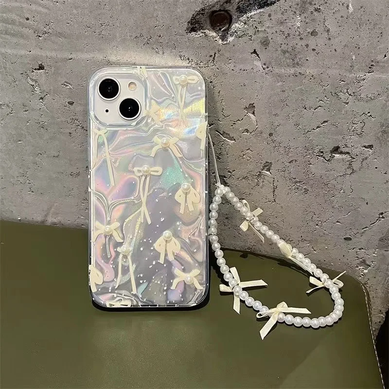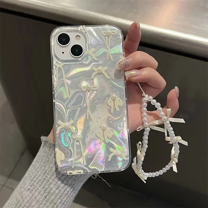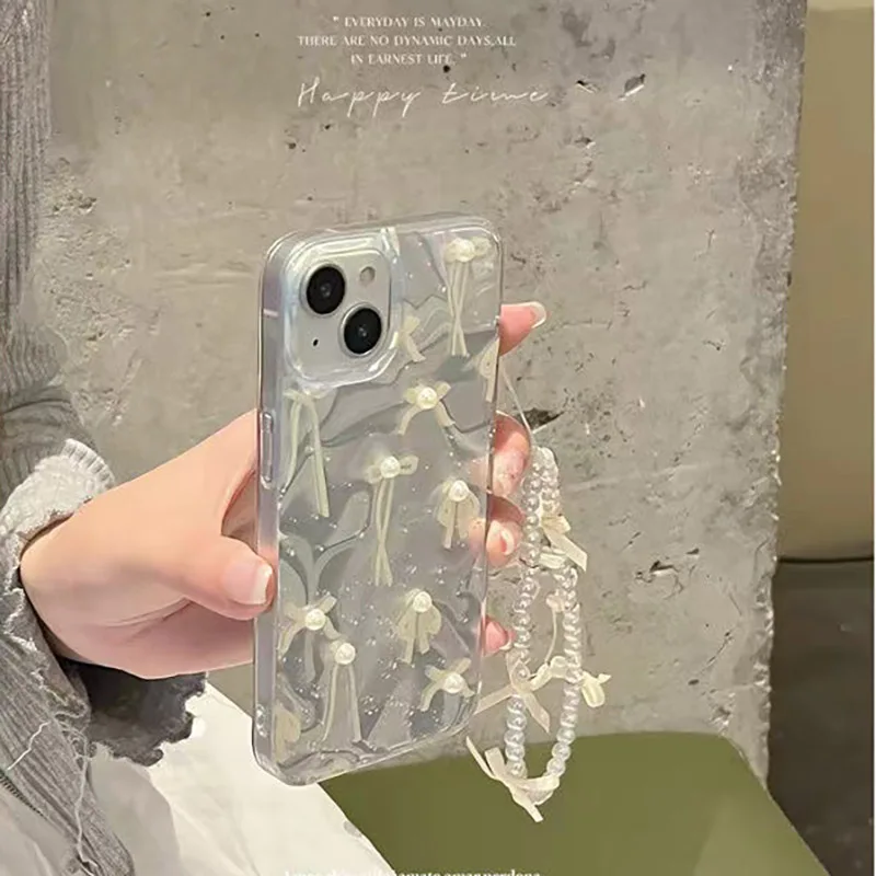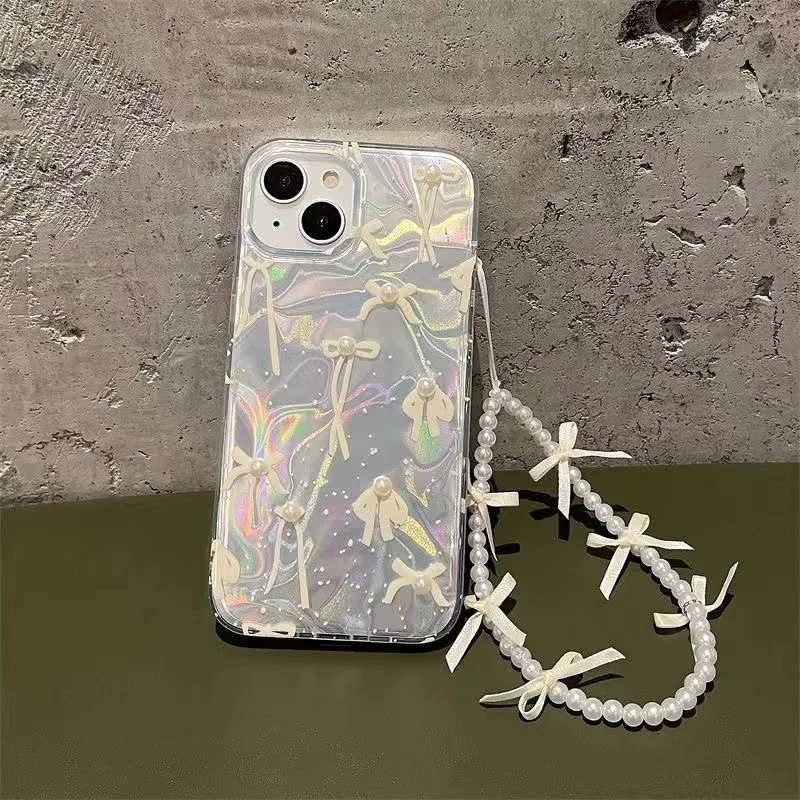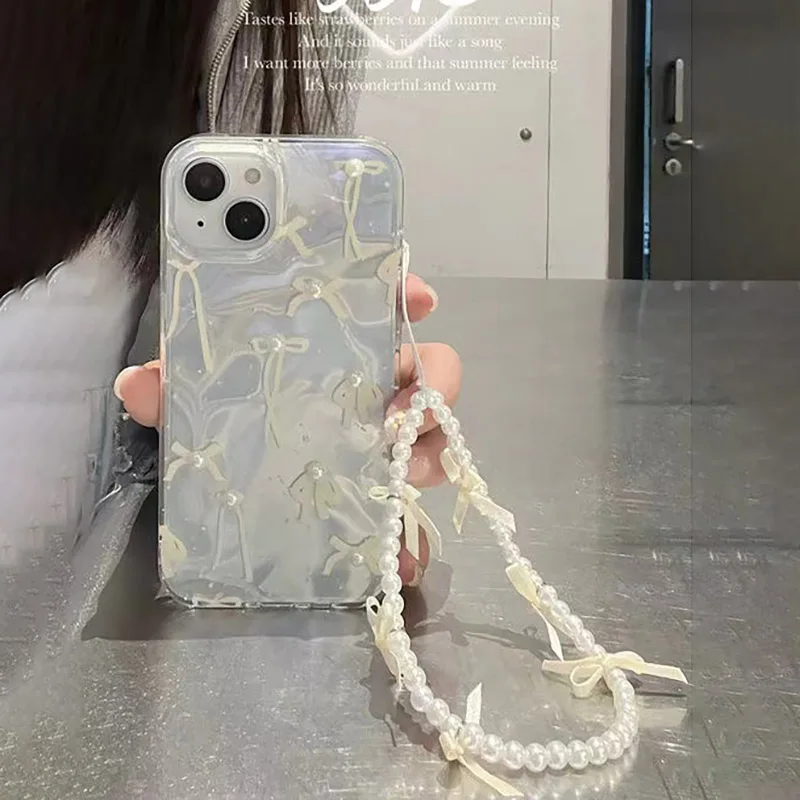 Comprar Funda con lazo de perlas para Samsung Galaxy S25 Ultra S24 S22 S23 Plus S21 S20 FE A16 A15 A14 A34 A54 A25 A35 A55 A36 A26 A56 A06 Girl