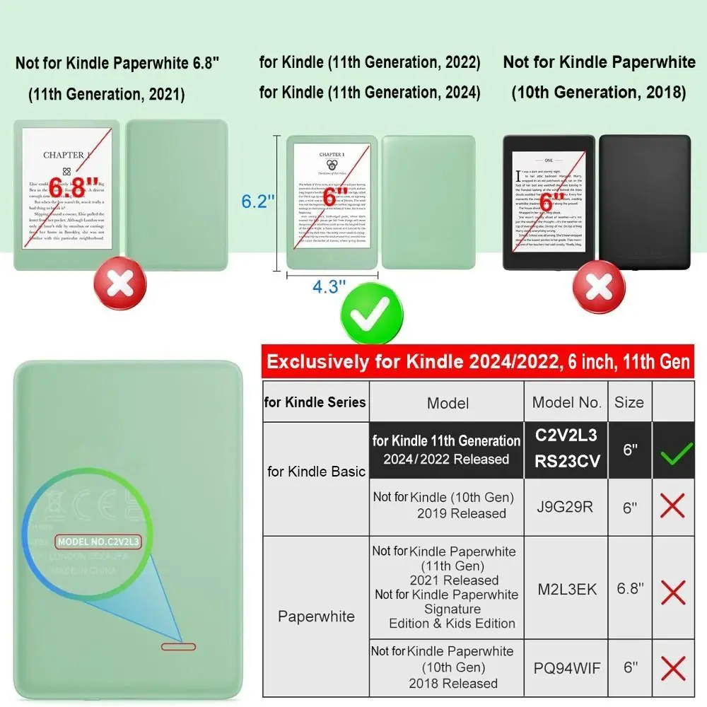 - Universal Compatibility: This protective cover is designed to perfectly fit both for Kindle Basic 2024 (11th Generation, 6 inch) and for Kindle Basic 2022 (6 inch,11th Generation). With precise cutouts and a tailored design, it ensures easy access to all buttons and features, providing a seamless user experience.