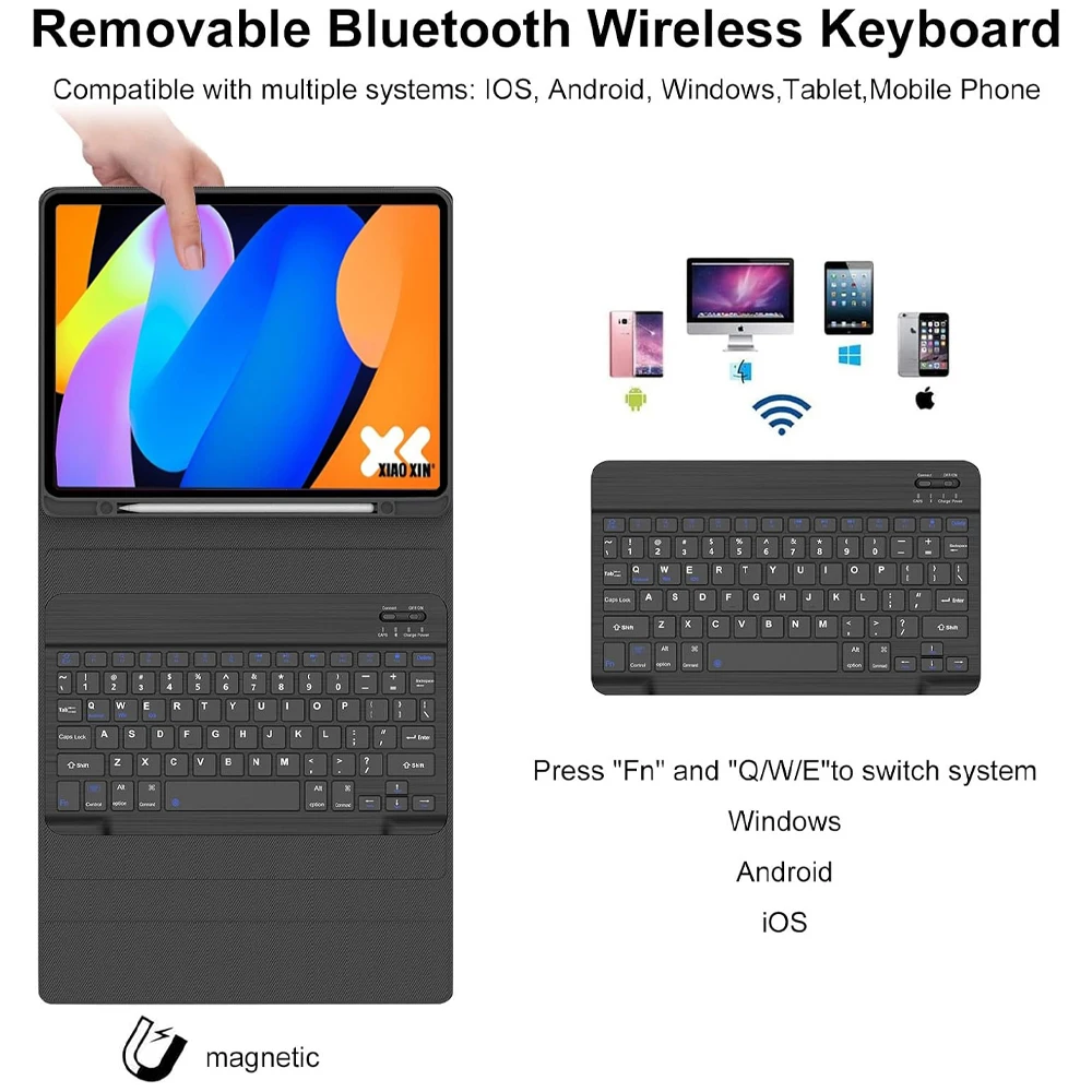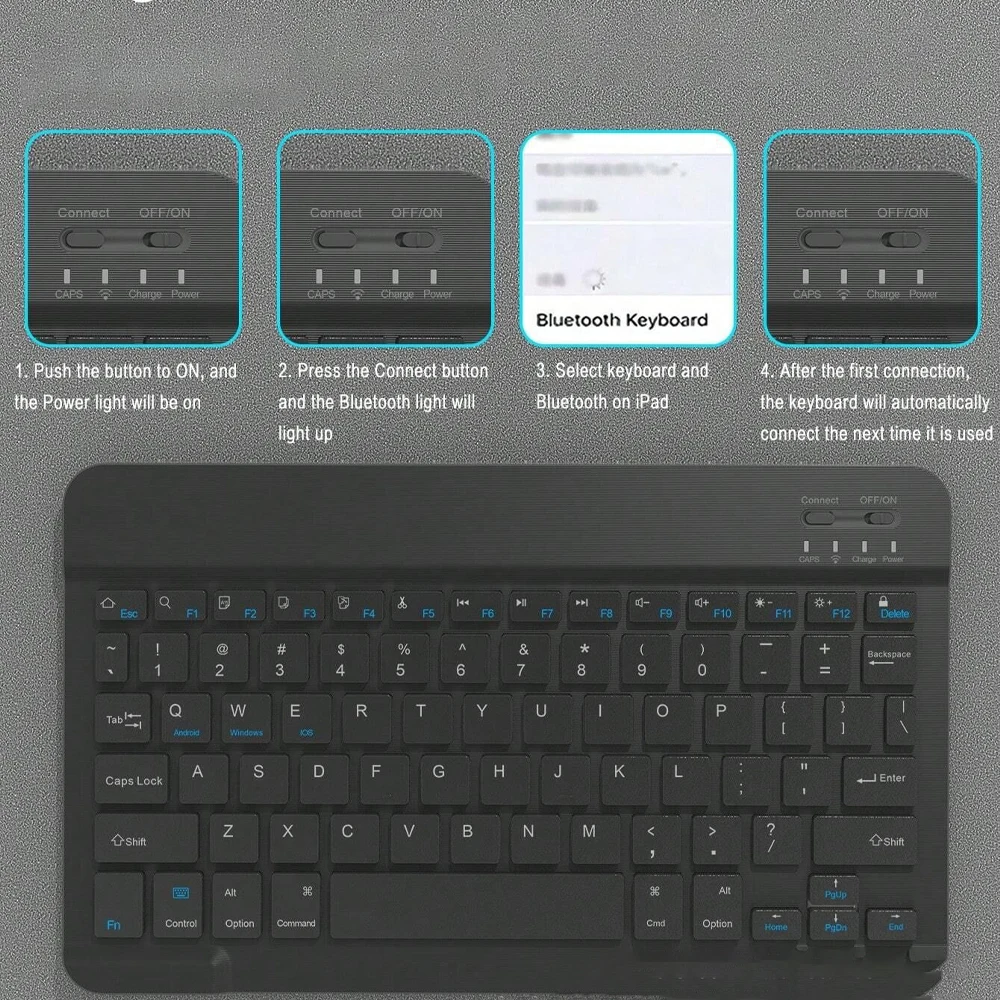 4, Teclado del panel táctil: encienda el teclado, presione Fn+C para y luego busque la conexión Bluetooth con "Teclado" en la lista de Bluetooth del dispositivo.