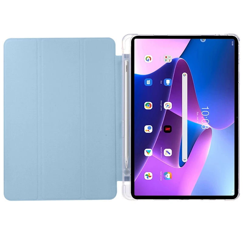 El producto es como se describe en la fotografía y está diseñado para una tableta de 10,6 pulgadas. Tiene tres compartimentos: uno para el lápiz óptico, otro para recambios de puntas táctiles y el tercero para colocar el lápiz de pie cuando se usa la tablet. Se puede usar como soporte para que la tablet esté apoyada de pie, pero es importante cogerle el truco, ya que si no se pone en la posición de triángulo, la estructura se puede desmoronar fácilmente