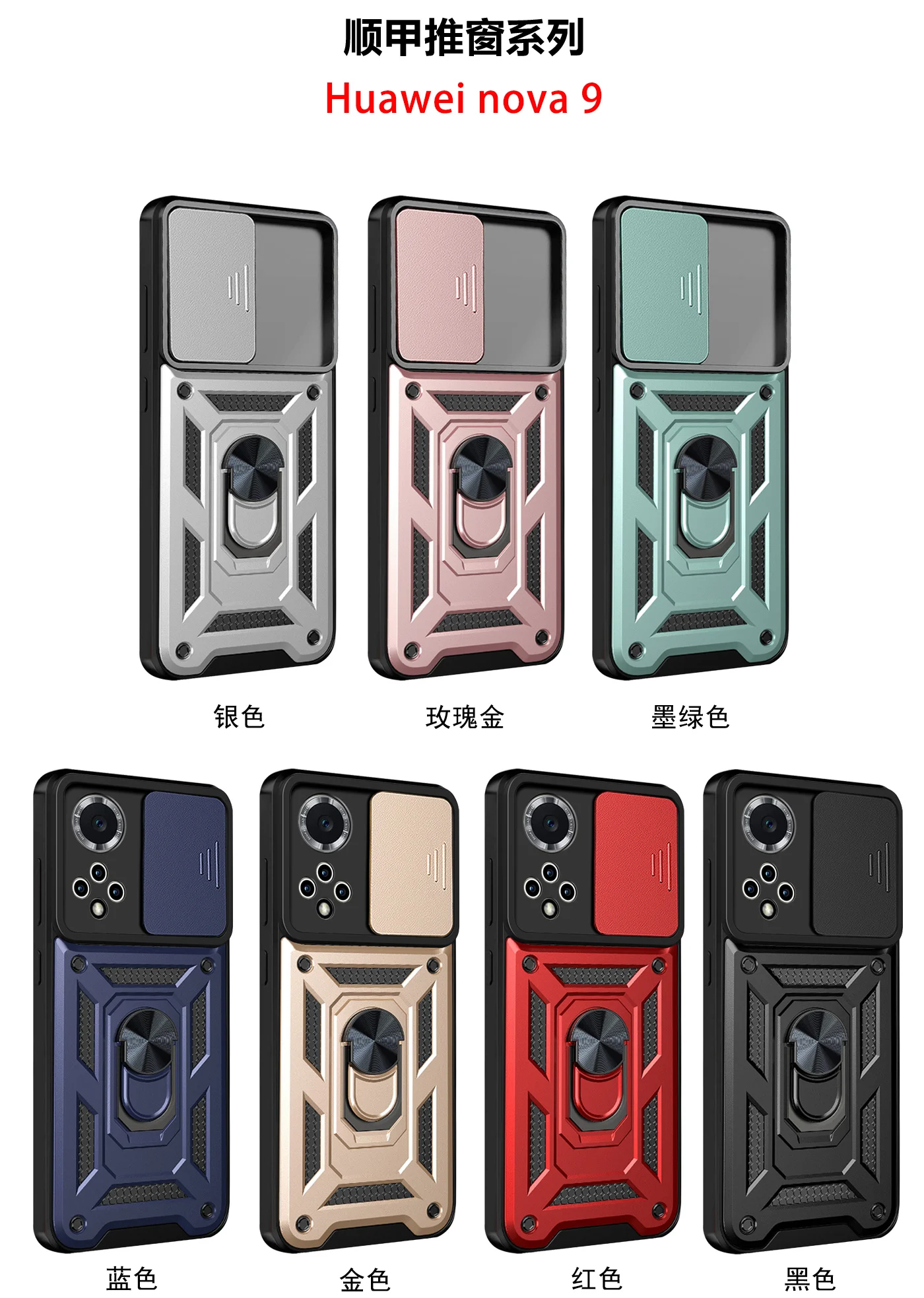 Funda de lente de cámara deslizante para Huawei Nova Y61 10 SE 10 Pro 10 Y90 Y70 Y70 Plus 4G 9 SE 9 NOVA 6SE NOVA 7I Plus, cubierta de armadura de parachoques
