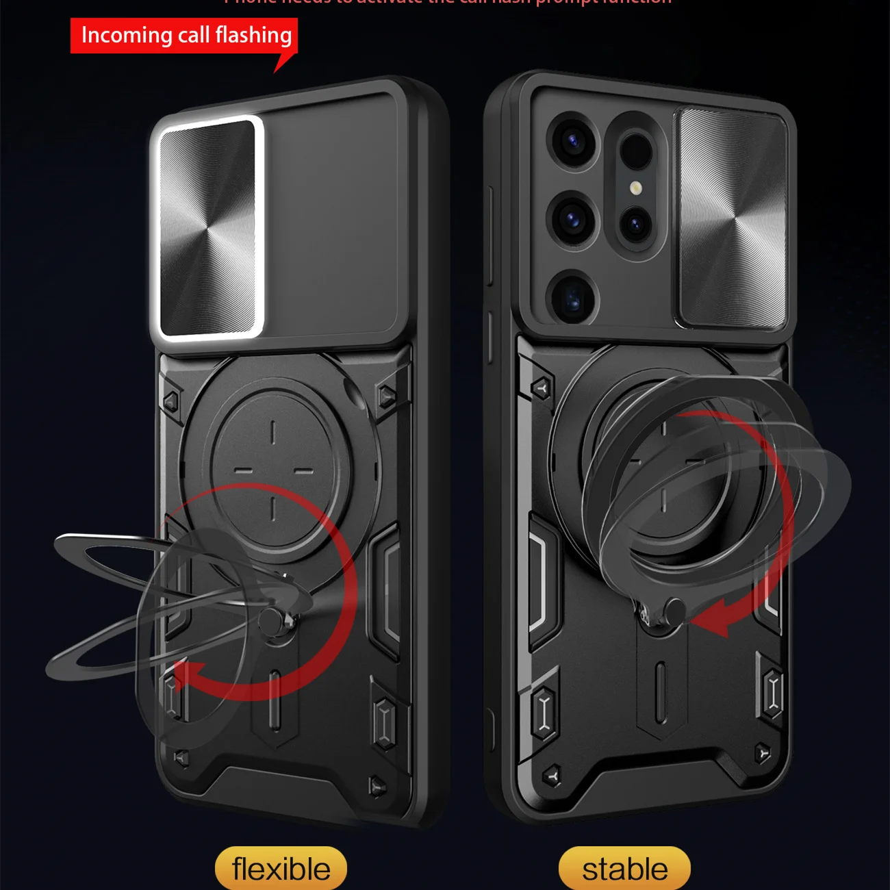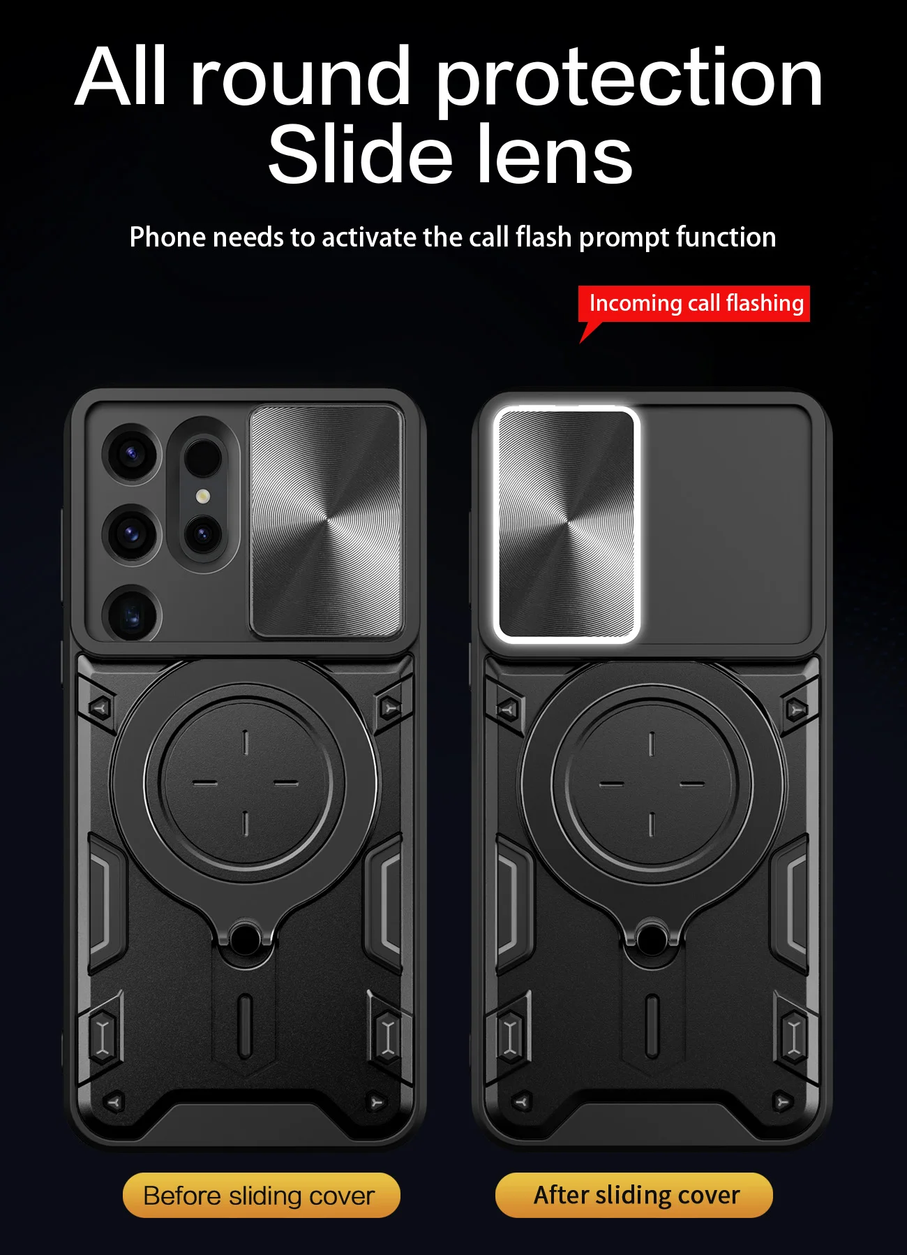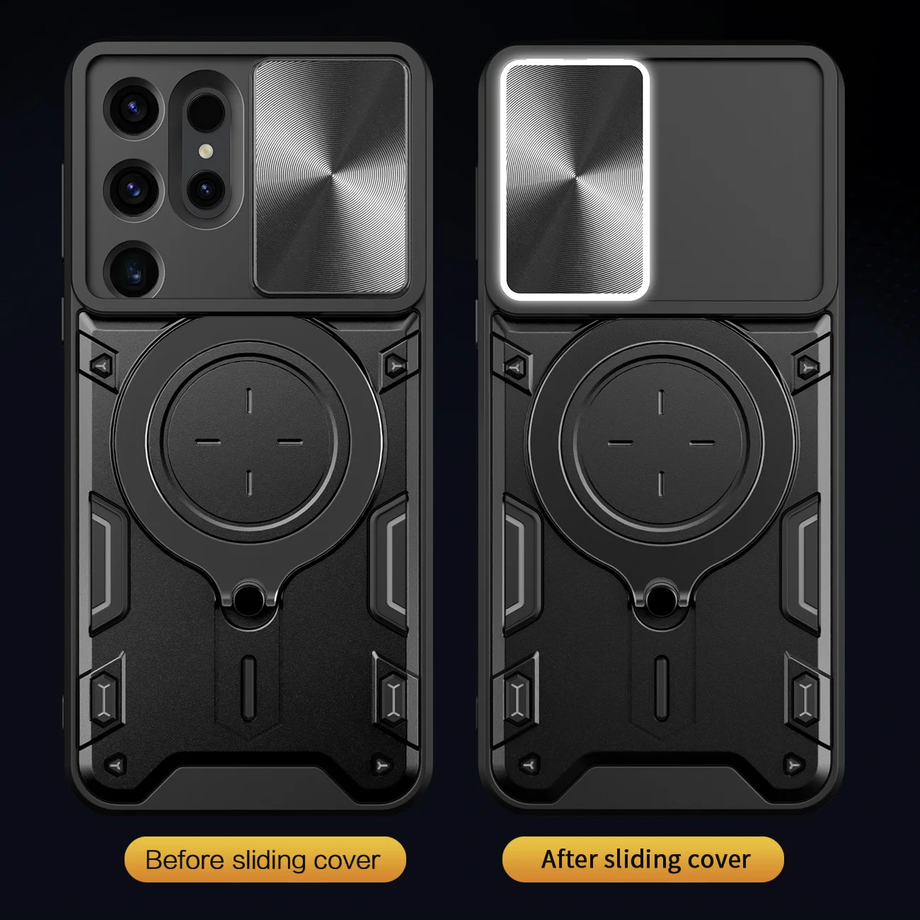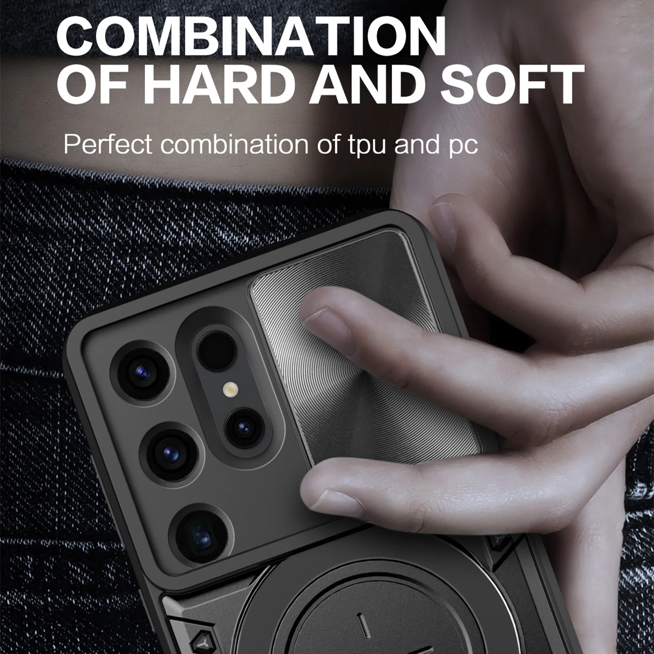 Funda de lente de cámara deslizante para Samsung S24, S23, S22 FE Ultra Plus, armadura magnética, anillo de Metal híbrido, cubierta trasera para S21, S20, 2020, 4G, 5G