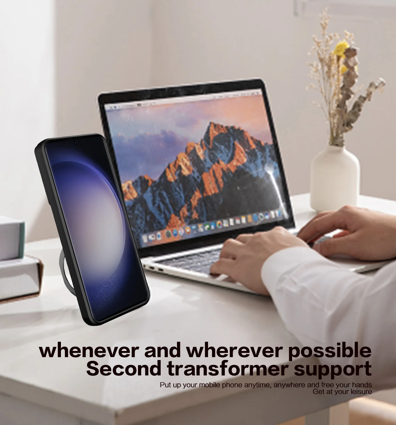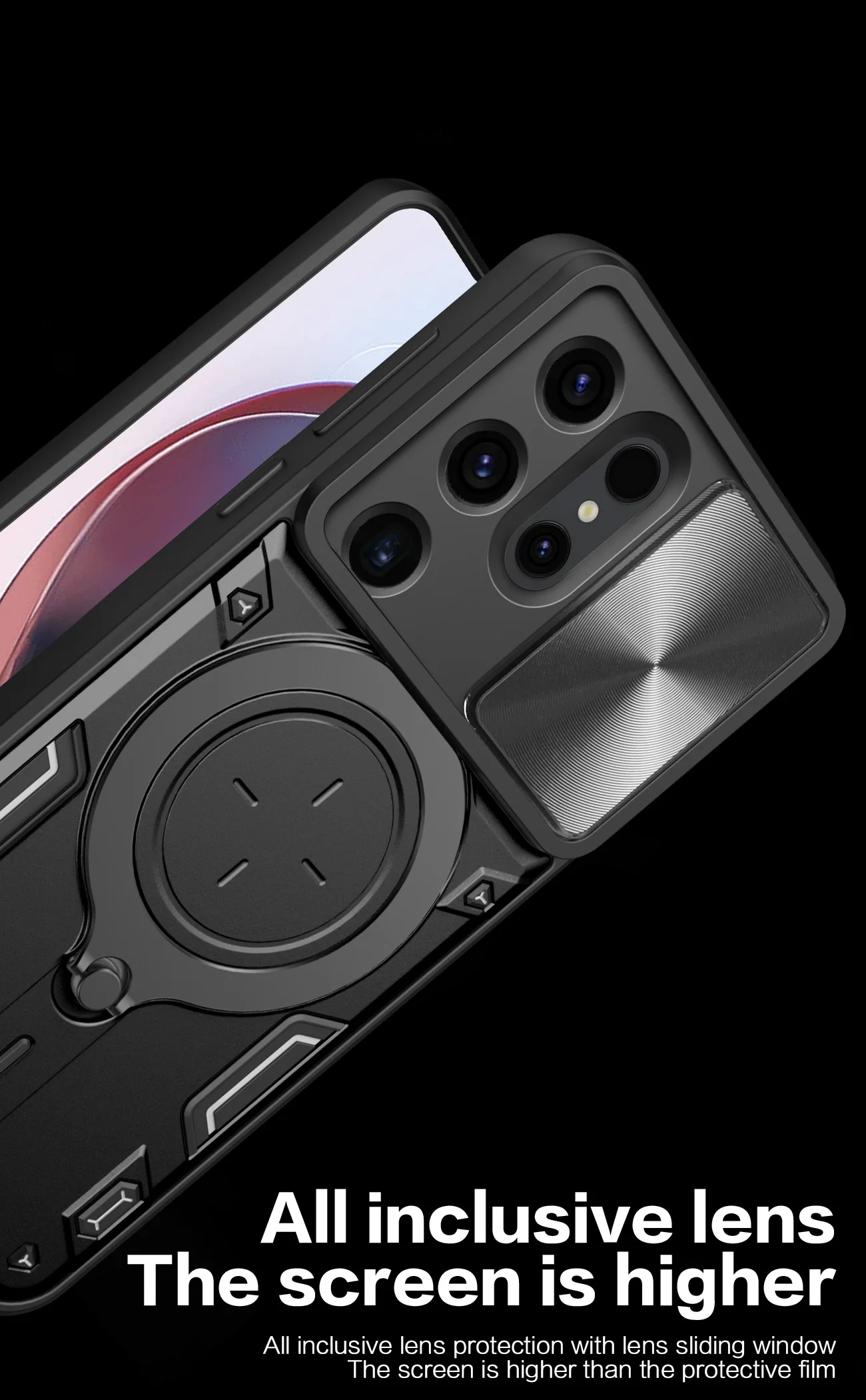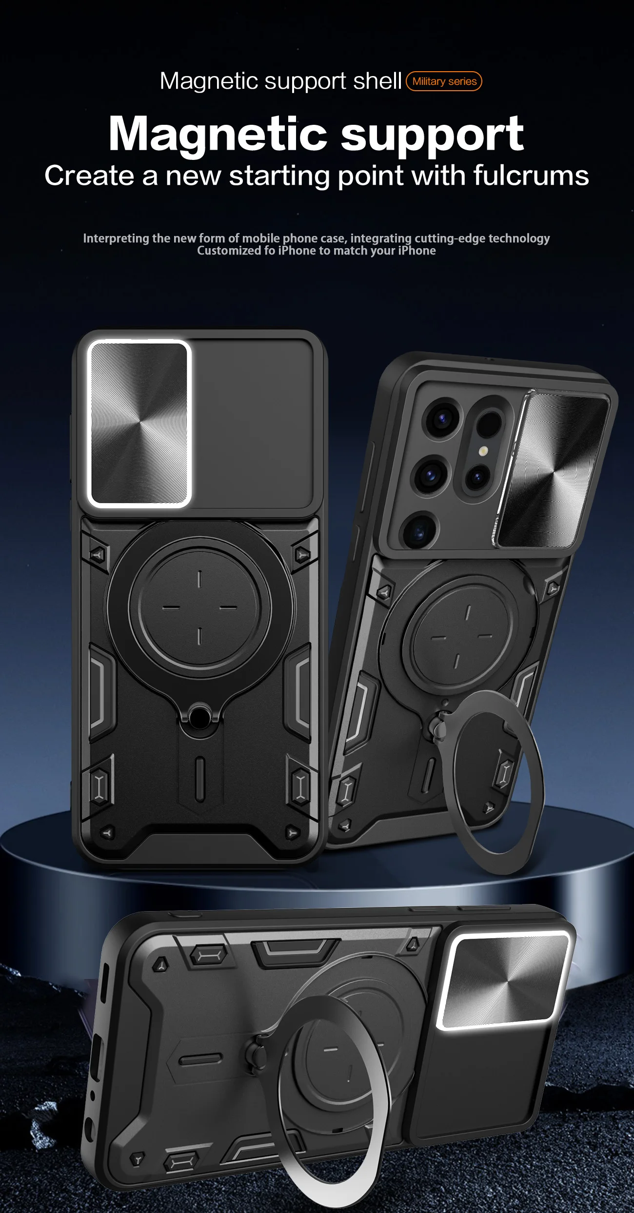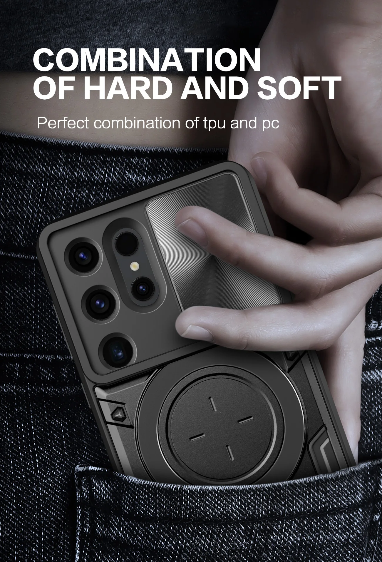 Funda de lente de cámara deslizante para Samsung S24, S23, S22 FE Ultra Plus, armadura magnética, anillo de Metal híbrido, cubierta trasera para S21, S20, 2020, 4G, 5G