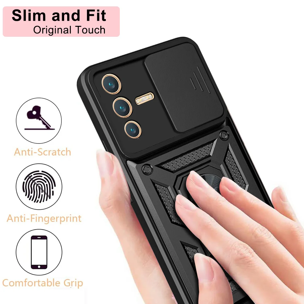 Funda de lente de cámara deslizante para VIVO V25E T1 T1 Pro S15E S16E S16 PRO S12 Y11 Y12 Y15 Y20i Y20S Y33S iQOO U1X V21, cubierta de armadura de parachoques