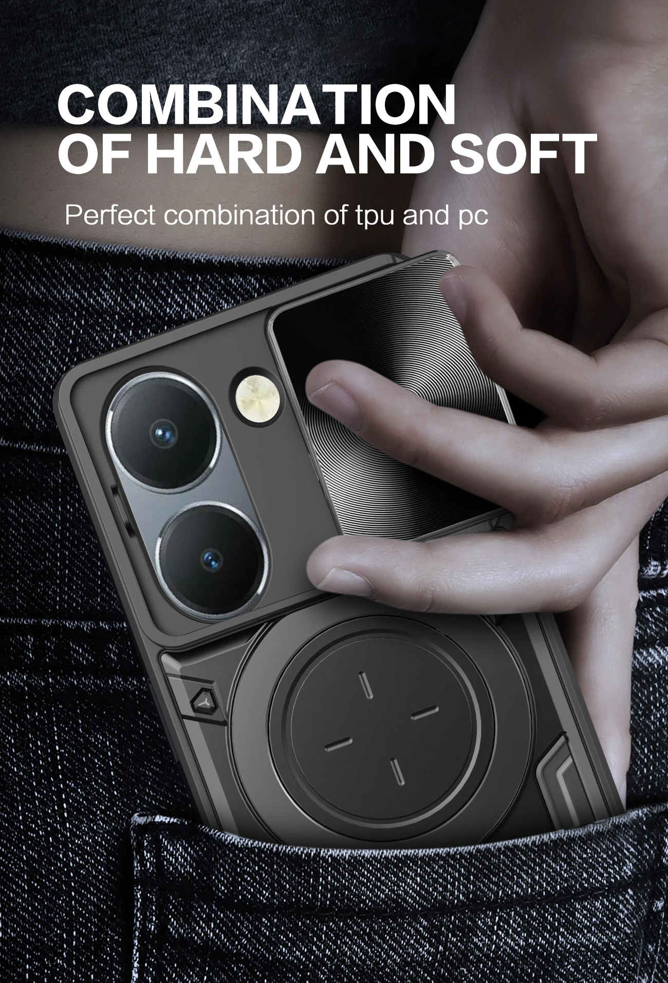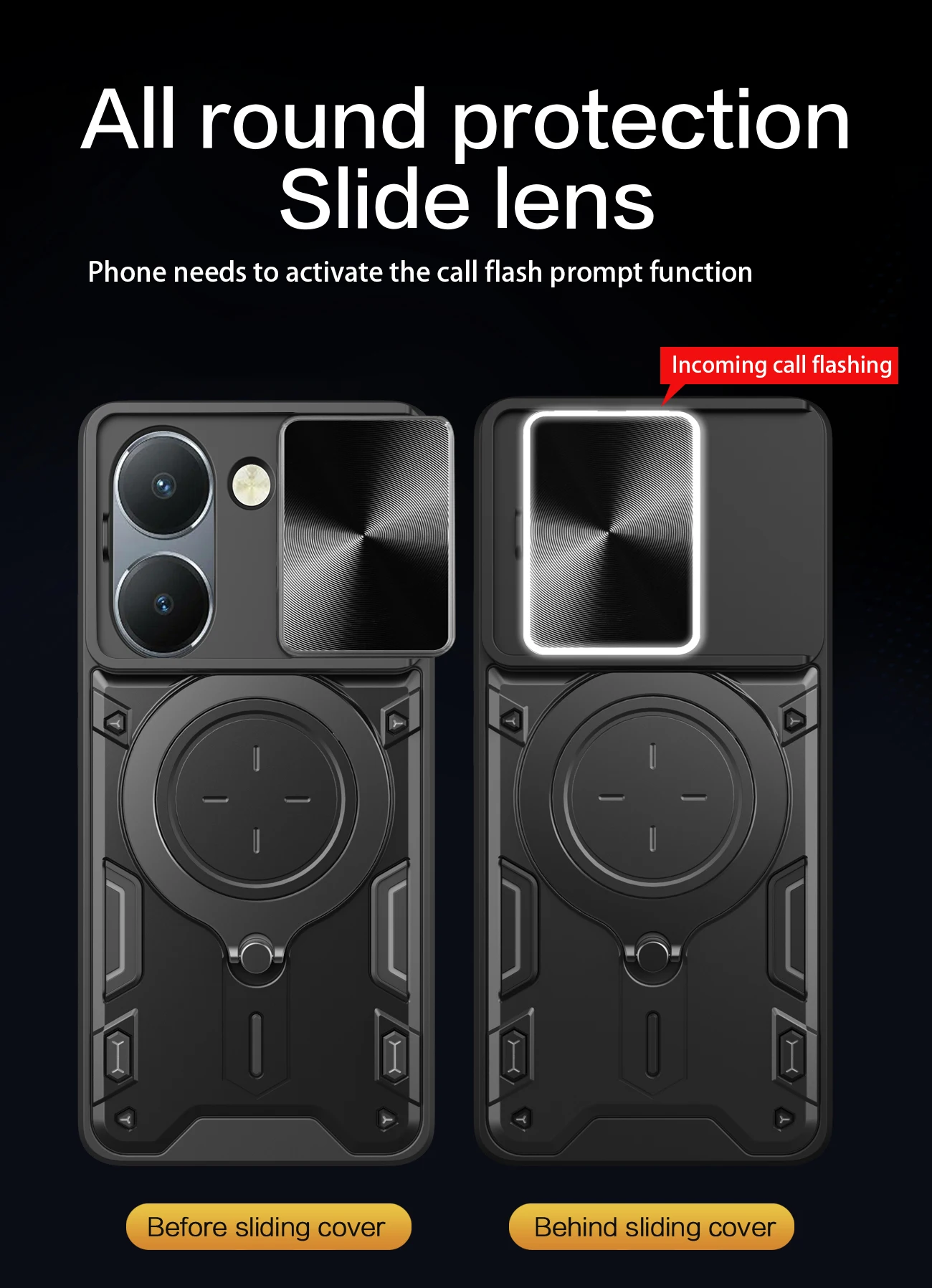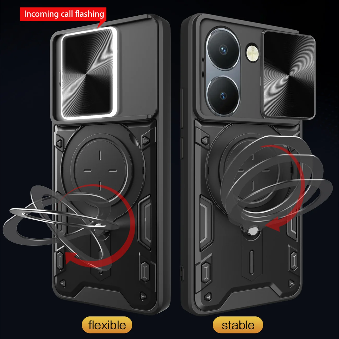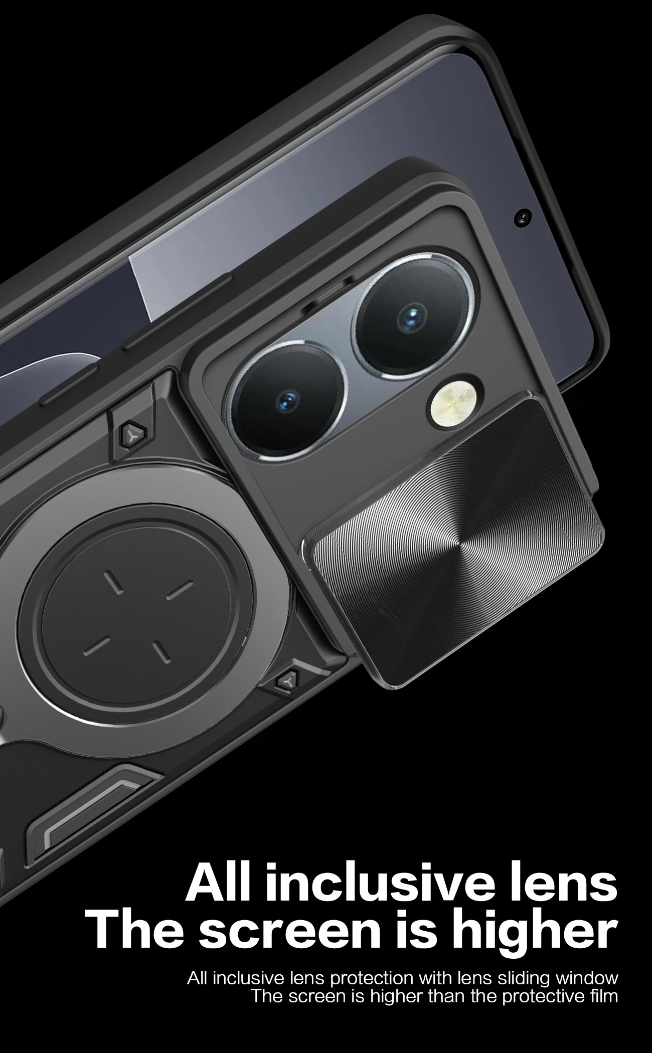 Comprar Funda de lente de cámara deslizante para VIVO Y200 Y78 Y77 Y76 Y55 Y36 4G 5GArmor cubierta trasera de anillo de Metal híbrido para Y35 Y33 Y30 Y27 Y22 Y21 Y20