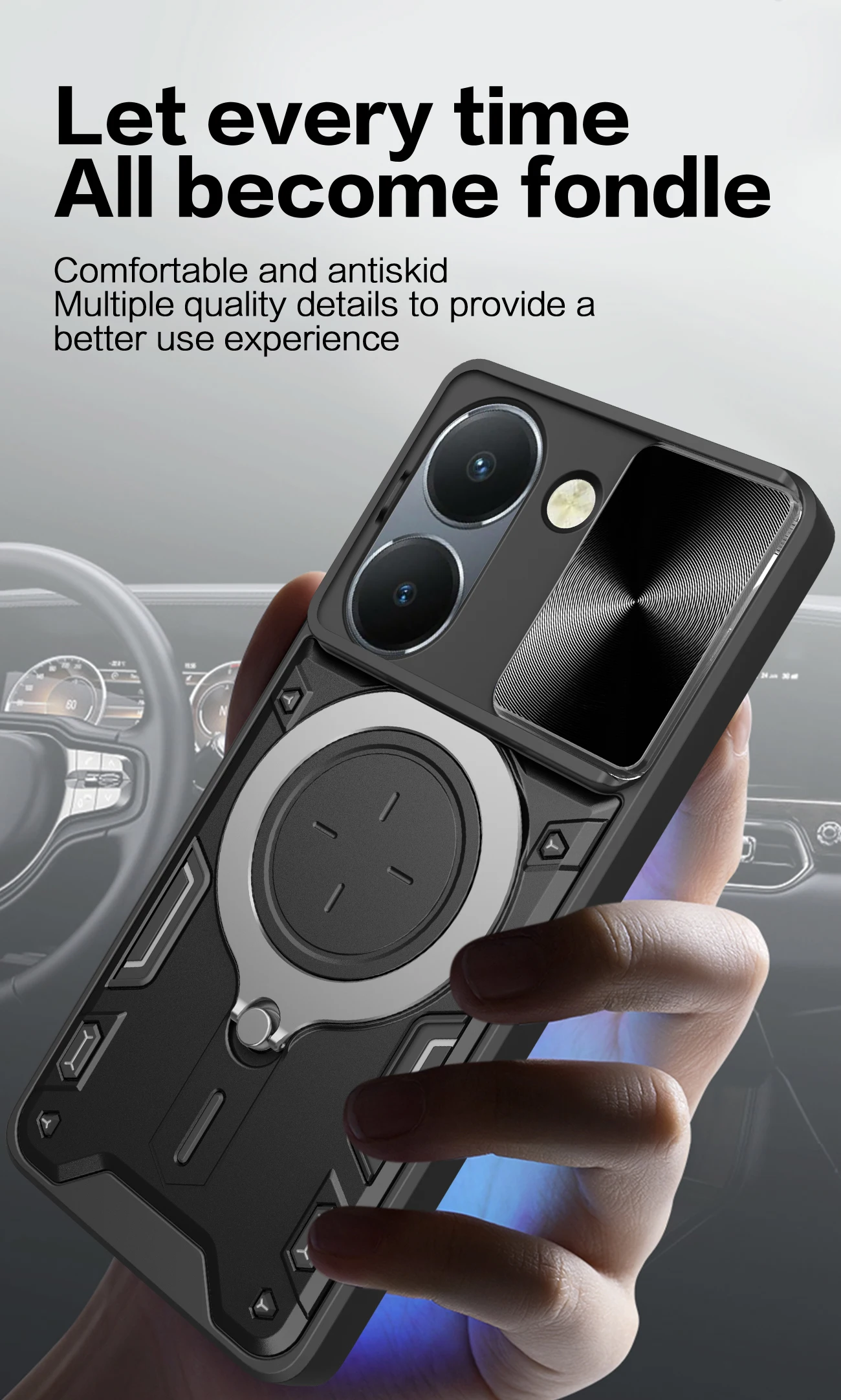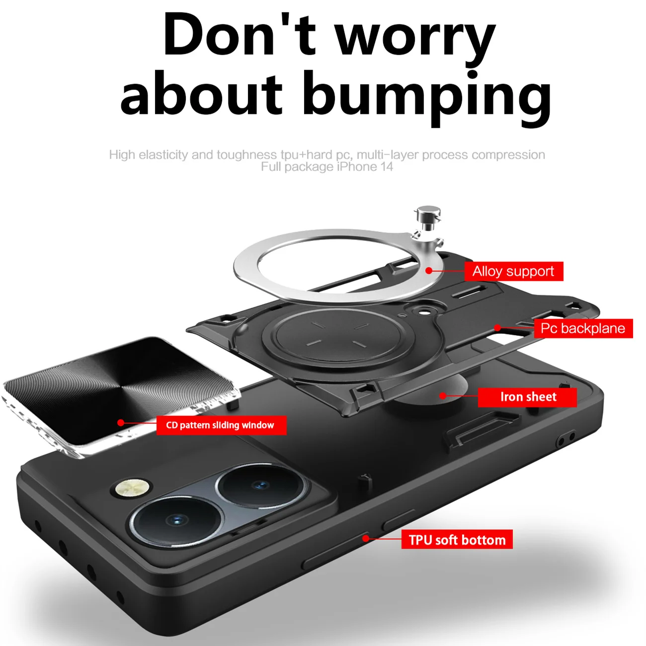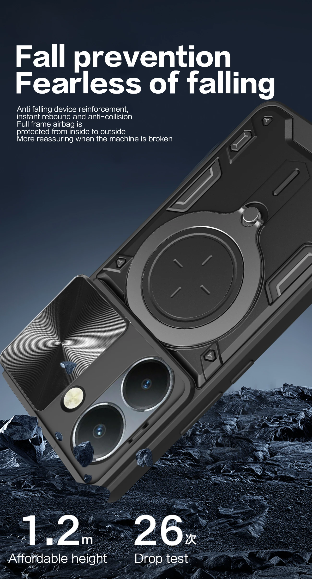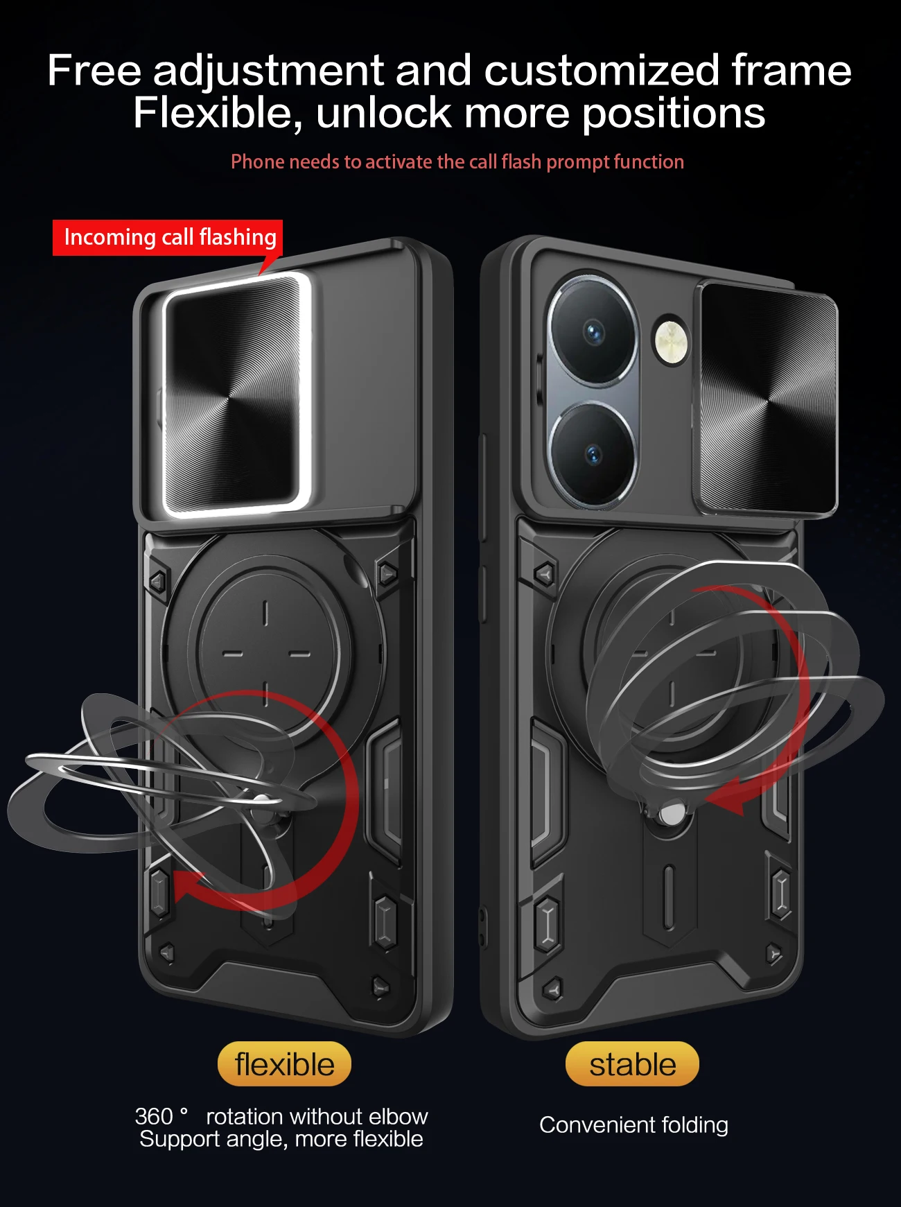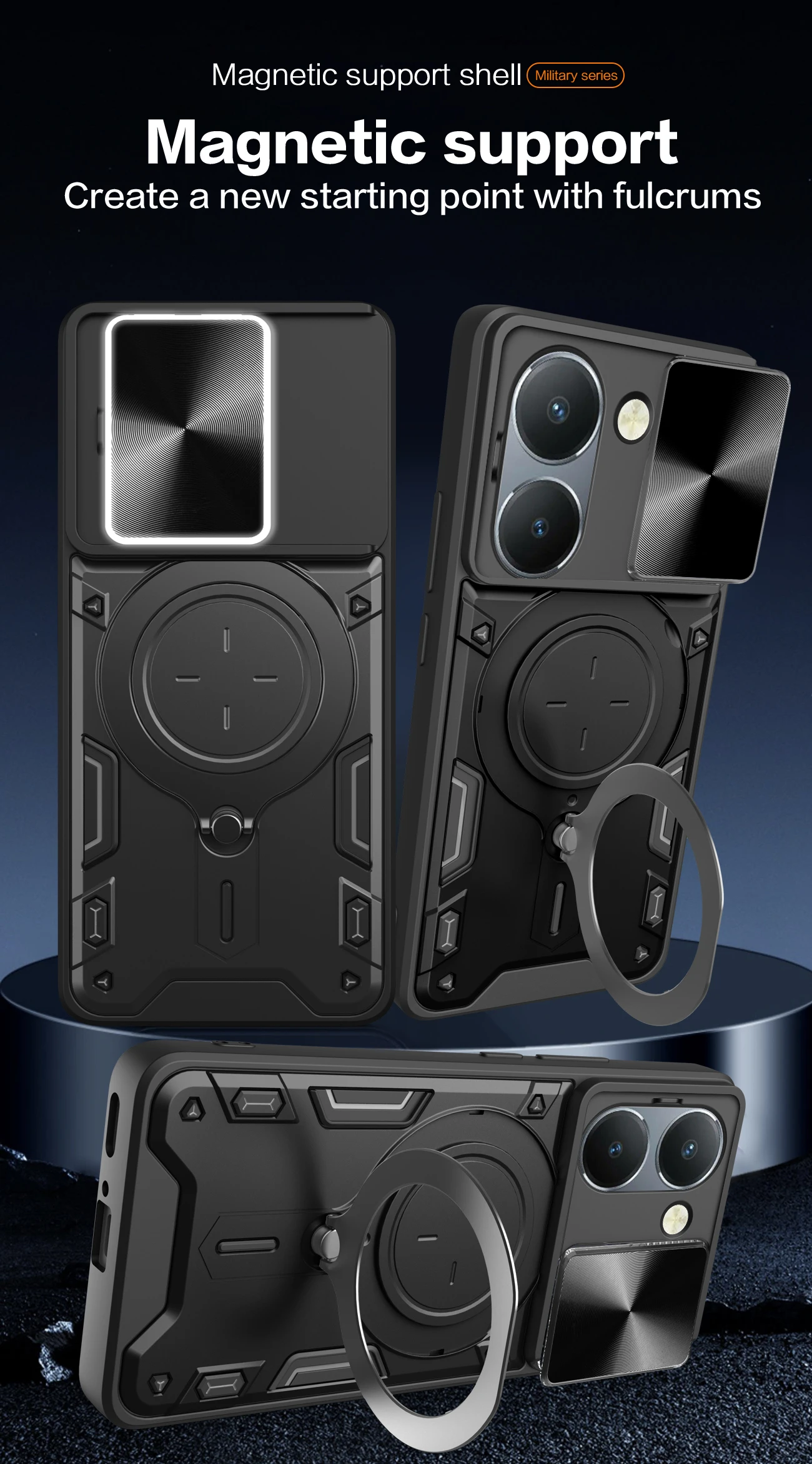 Comprar Funda de lente de cámara deslizante para VIVO Y200 Y78 Y77 Y76 Y55 Y36 4G 5GArmor cubierta trasera de anillo de Metal híbrido para Y35 Y33 Y30 Y27 Y22 Y21 Y20