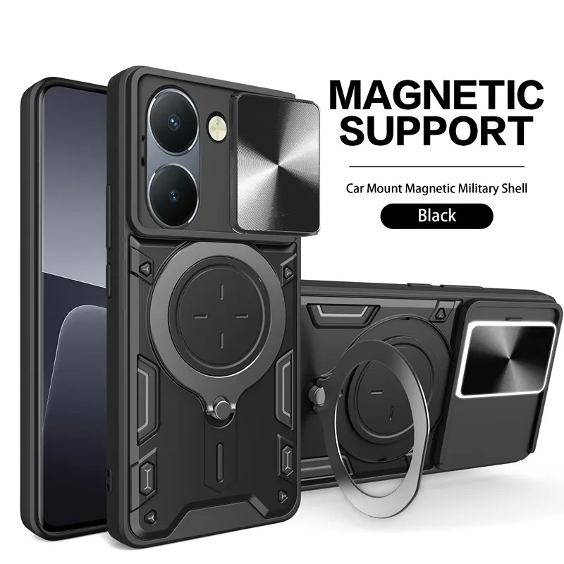Funda de lente de cámara deslizante para VIVO Y200 Y78 Y77 Y76 Y55 Y36 4G 5GArmor cubierta trasera de anillo de Metal híbrido para Y35 Y33 Y30 Y27 Y22 Y21 Y20
