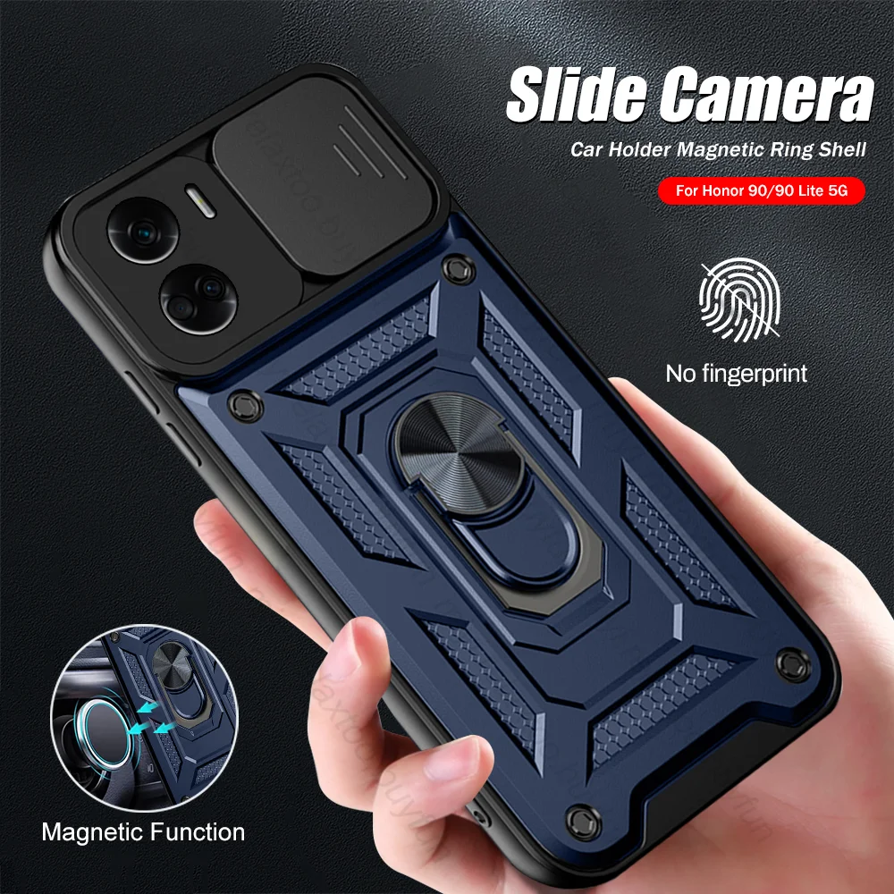 Comprar Funda de lente deslizante a prueba de golpes para Honor 90 Honor 90 Lite 5G, anillo de soporte magnético, cubierta protectora, Honar Honer 90 Lite Light