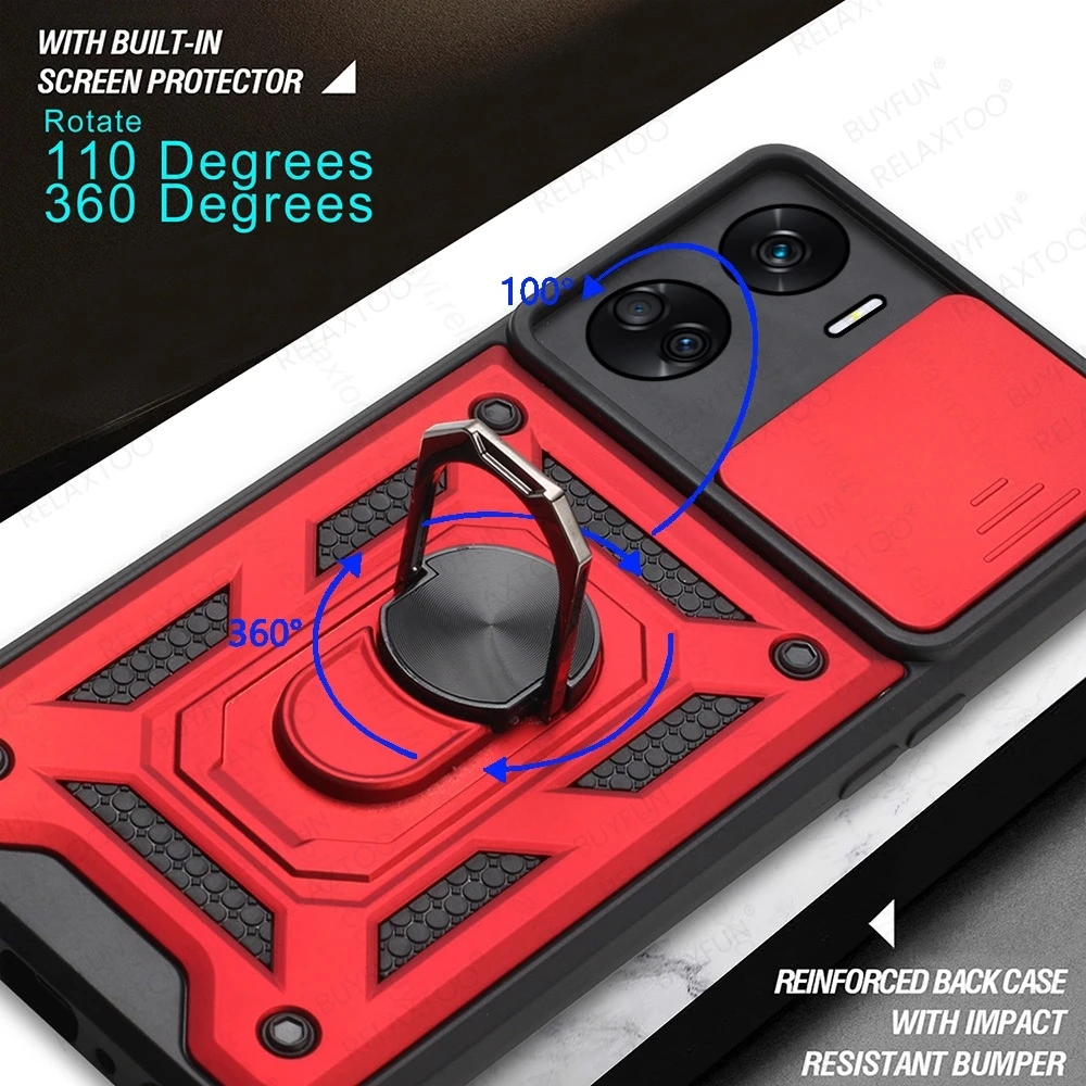 Armor a prueba de golpes Slider Lens Case para Honor90 Honor 90 Lite 5G Soporte magnético Anillo Protect Shell Cover Honar Honer 90 Lite Light