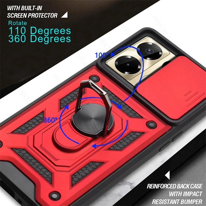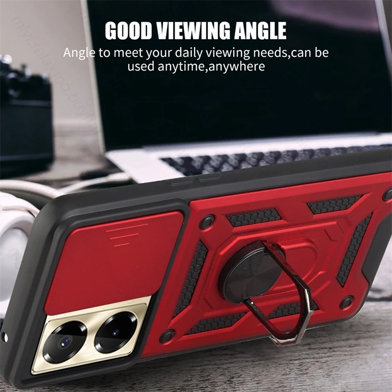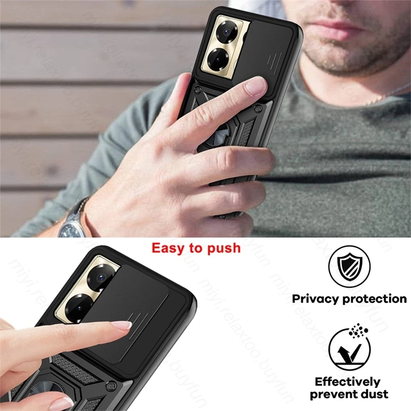 Comprar Funda de lente deslizante de armadura a prueba de golpes para Infinix Note 40 Pro 4G, soporte de anillo magnético, cubierta de soporte en Note40, No 40 Pro + Pro Plus 5G