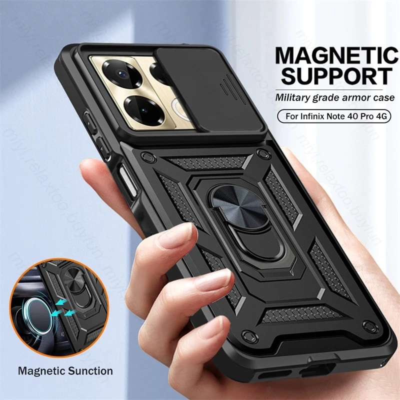 Estuche de lente deslizante de armadura a prueba de golpes para Infinix Note 40 Pro 4G soporte de anillo magnético cubierta de soporte en Infini In Finix Note40 Not 40 Pro + Pro Plus 5G 2024
