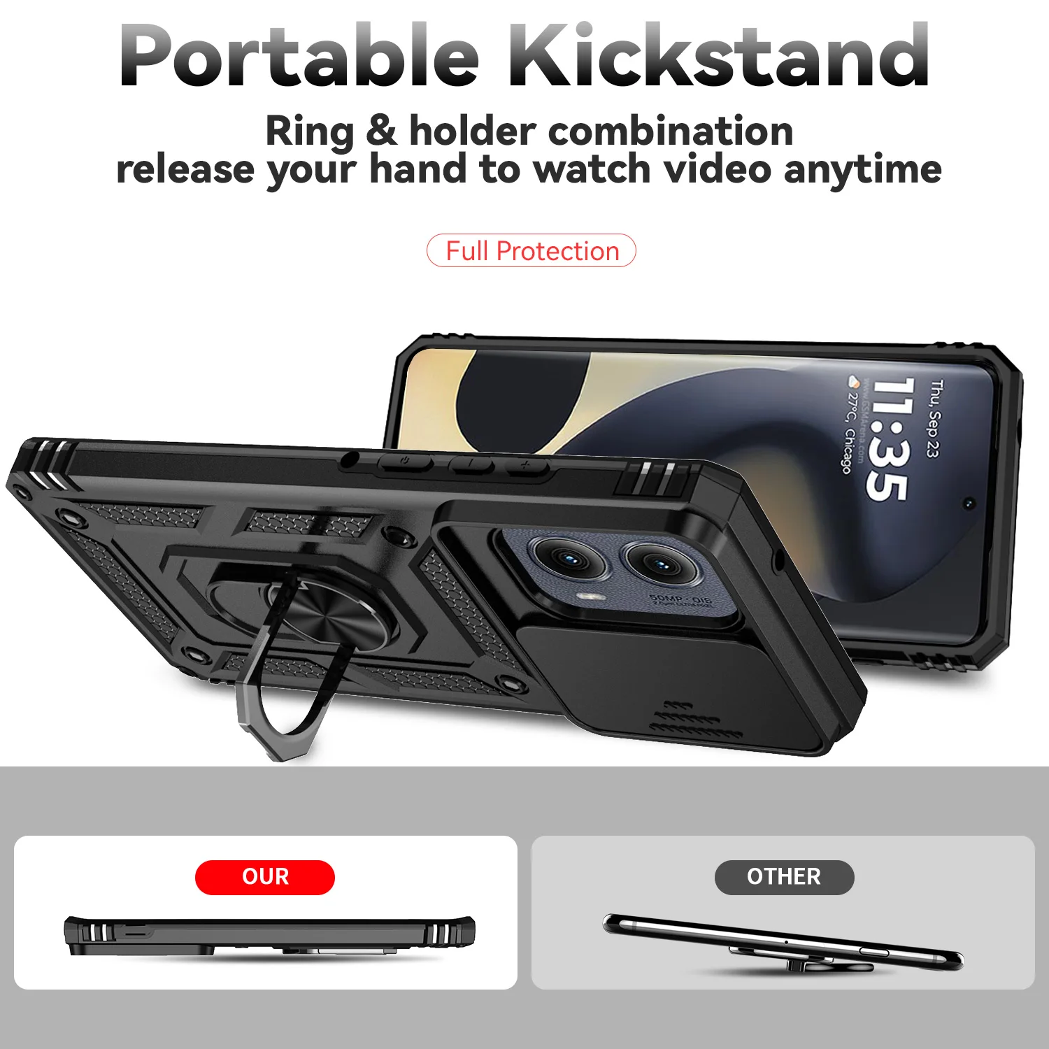 Comprar Funda de lente deslizante para Motorola Edge 2024, cubierta de Moto Edge 2024, soporte magnético de grado militar, parachoques trasero, Motorola Edge