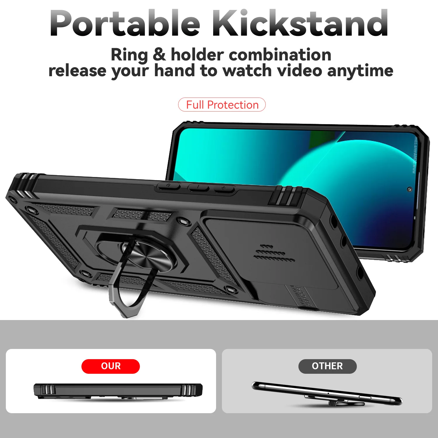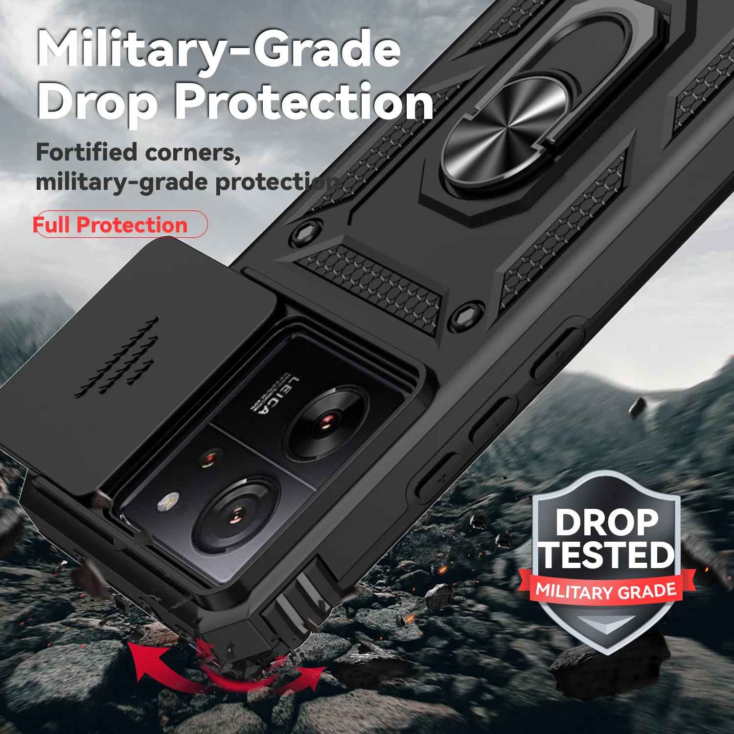 Comprar Funda de lente deslizante para Xiaomi 13T Pro, soporte de anillo de grado militar, ventana de empuje, parachoques trasero, 13T