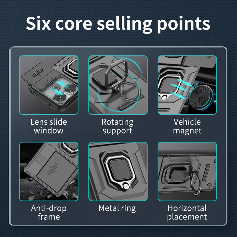 Comprar Funda de lente deslizante para Xiaomi Redmi Note 13 13C Redmi13, funda protectora a prueba de golpes para POCO C65 F5 X5 F6 X6 M6 Pro 4G 5G