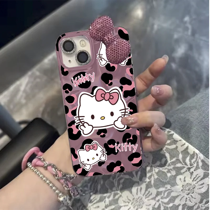 Funda de leopardo con lazo de Hello kitty 3D para OPPO Reno 14 14F 13 12 FS 13F 12F 11F 11 10 Pro 5G 7 4G 6 5 Find X3 Lite cubierta de teléfono de PC - imagen 1