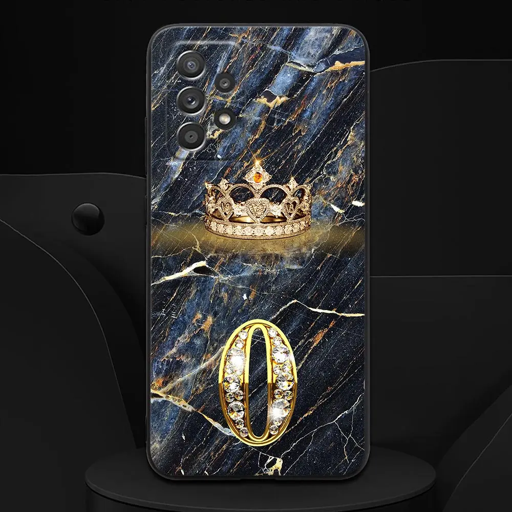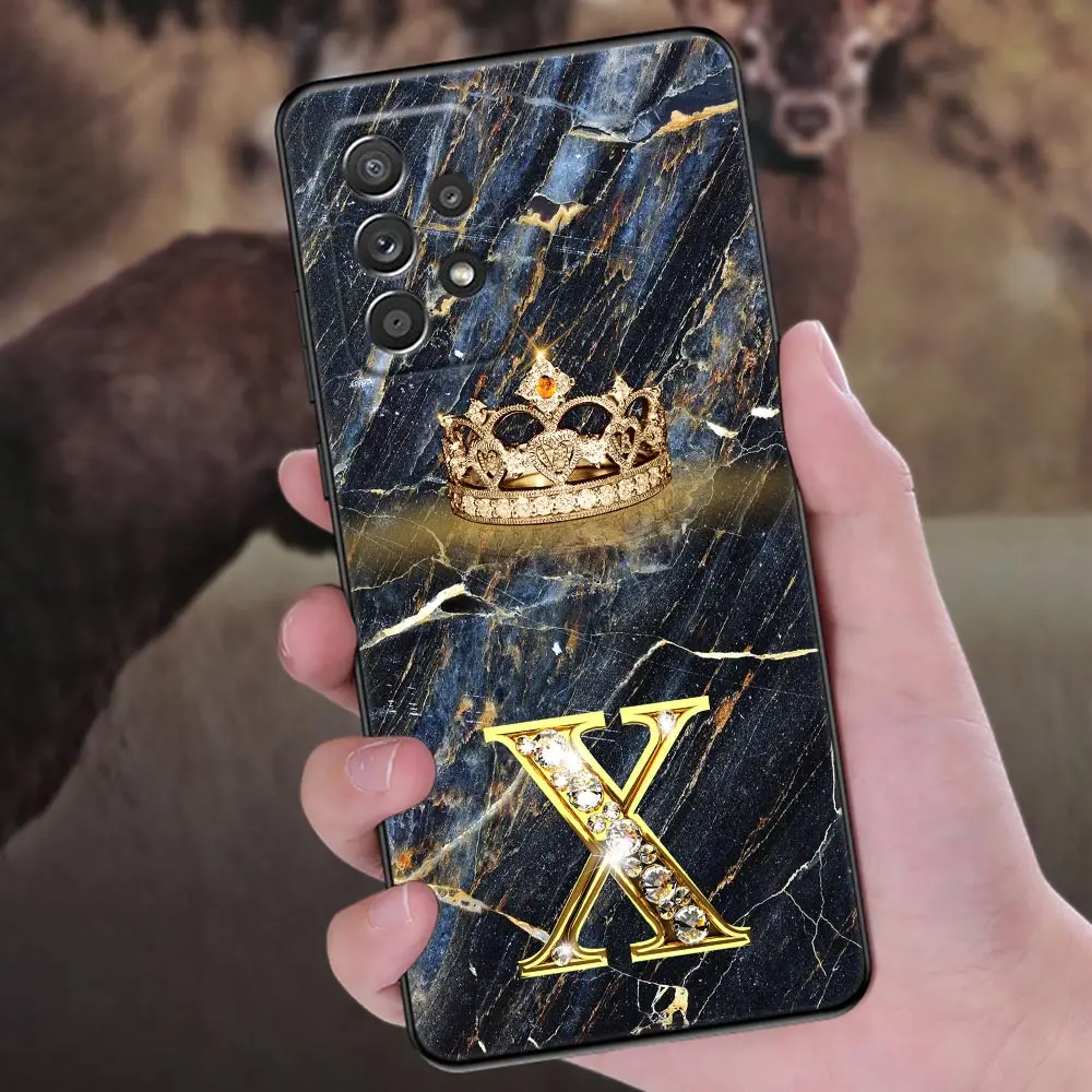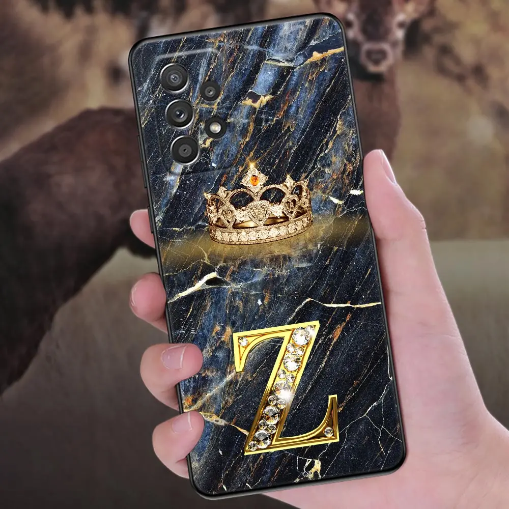 Moda mármol corona letra inicial R Q T funda de teléfono Galaxy A53 5G funda para Samsung A54 A52 A52S A51 A71 A73 A72 A41 A42 A91 A31 A32 A33 fundas traseras