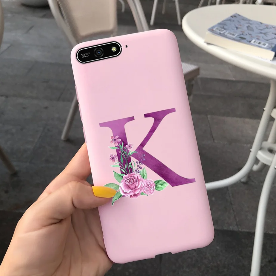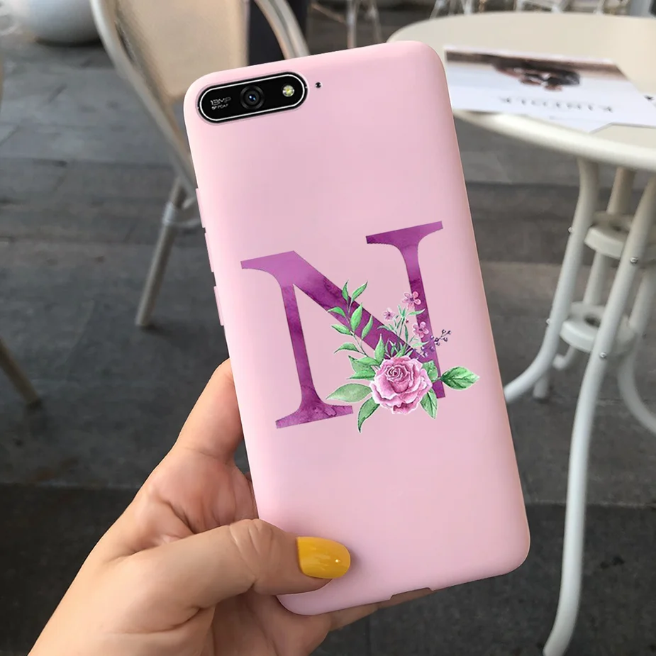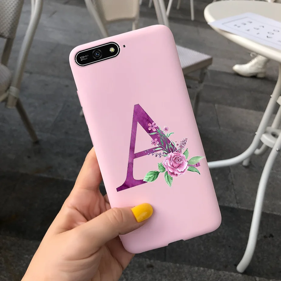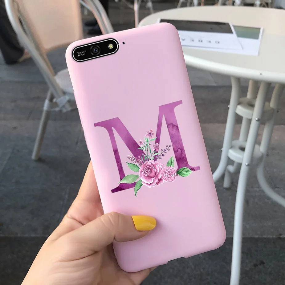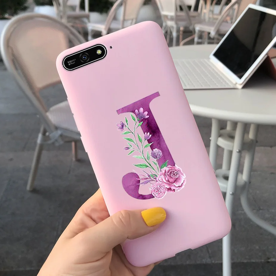 Para Huawei Y6 2018 Funda con letras bonitas suave funda delgada Rosa negro fundas de teléfono para Huawei Y6 Prime 2018 Y 6 2018 Funda parachoques