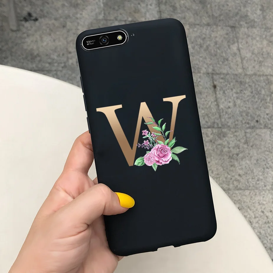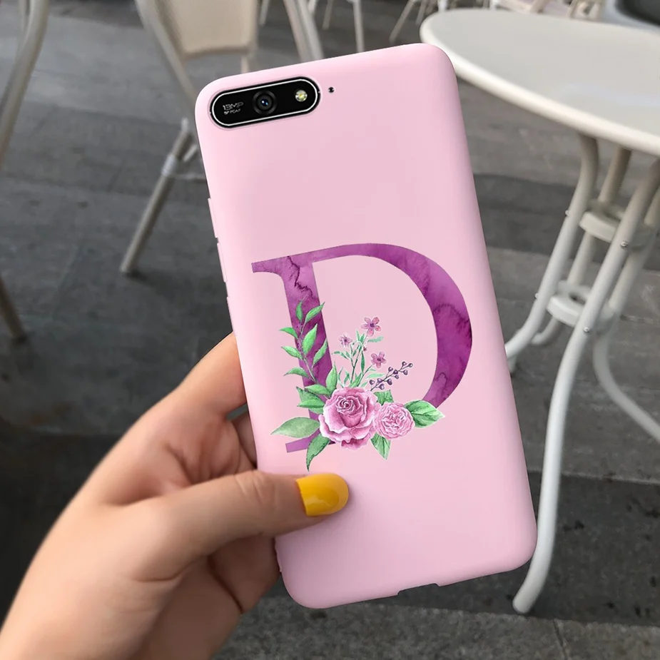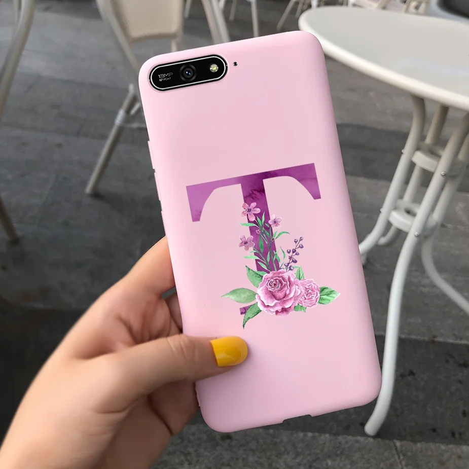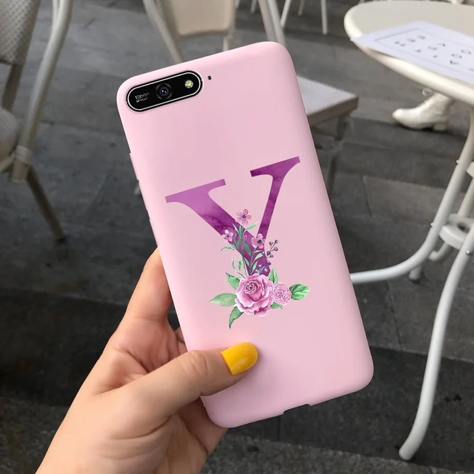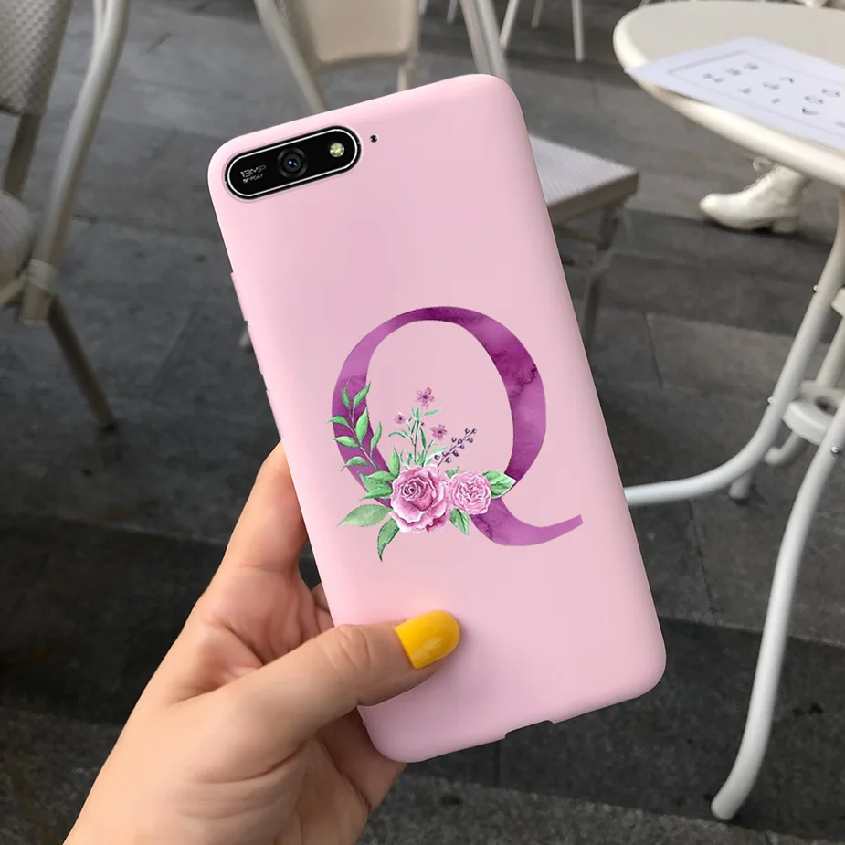 Para Huawei Y6 2018 Funda con letras bonitas suave funda delgada Rosa negro fundas de teléfono para Huawei Y6 Prime 2018 Y 6 2018 Funda parachoques