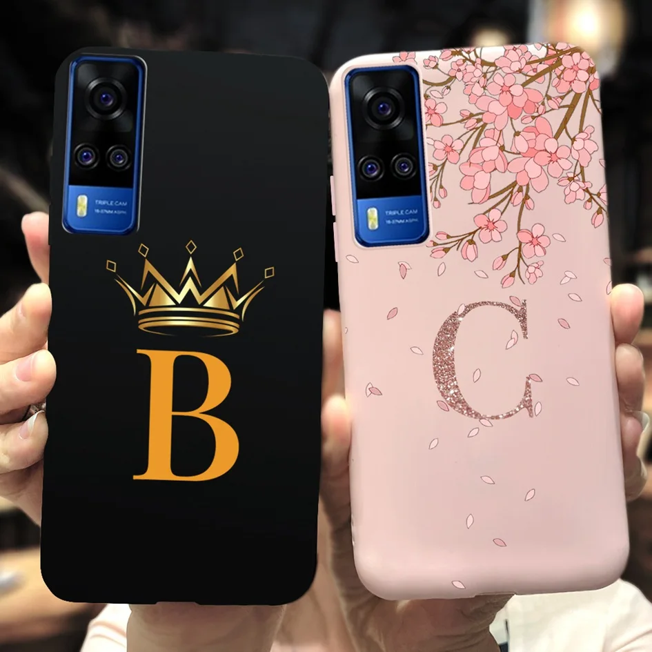 Para Vivo Y51 2020 V2030 Funda encantadora corona letras suave Capa contraportada para Vivo Y31 2020 V2036 Coque Vivo Y53s 4G Y33 2022 Funda