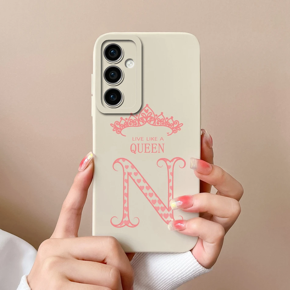 Comprar Funda con letras Crown A-Z para Samsung A35, A55, 5G, protección de cámara mejorada, funda de silicona líquida suave para Samsung Galaxy A 35 A 55