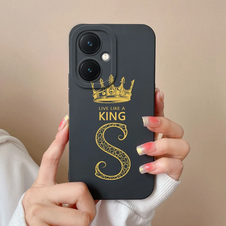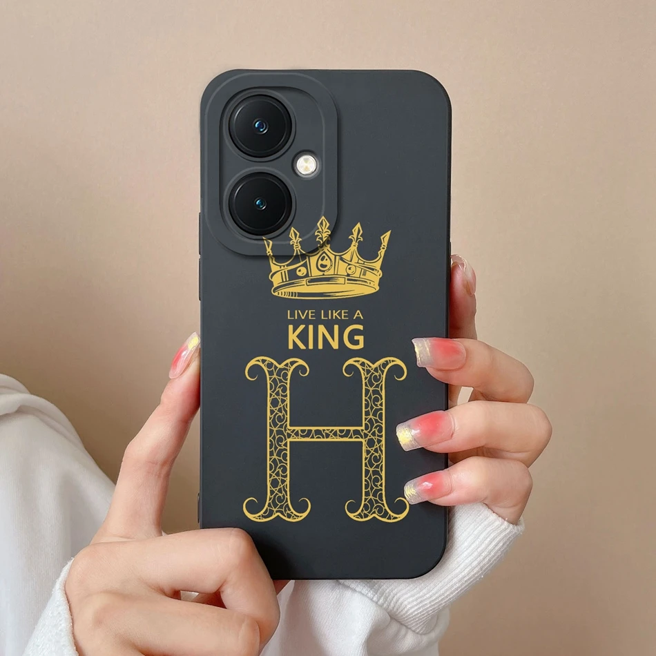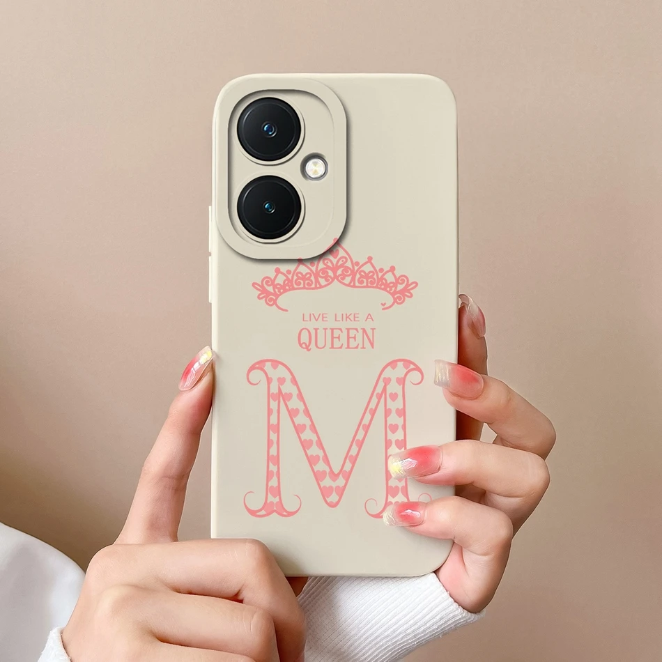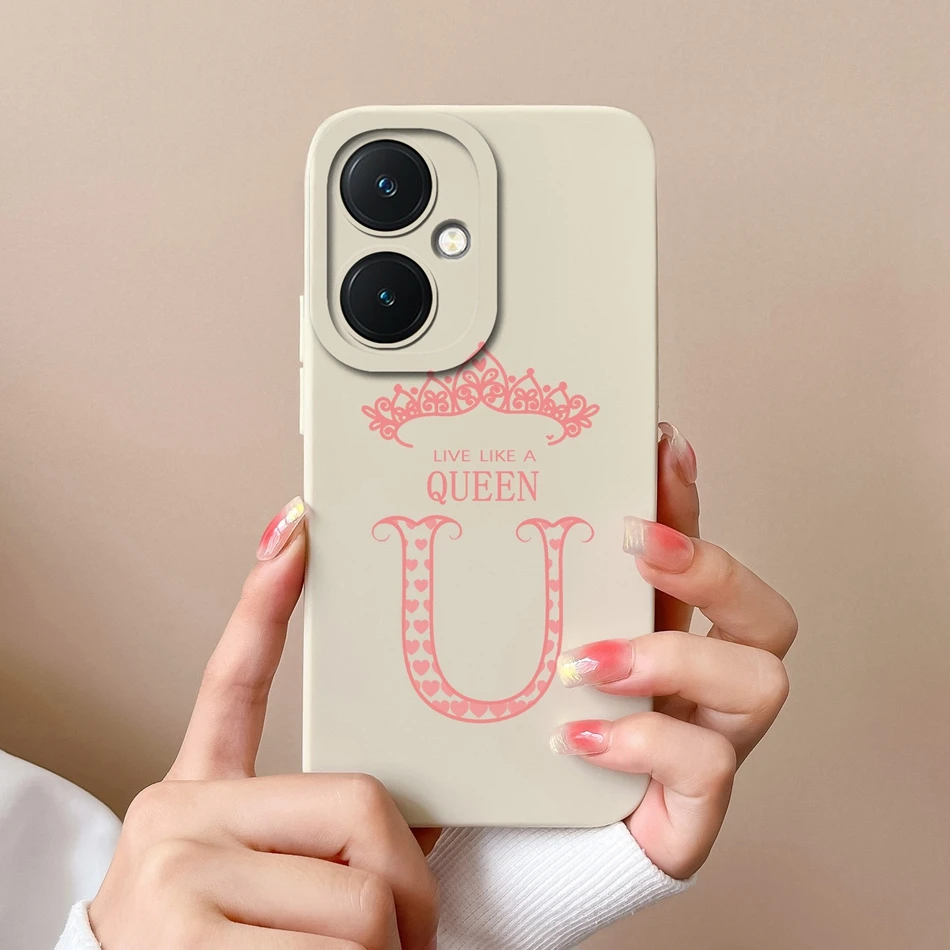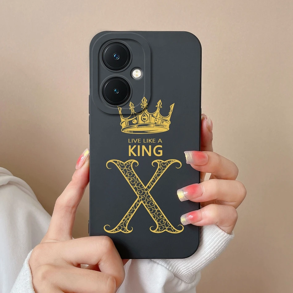 Comprar Funda con letras Crown A-Z para Vivo Y27 4G 5G, protección de cámara mejorada, silicona líquida suave, VivoY27 Simple para cubierta trasera, regalo