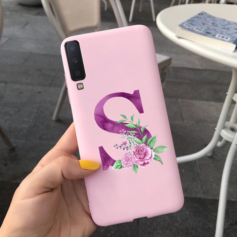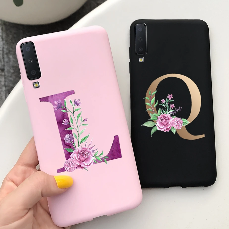Funda con letras del alfabeto para Samsung Galaxy A7 2018, funda trasera suave y delgada para Samsung A 72018 A750F, fundas para teléfono, parachoques