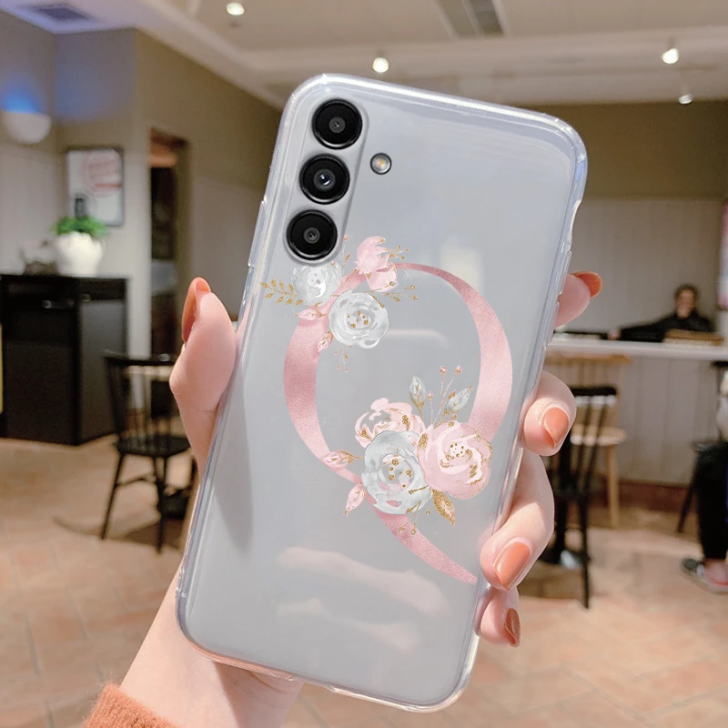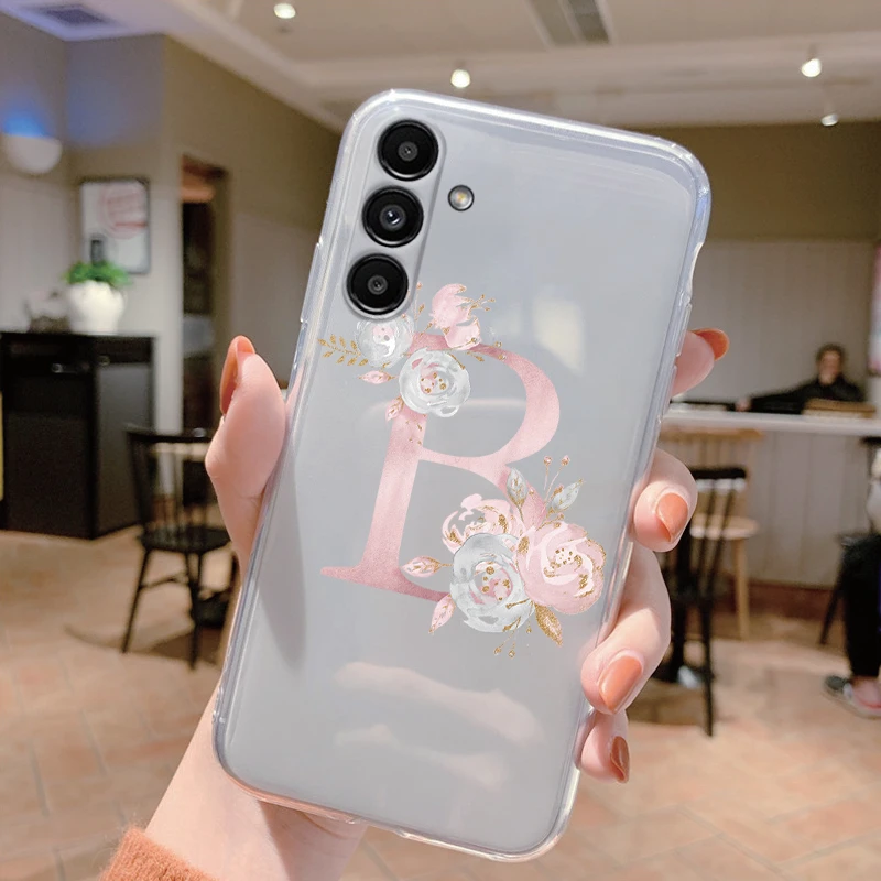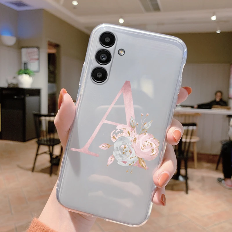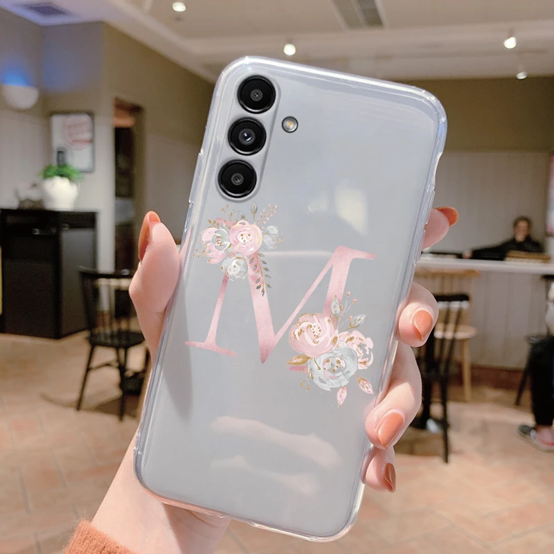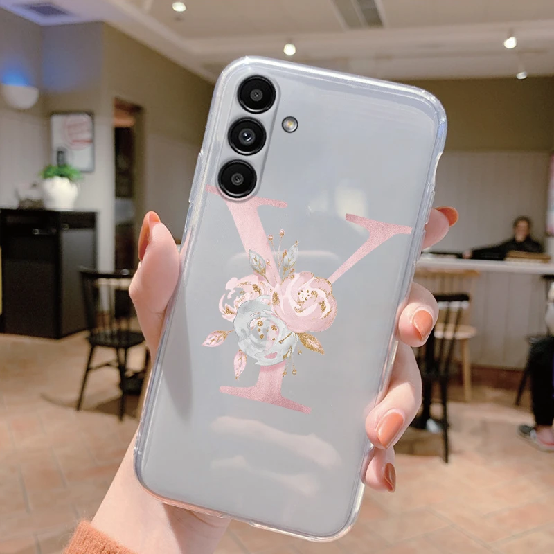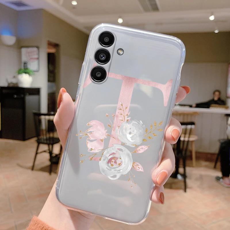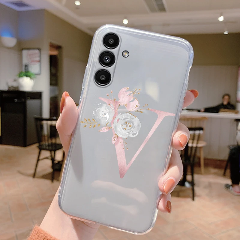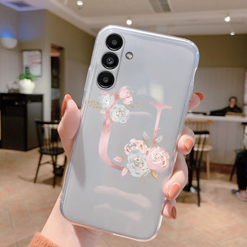 Comprar Funda con letras iniciales para Samsung Galaxy A54 5G, funda transparente de silicona suave con flores rosas, bolsas para Samsung A 54 Galaxya54