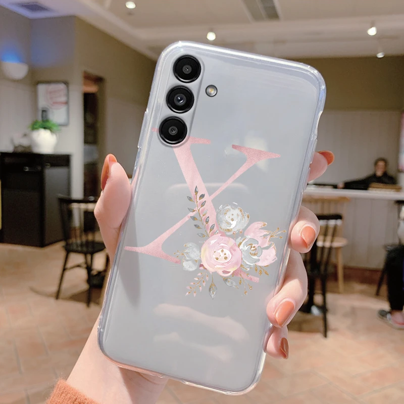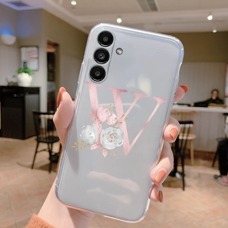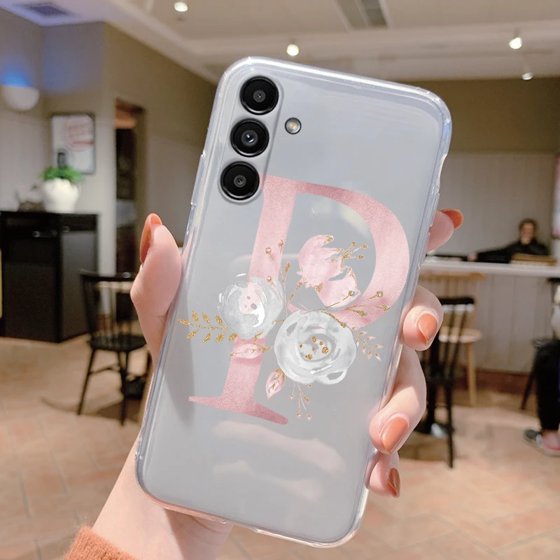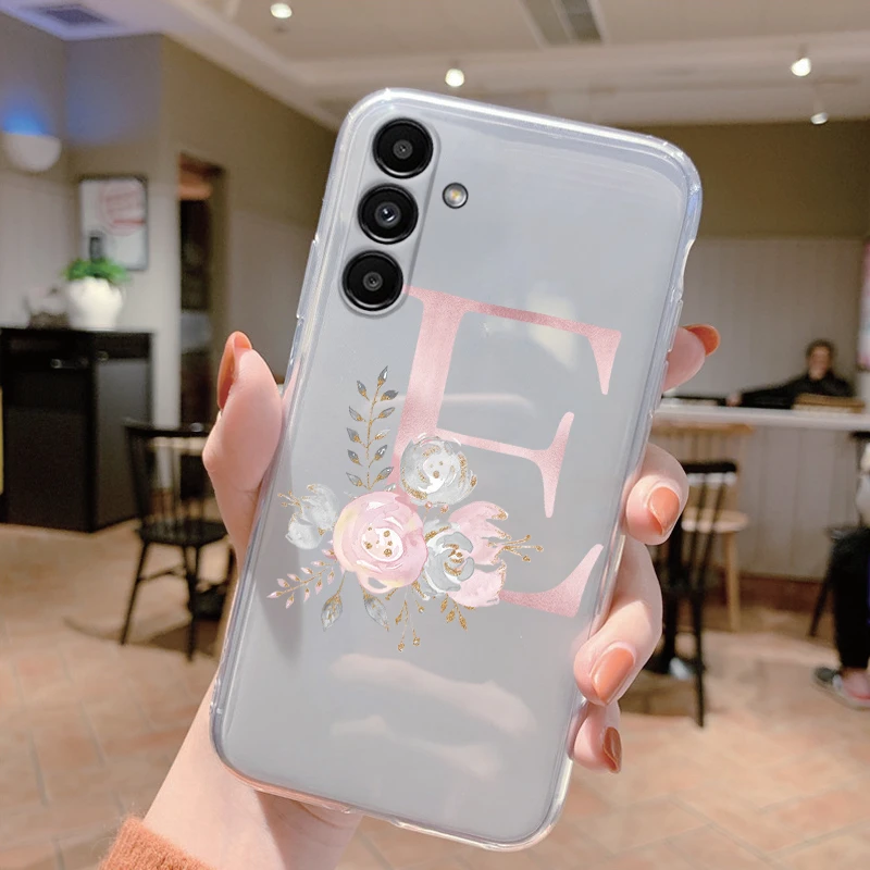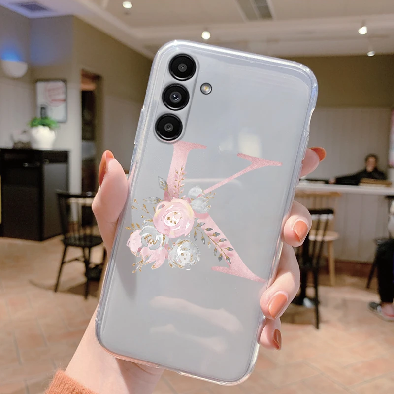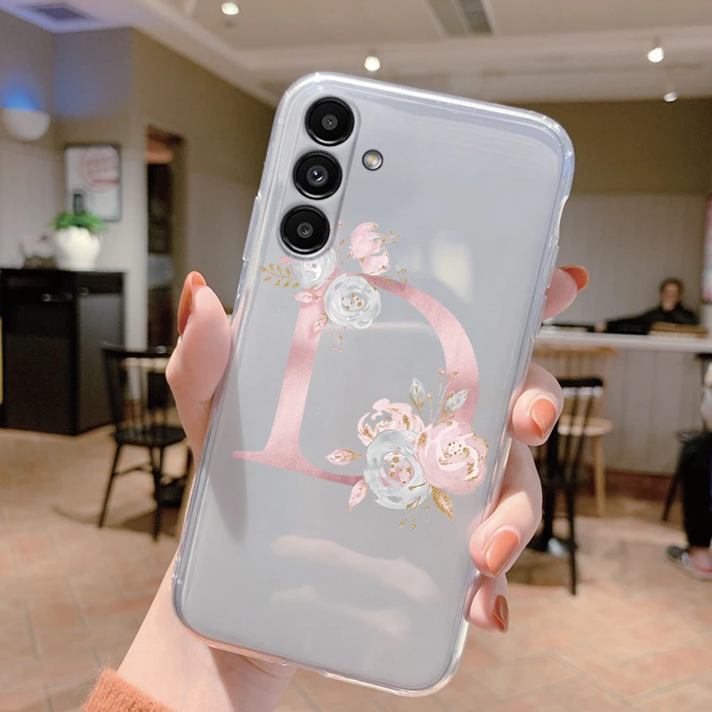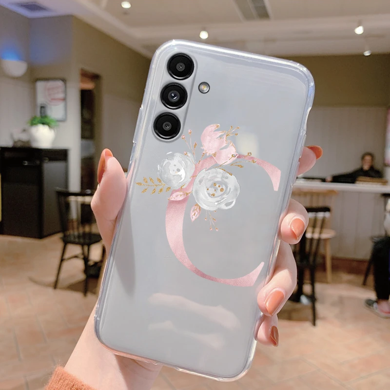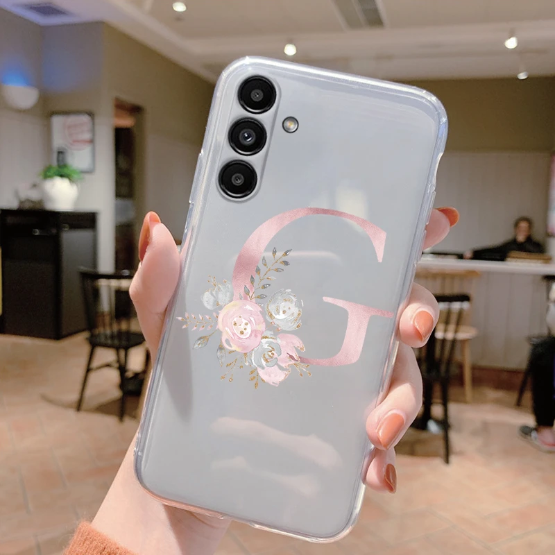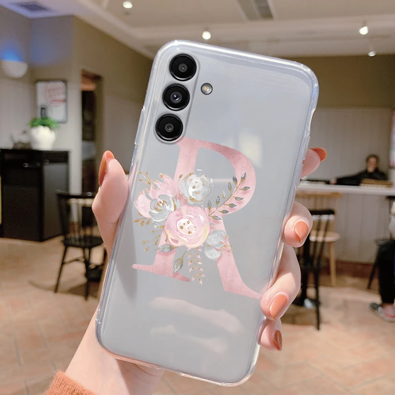 Comprar Funda con letras iniciales para Samsung Galaxy A54 5G, funda transparente de silicona suave con flores rosas, bolsas para Samsung A 54 Galaxya54