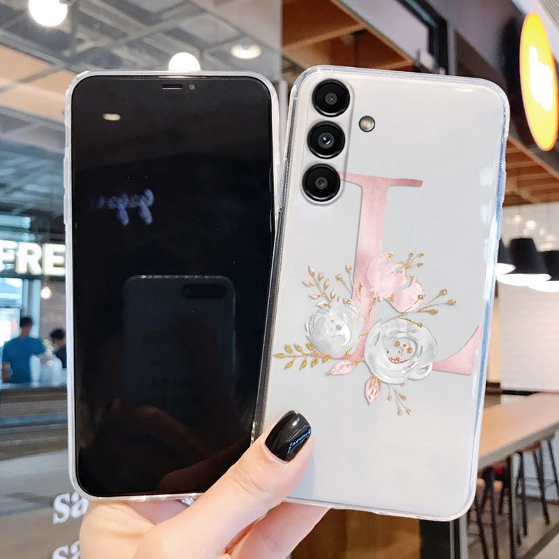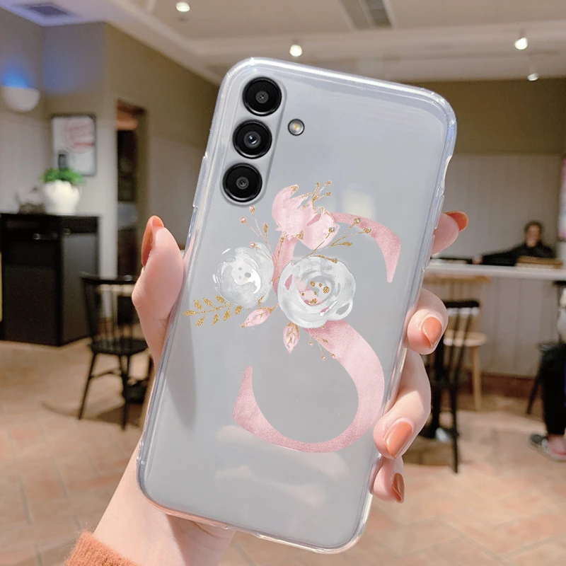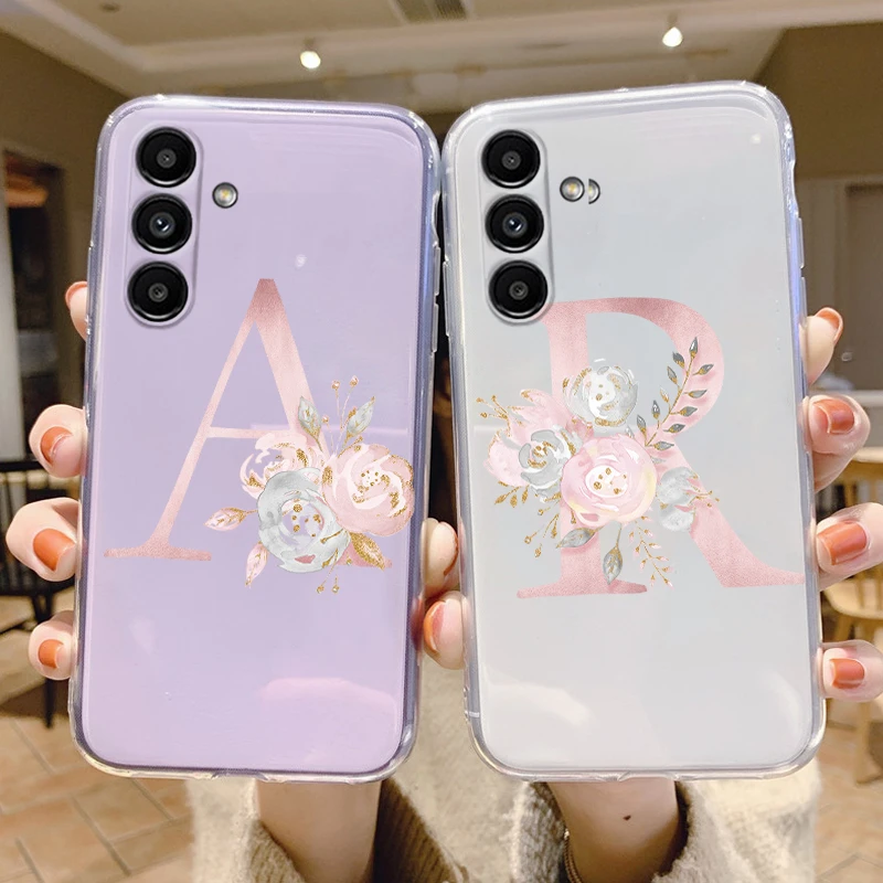 Comprar Funda con letras iniciales para Samsung Galaxy A54 5G, funda transparente de silicona suave con flores rosas, bolsas para Samsung A 54 Galaxya54