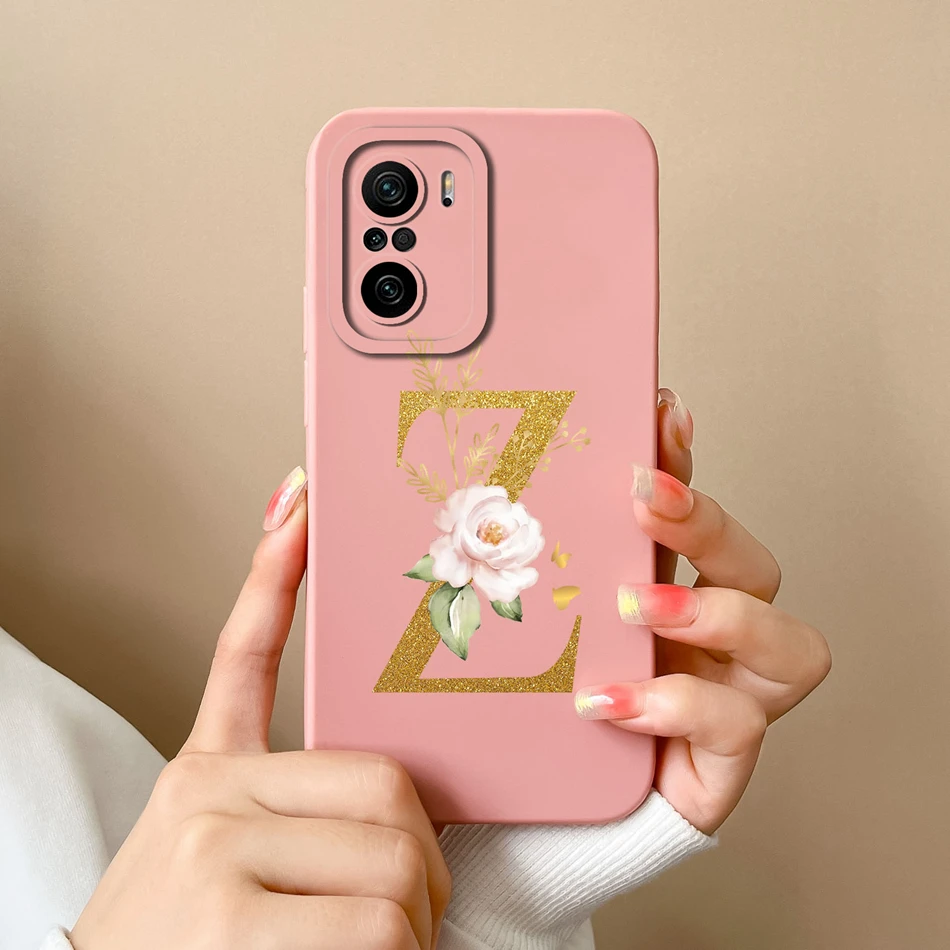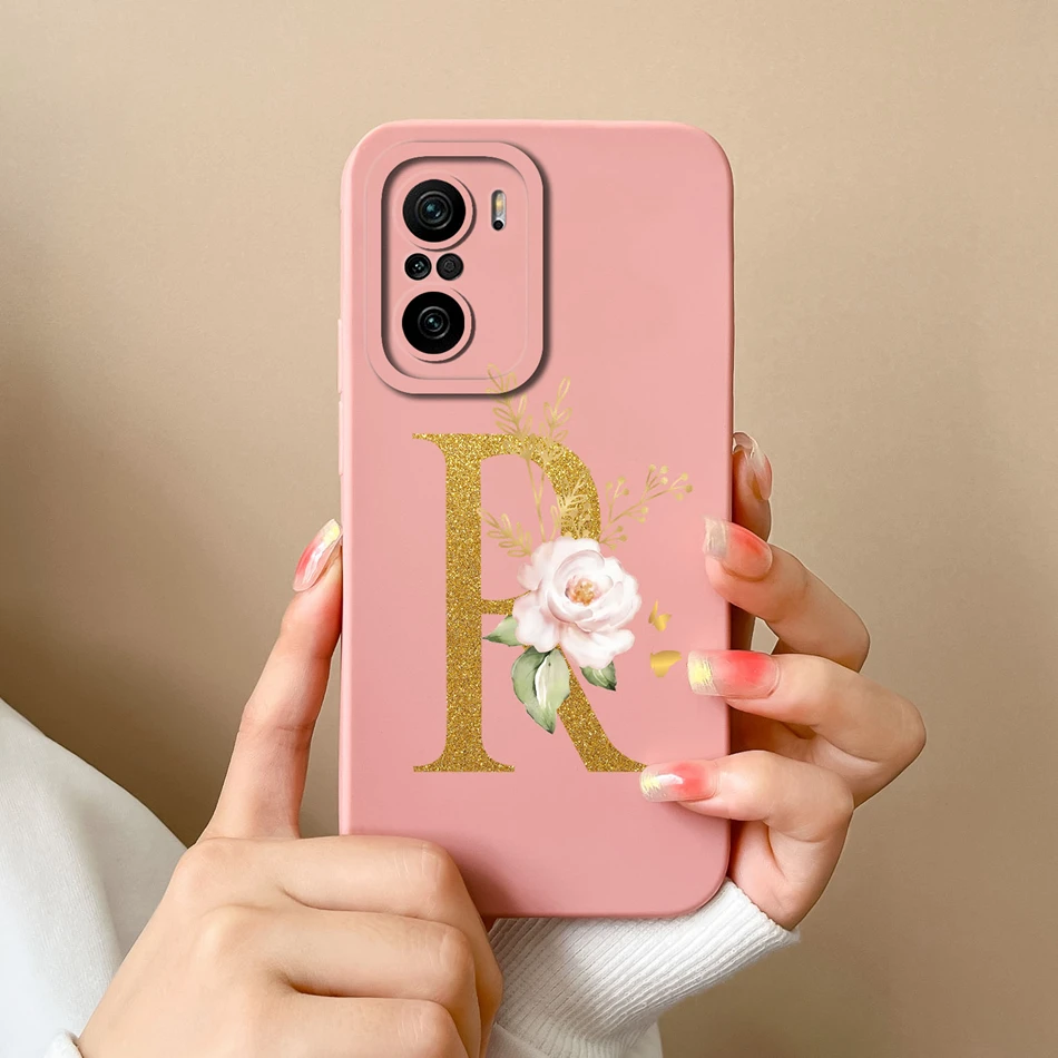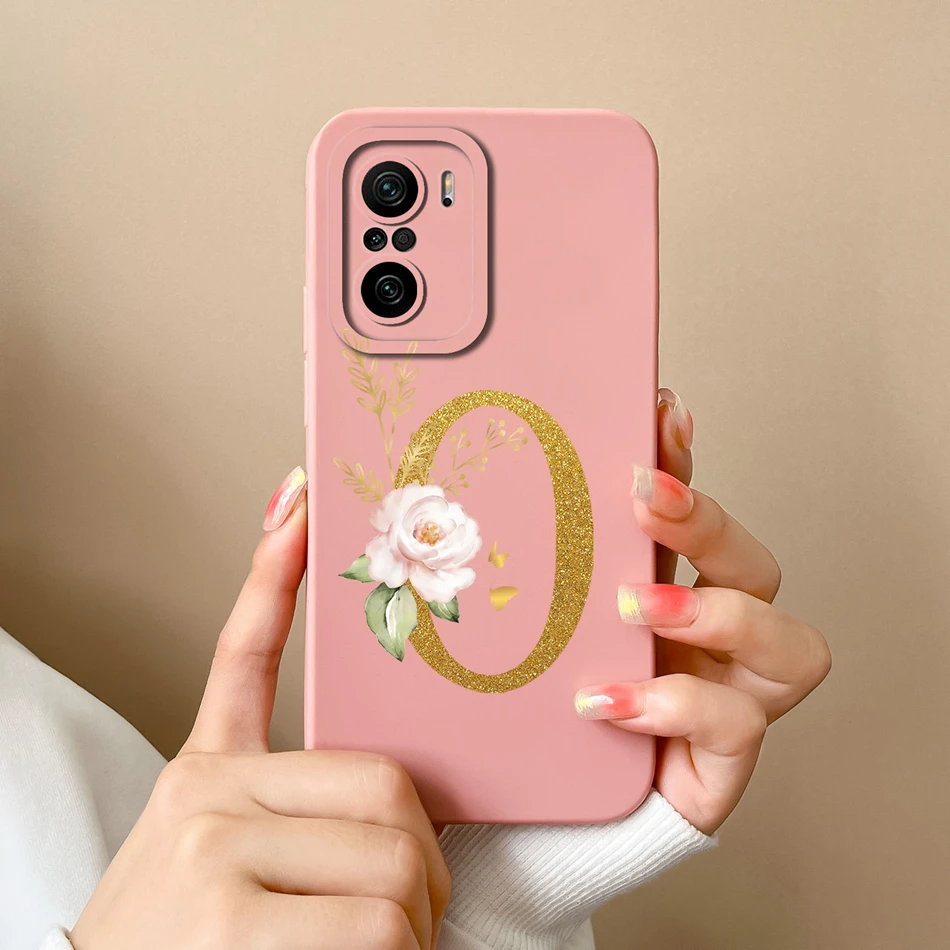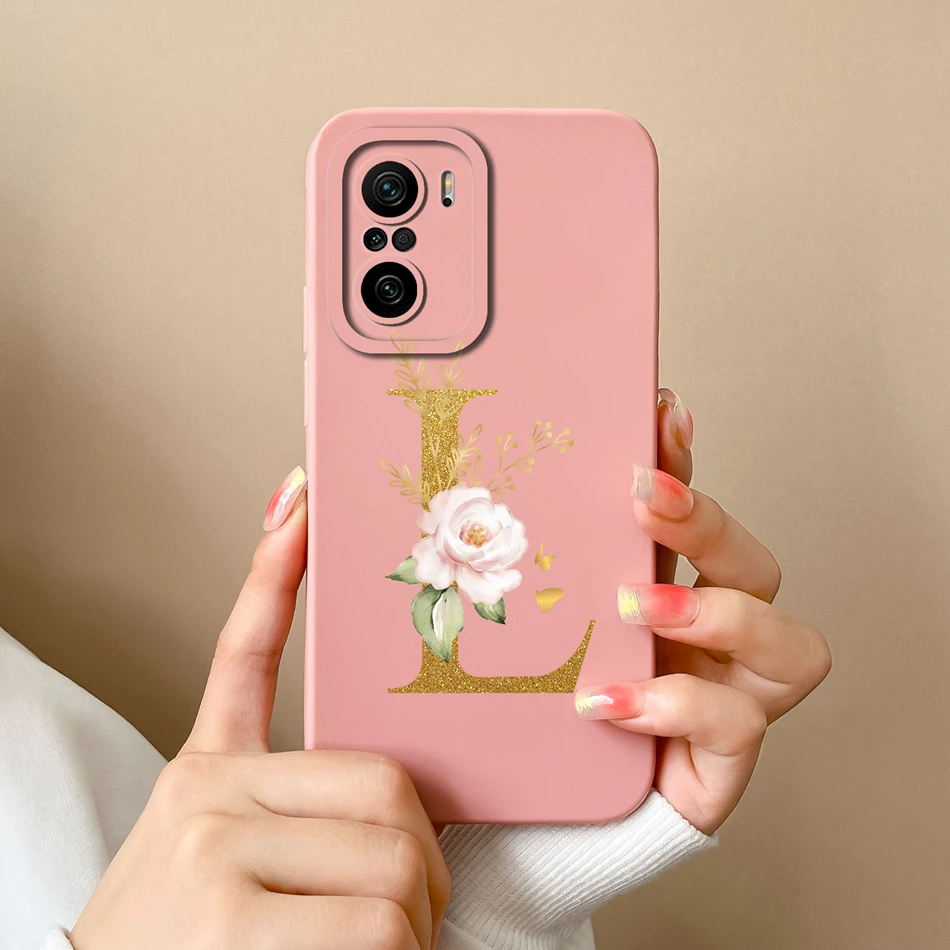 Funda con letras para Redmi K40 Gaming, funda protectora de cámara de silicona líquida suave negra y rosa para Redmi K40 Pro K40S, Funda de parachoques Capa