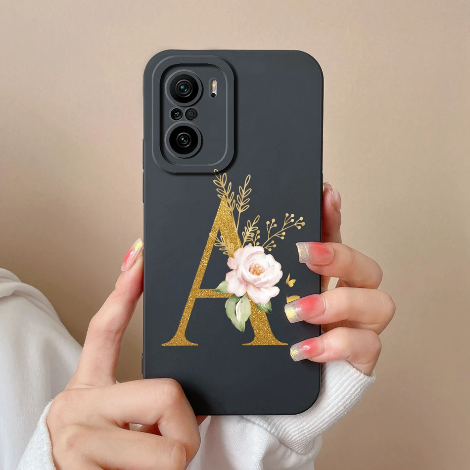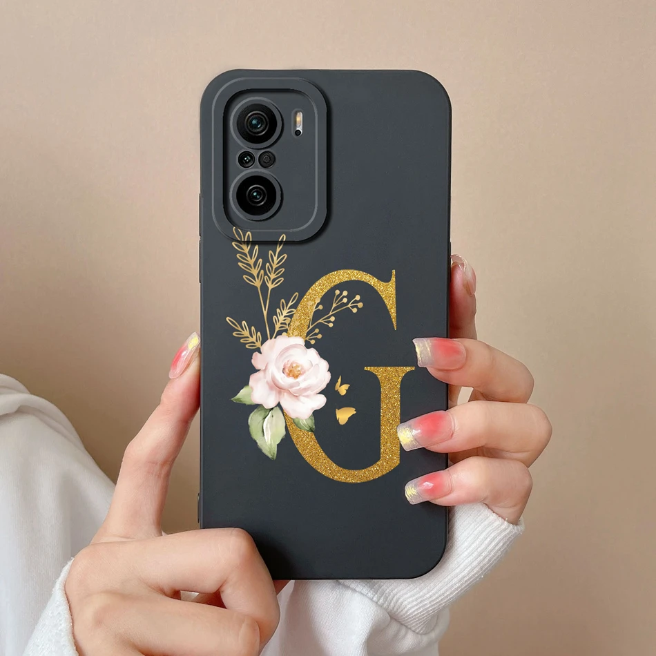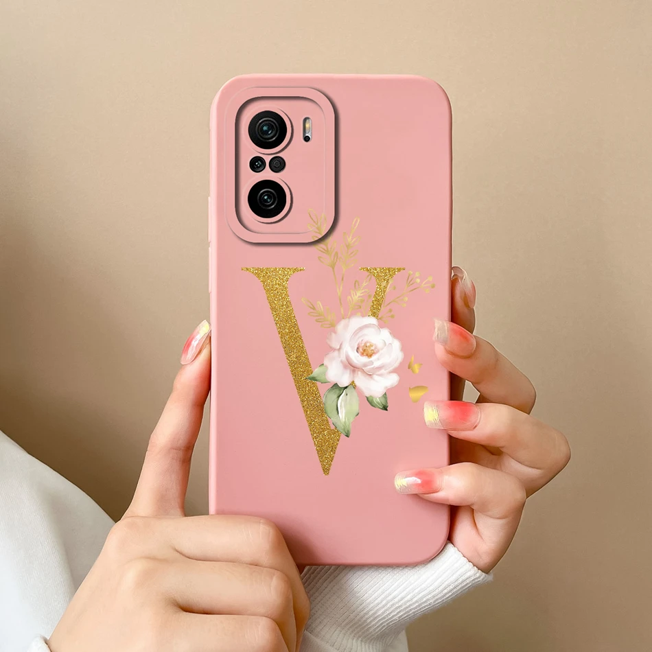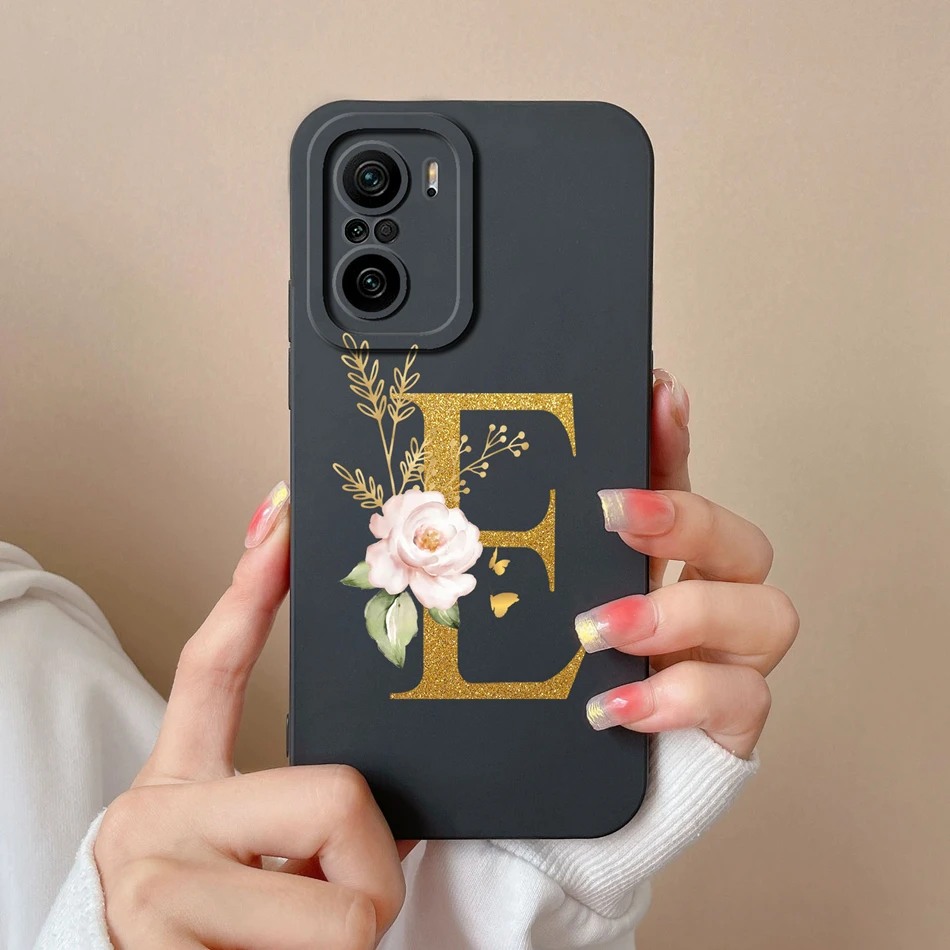 Funda con letras para Redmi K40 Gaming, funda protectora de cámara de silicona líquida suave negra y rosa para Redmi K40 Pro K40S, Funda de parachoques Capa