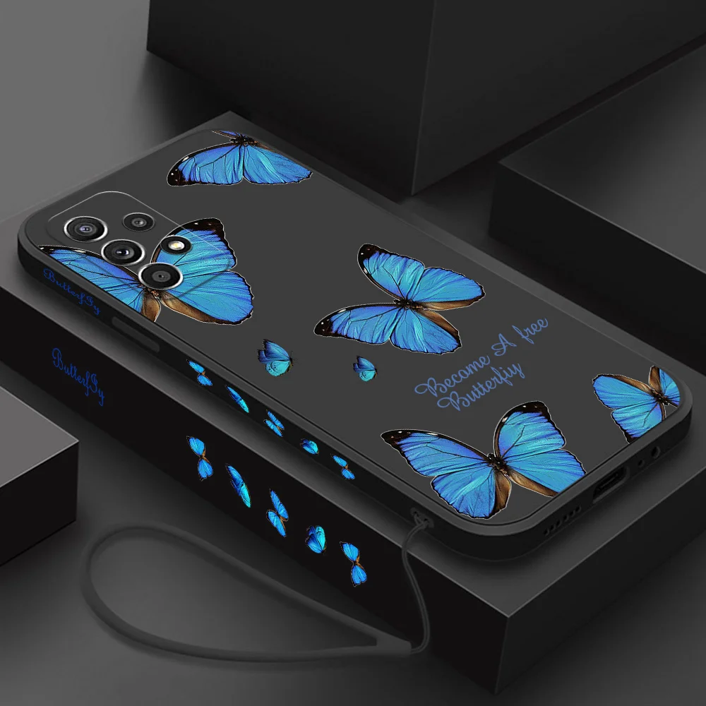 Funda líquida de mariposa para Samsung Galaxy A53 A52 A52S A54 A34 5G A32 4G, funda de silicona con flores para Samsung A54 5G Coque