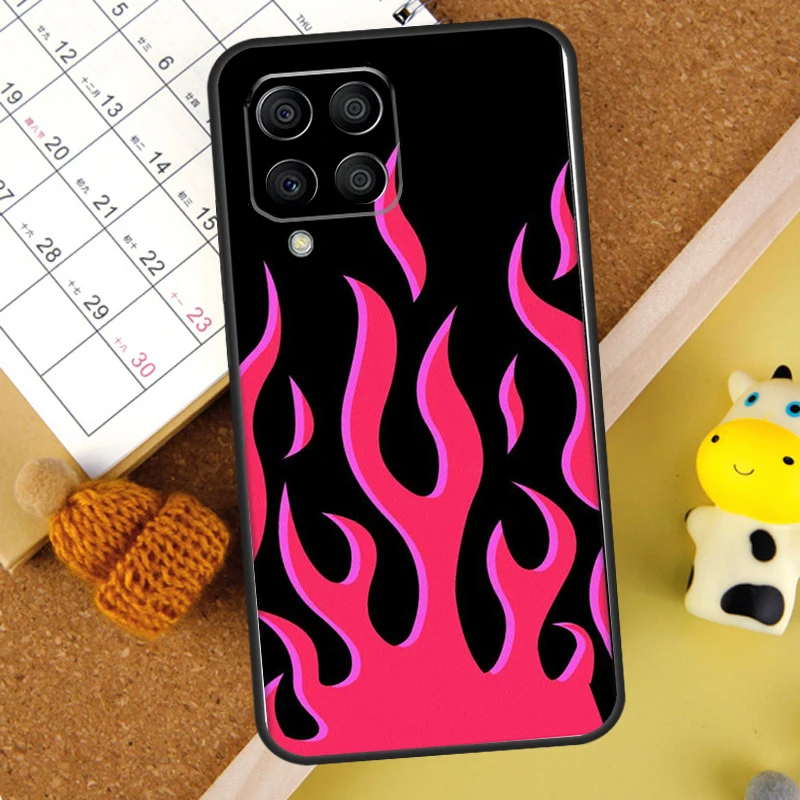 Funda llama azul fuego rosa para Samsung Galaxy M13 M33 M53 M15 M35 M55 M14 M34 M54 M11 M31 M12 M32 M52 M16 M36 M56