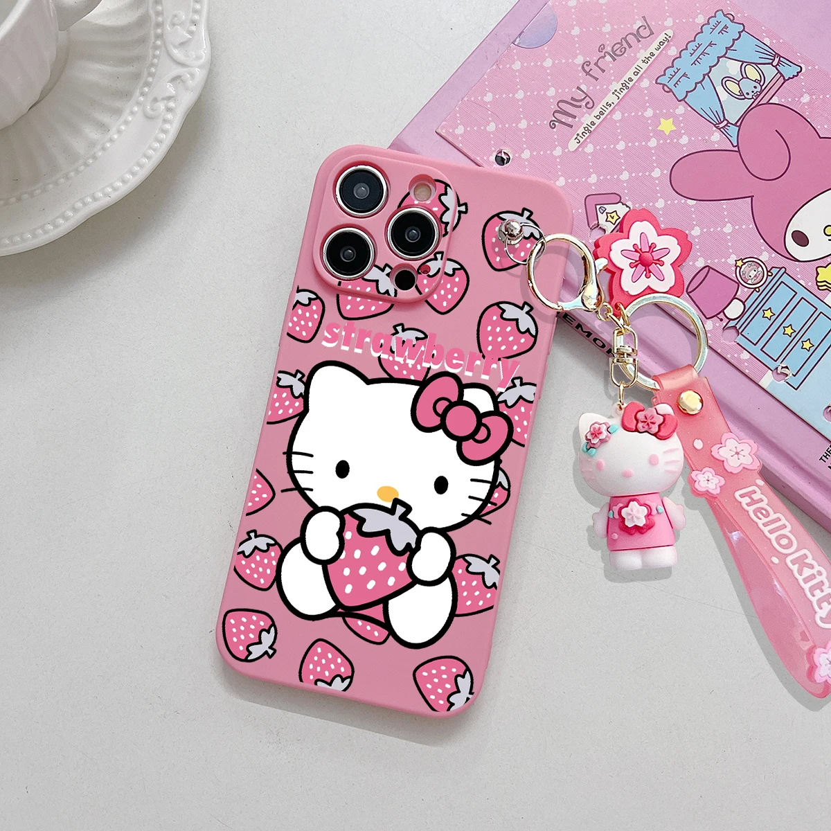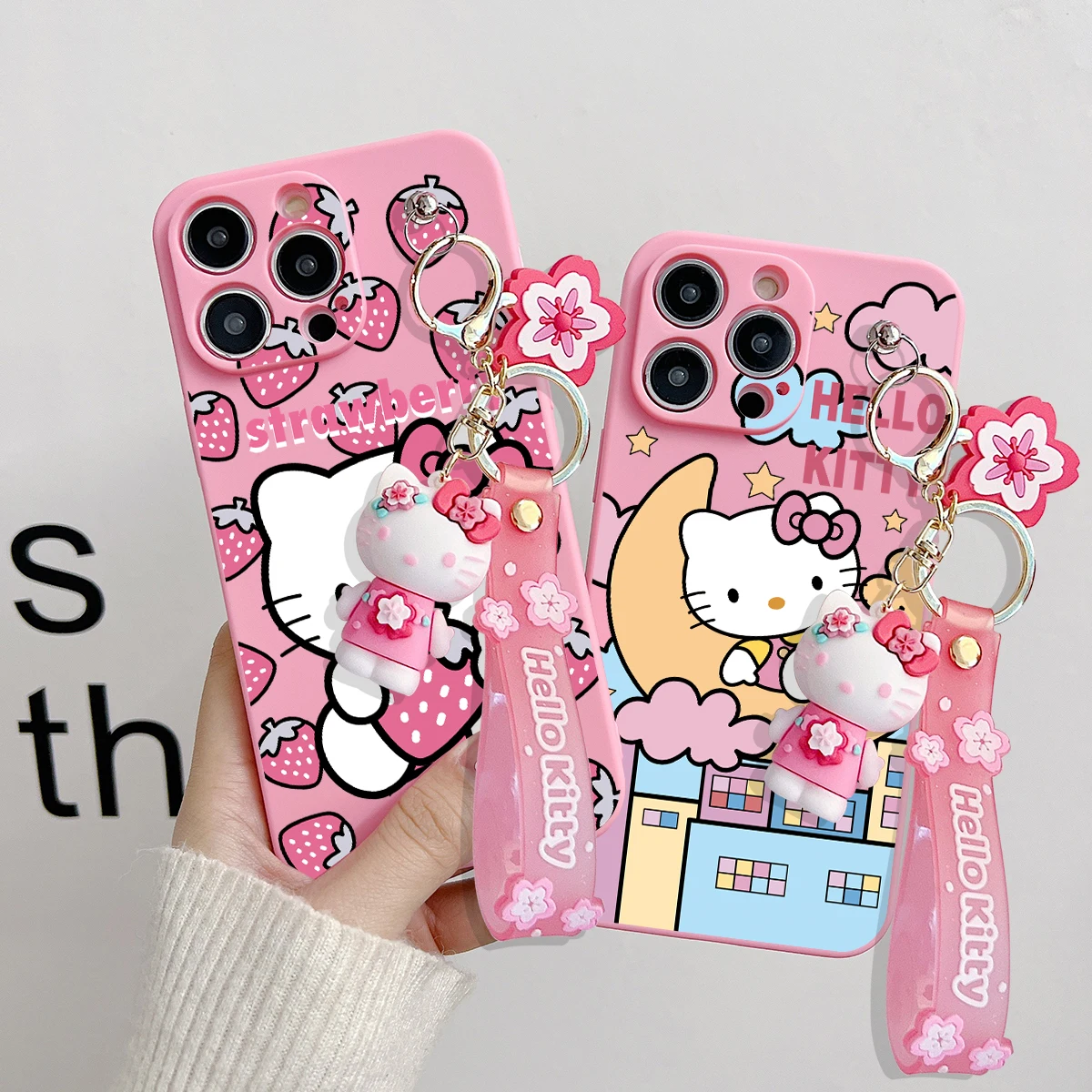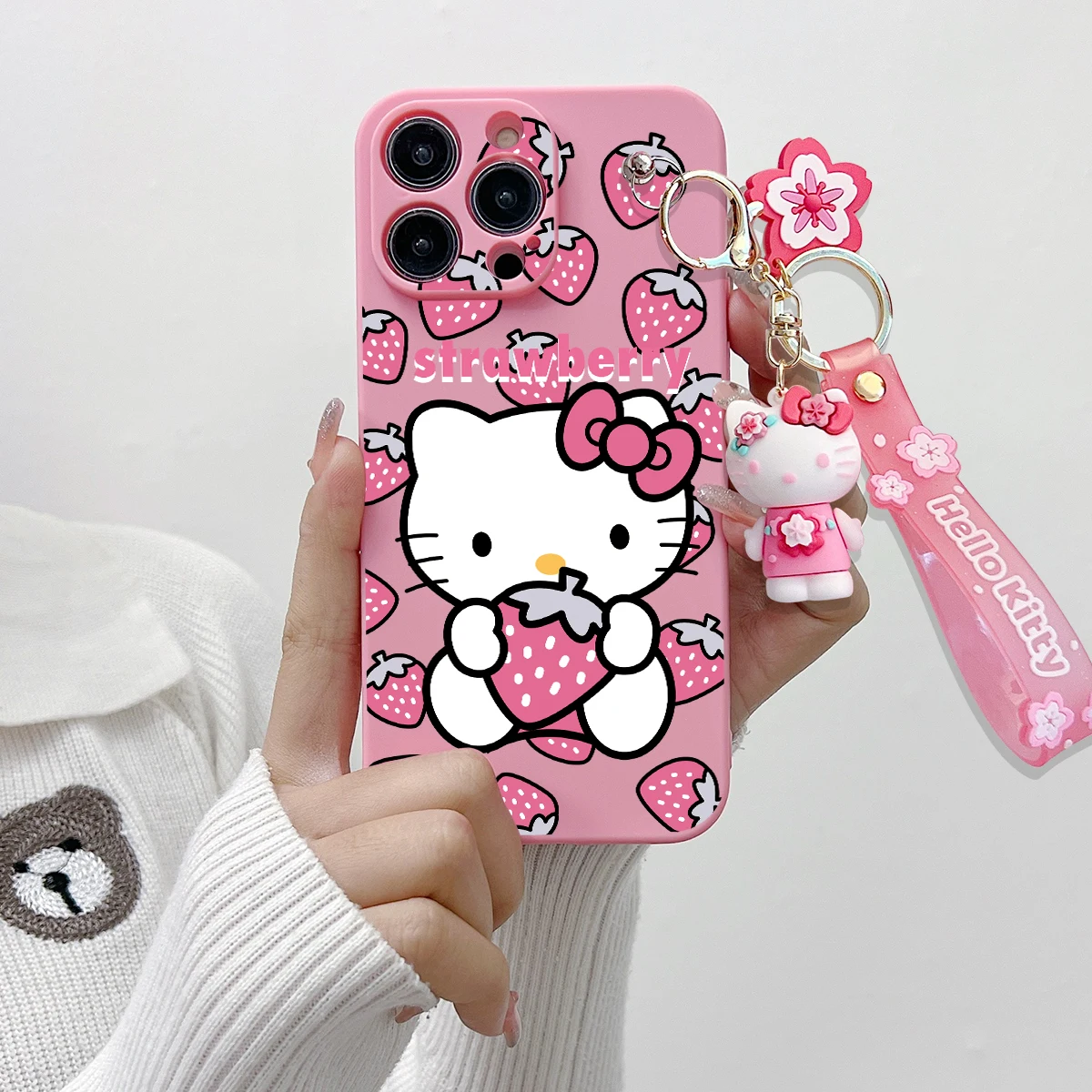 Comprar Funda con llavero para OPPO A15, A94, A54, A55, A53, A74, A96, A57, A17, A58, A78, Realme, C55, C53, C35, C30, C21Y, C11, C33, fresa Kitty