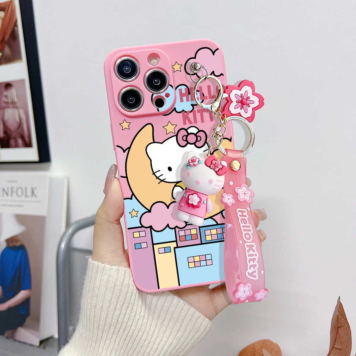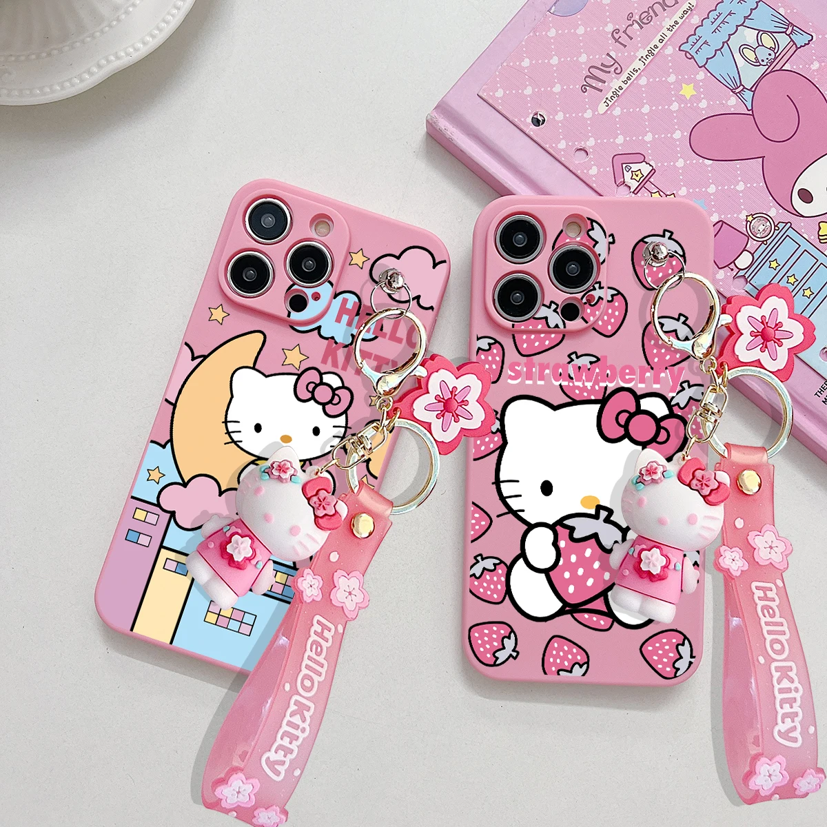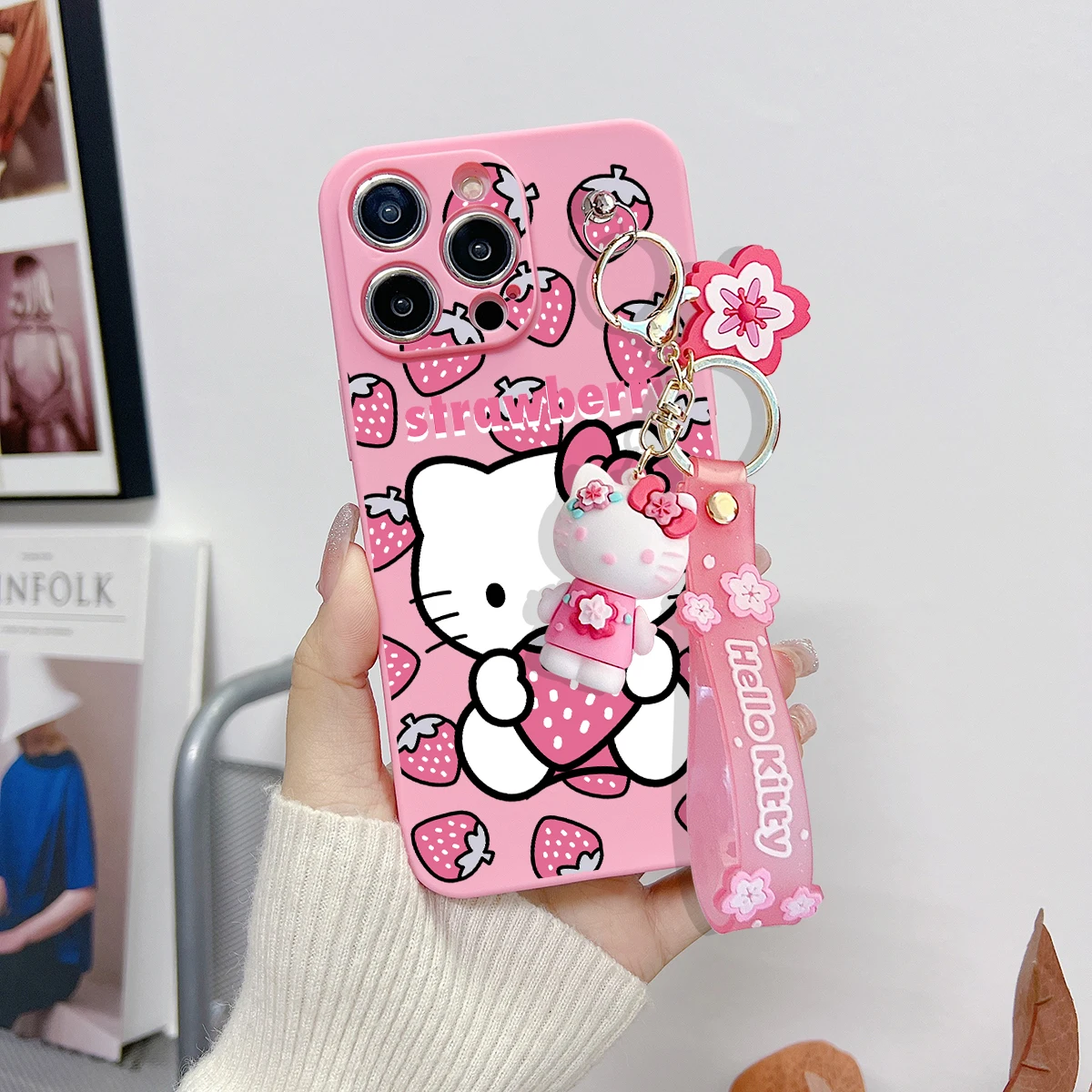 Comprar Funda con llavero para OPPO A15, A94, A54, A55, A53, A74, A96, A57, A17, A58, A78, Realme, C55, C53, C35, C30, C21Y, C11, C33, fresa Kitty