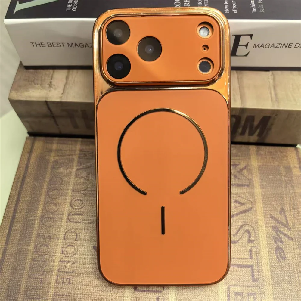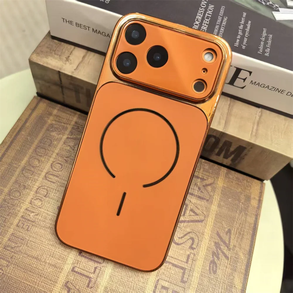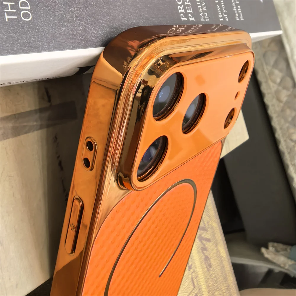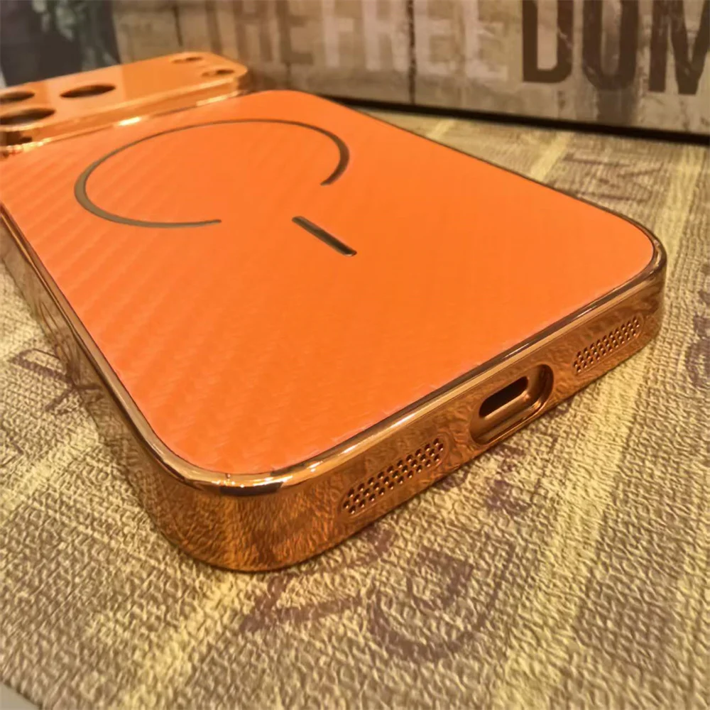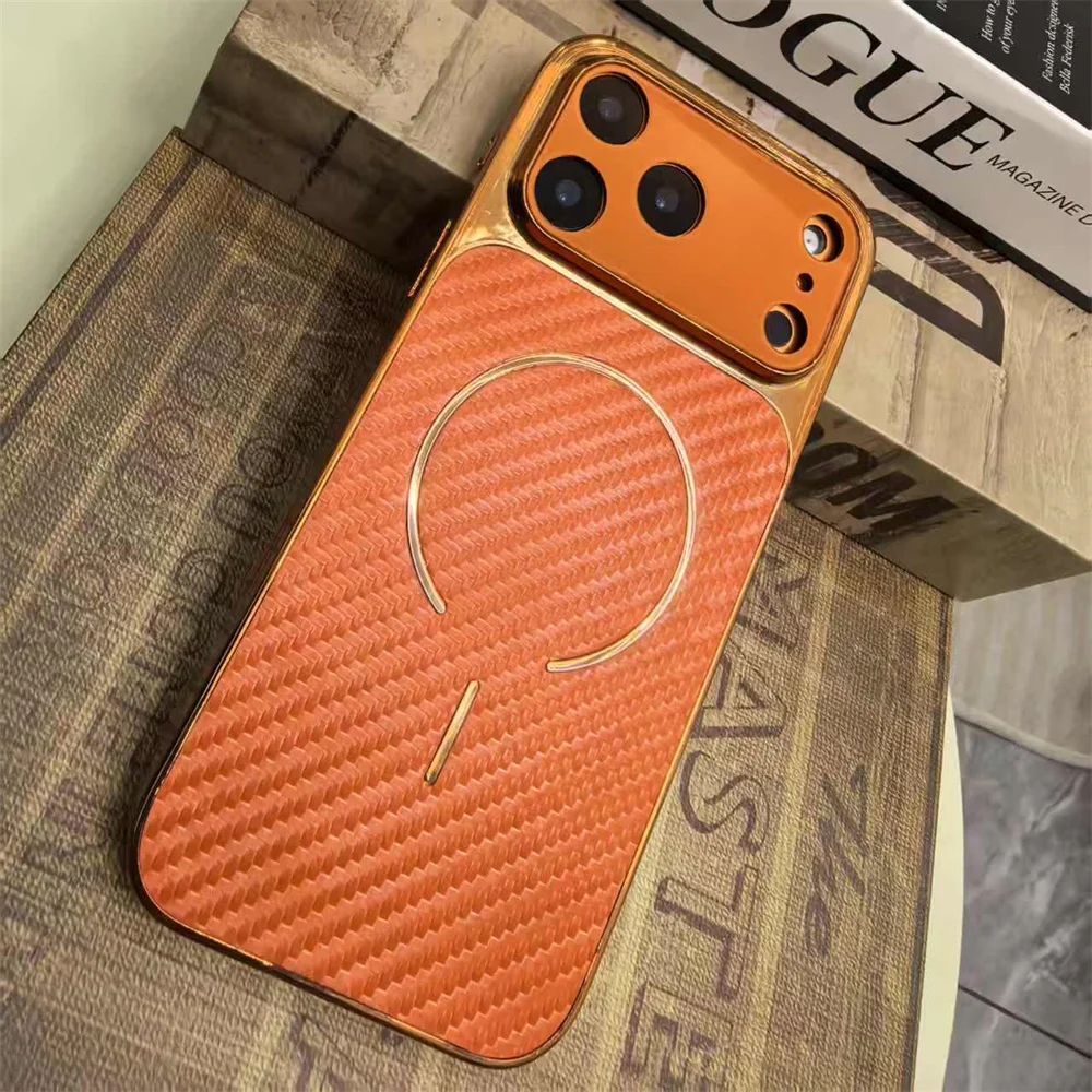 Funda de ventana grande de fibra de carbono de lujo para iPhone 17 Air 16 15 14 13 Pro Max Plus para Magsafe cubierta de armadura chapada en carga inalámbrica