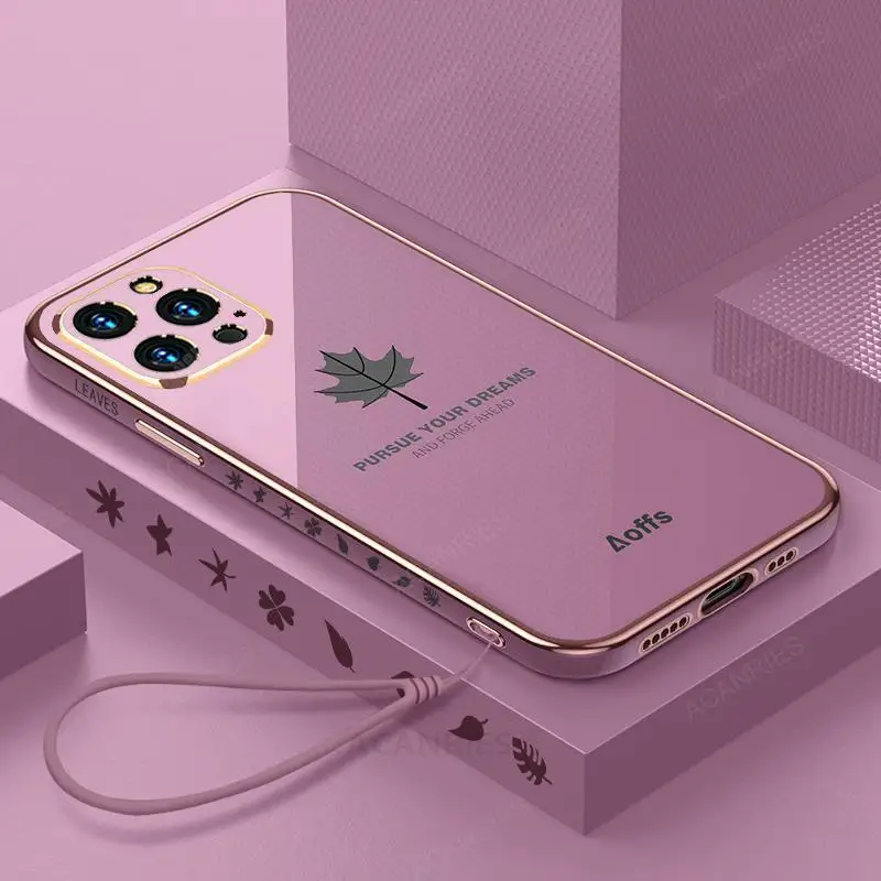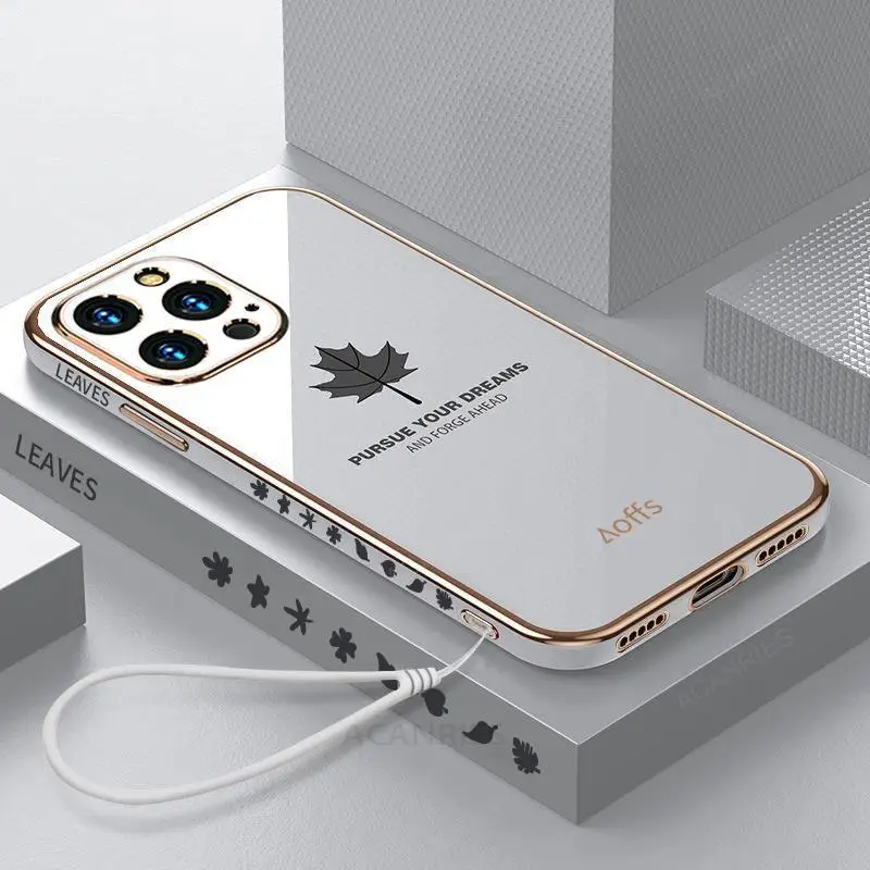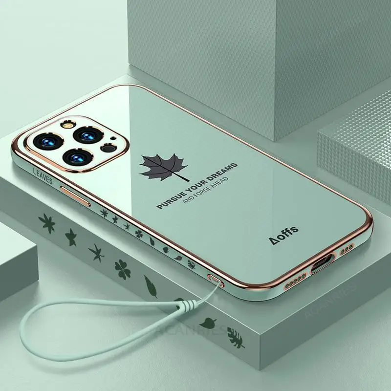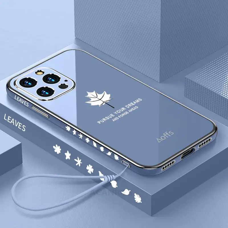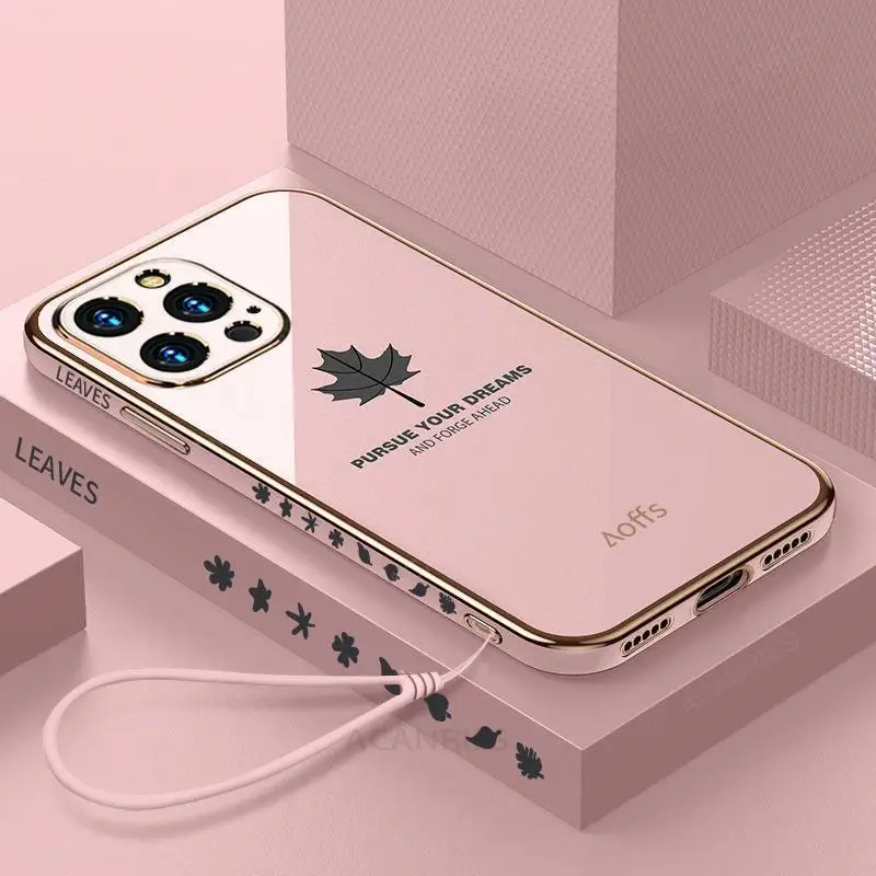 Comprar Funda de lujo con cordón de hoja de arce para Iphone 14 12 11 13 Pro Max X Xs Xr 7 8 Plus Mini 14pro 13pro 12pro Se cubierta de silicona chapada