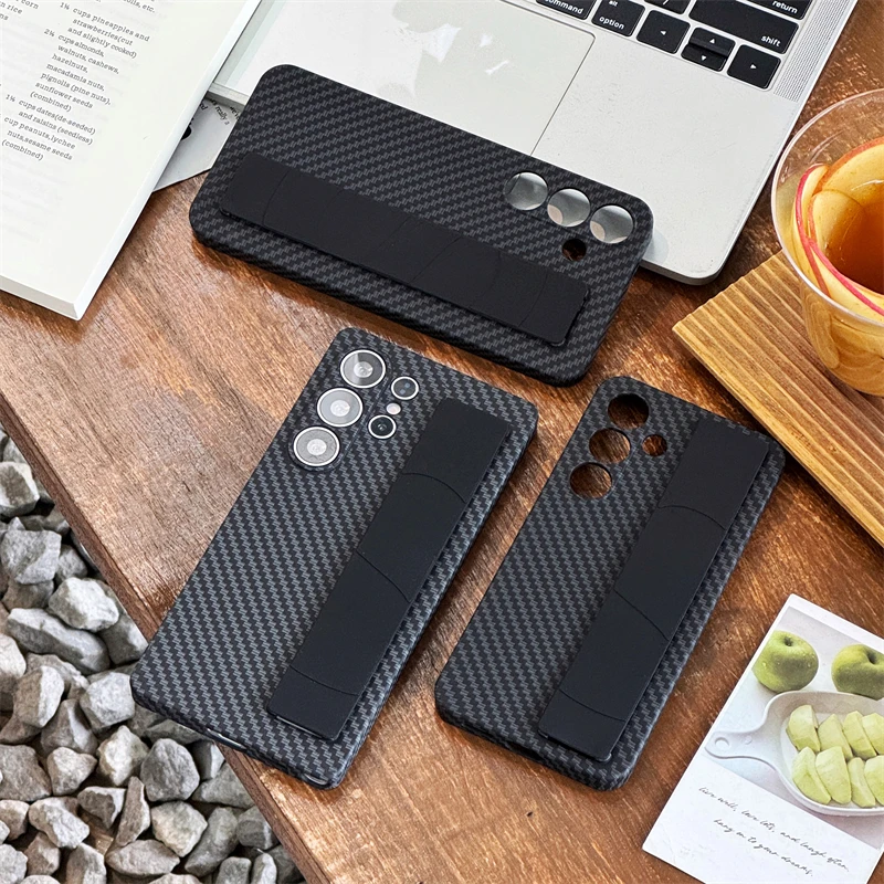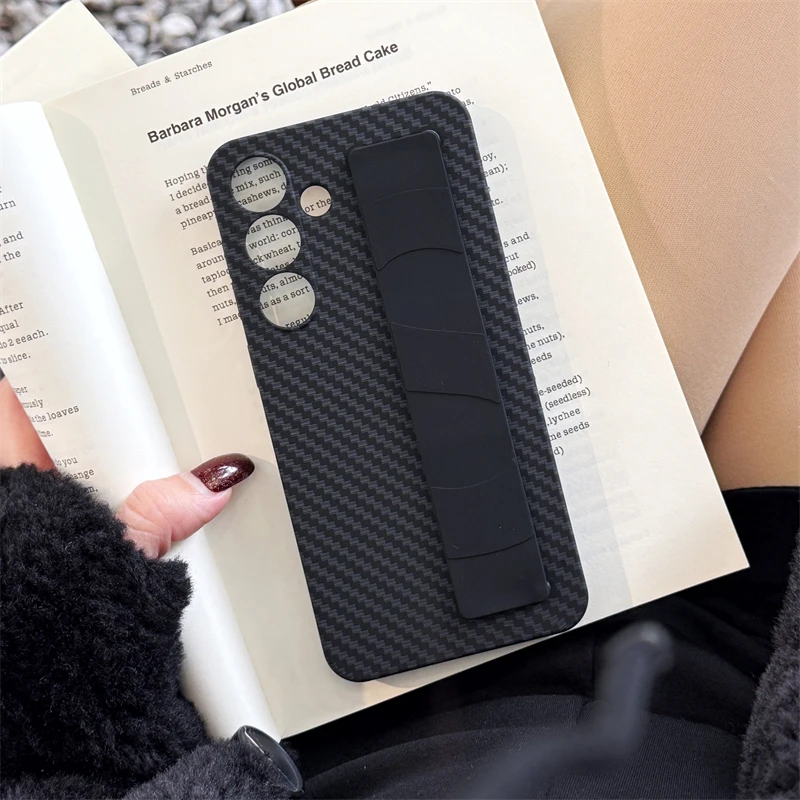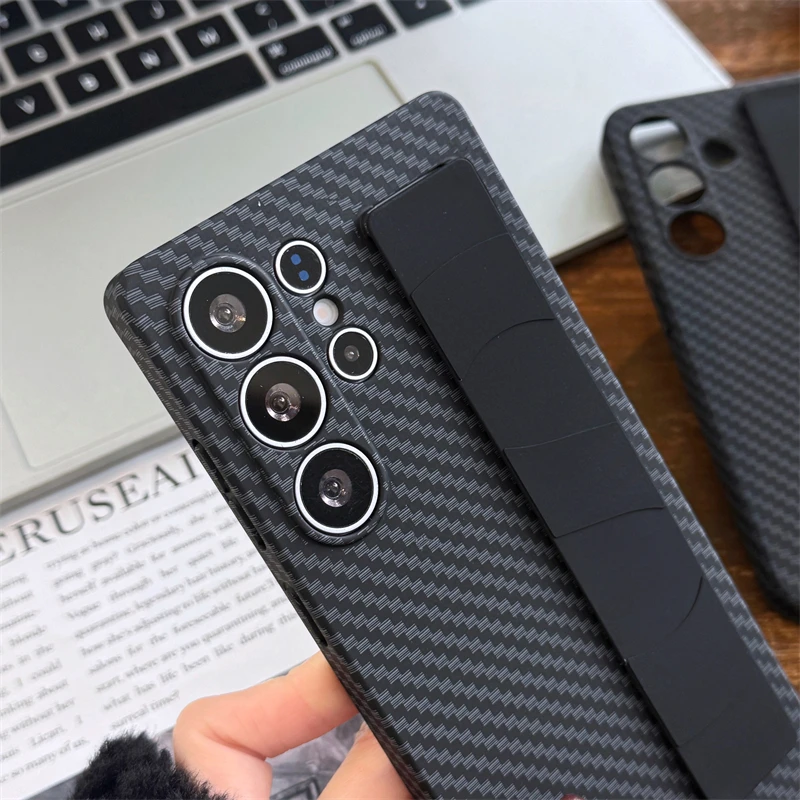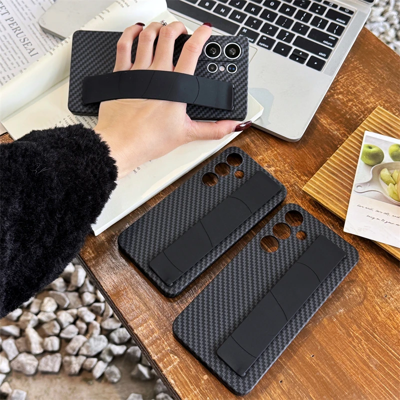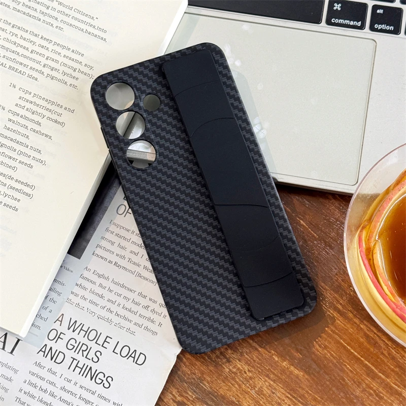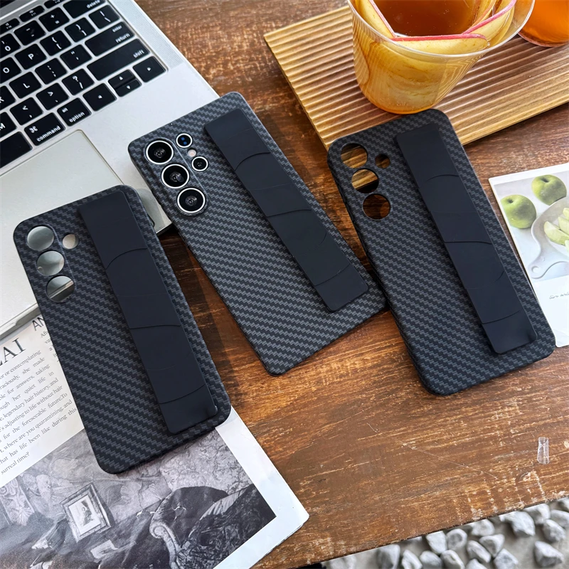 Funda de lujo con correa para muñeca de silicona con diseño de fibra de carbono para Samsung Galaxy S25 S24 S23 Ultra Plus, cubierta fina de PC dura a prueba de golpes