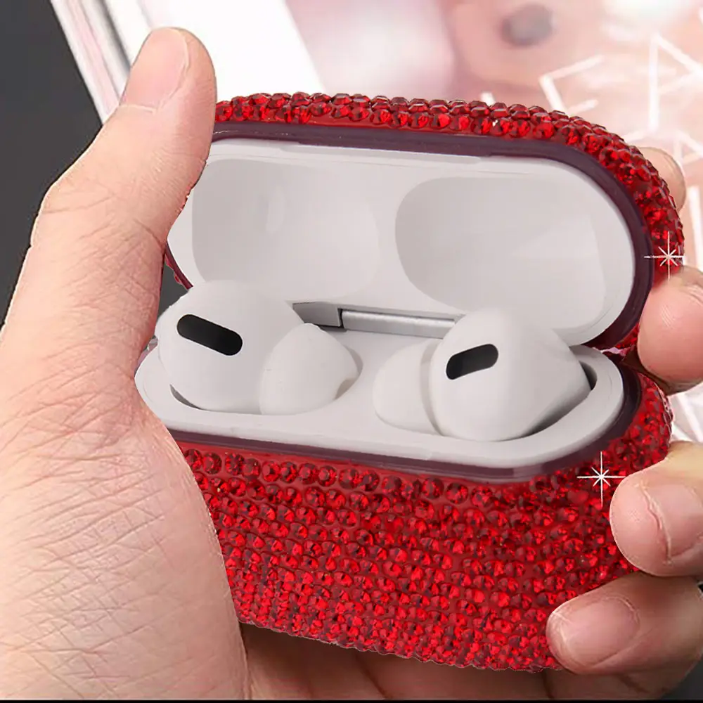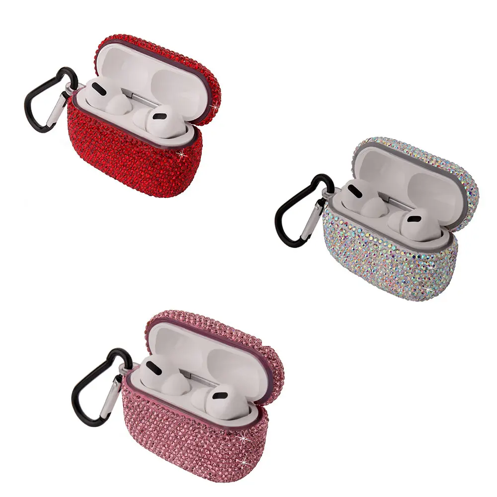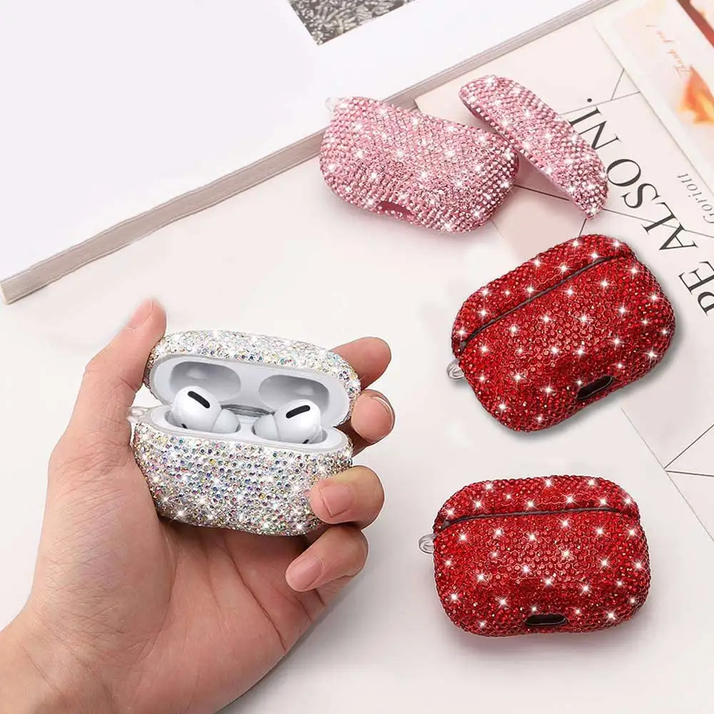 Comprar Funda de lujo con diamantes de imitación y purpurina para Airpods, funda protectora para Apple Airpods Pro 3, funda dura para PC con diamantes